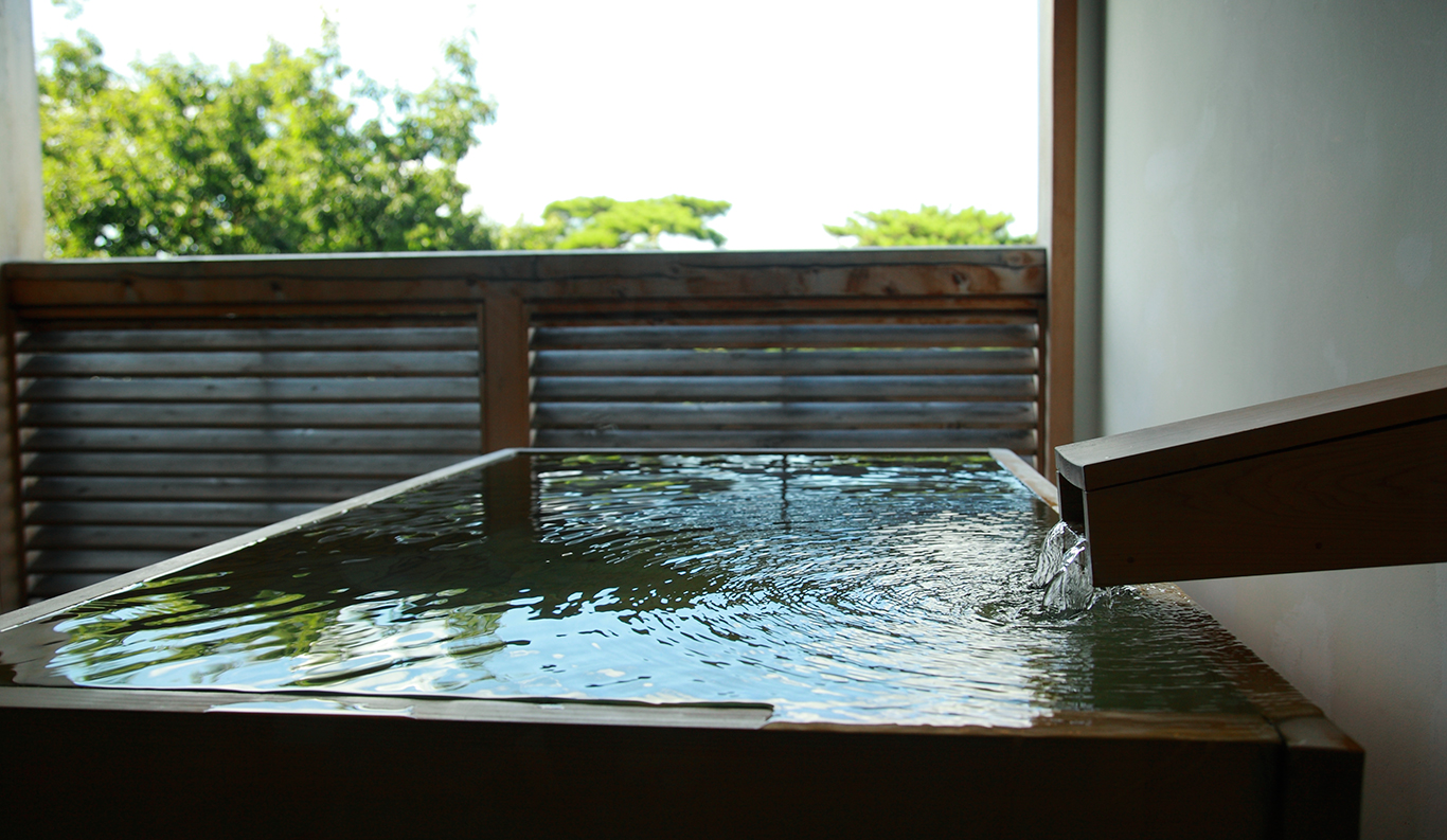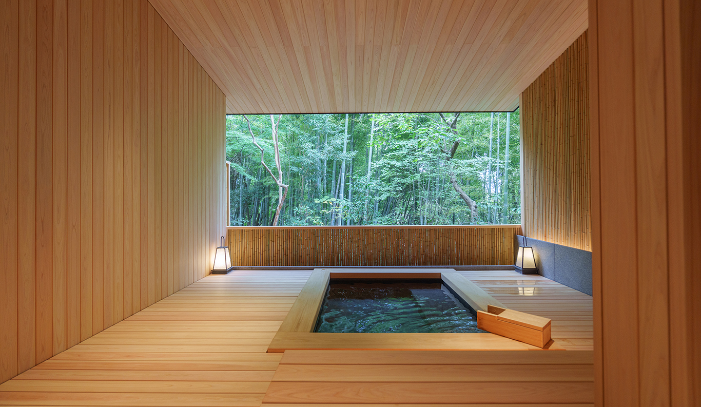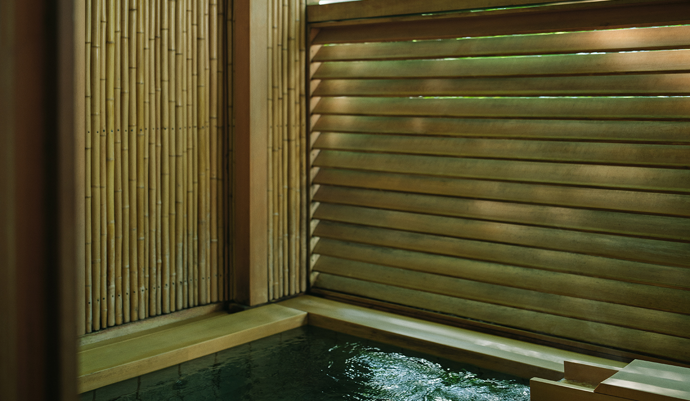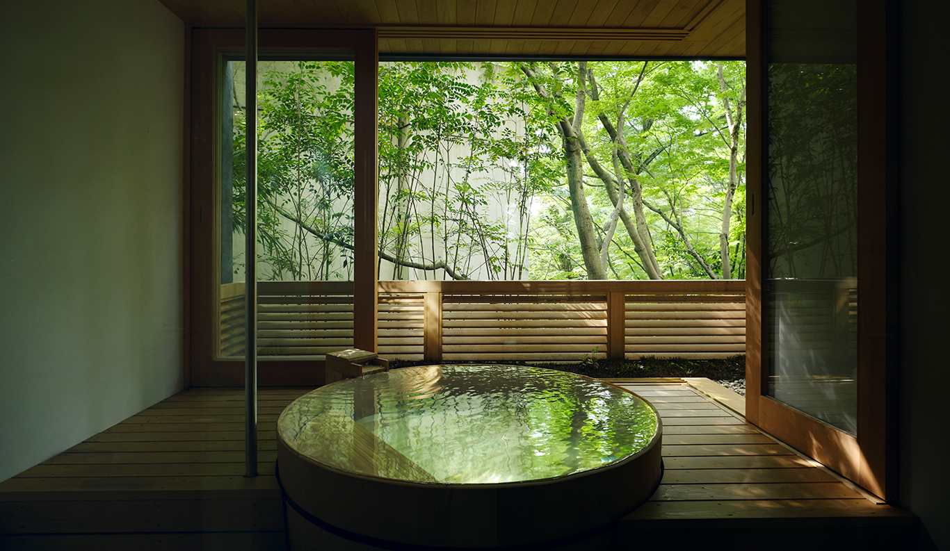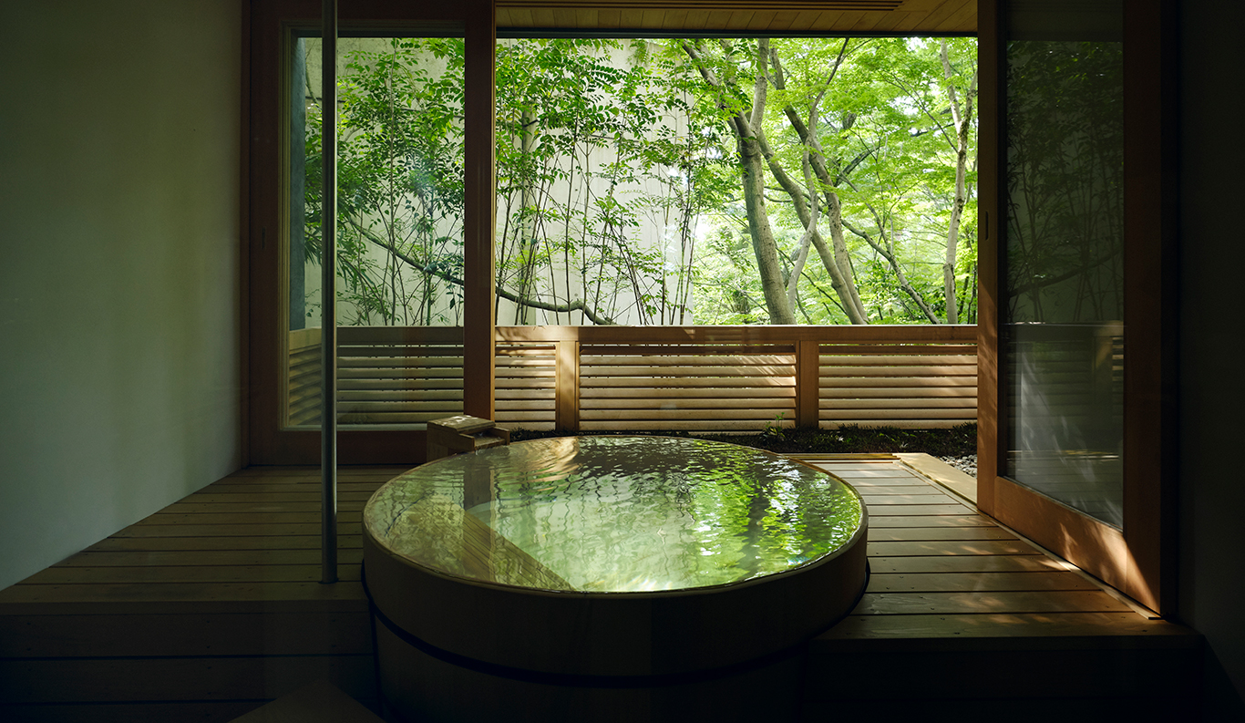 Bath Beniya Mukayu has two communal baths: GENSEI, a bath for tranquil meditation featuring a round backrest in the bathtub; USUKO, a bath made of white cypress wood for purifying the body and mind. Each communal bath features an indoor bath, an open-air bath, and sauna. They are available to all guests, separated by gender. Boasting more than 1300 years history, the source of renowned Yamashiro Onsen contains high concentration of calcium, sodium and sulfate that not only improves blood circulation and soothes fatigue by thermal effects, but also improves physical and dermatology condition.