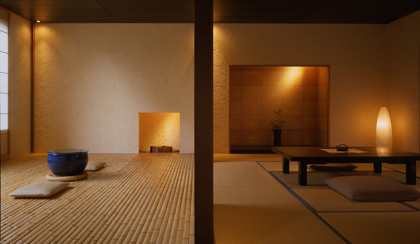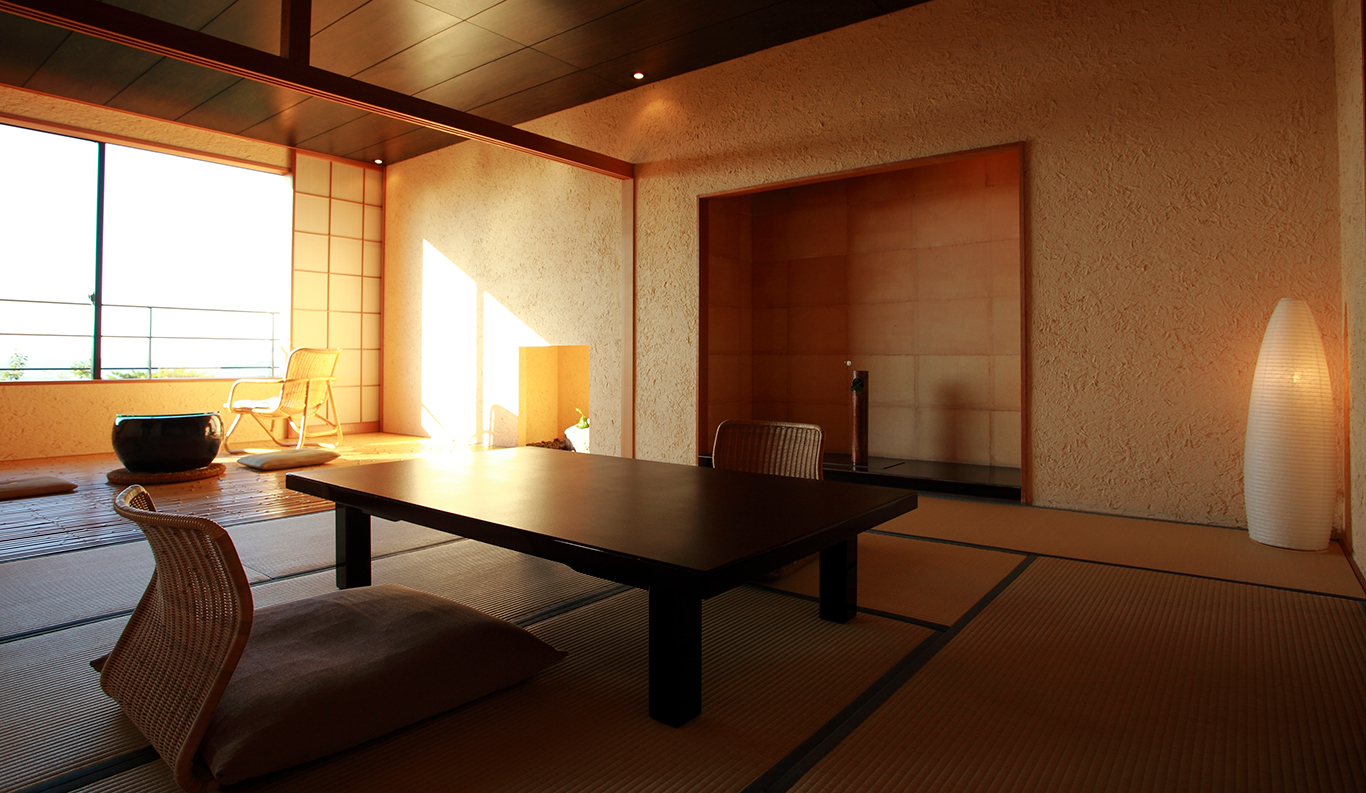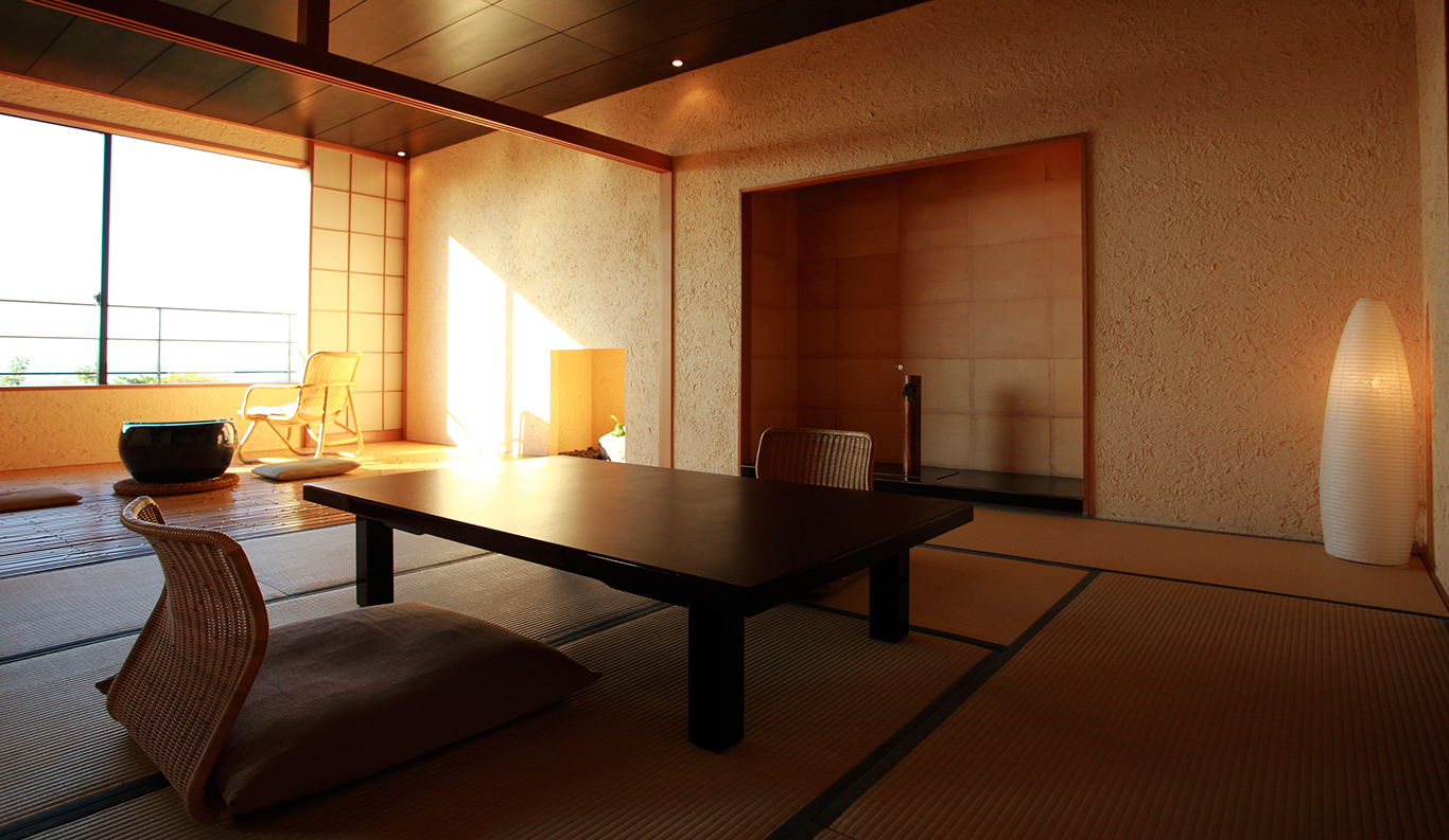 1-3 70 sqm Private Open-air Bath Futon These are cozy Japanese Premier rooms with tatami mat living and sleeping rooms. The interior design is very Japanese, featuring traditional materials such as plastered walls, tatami, bamboo floors, shoji paper screens suited to contemporary taste. The private outdoor hot-spring bath, sitting room and veranda all overlook the garden.