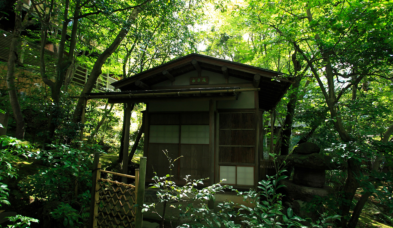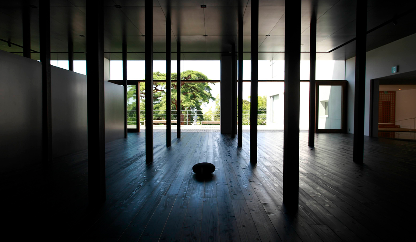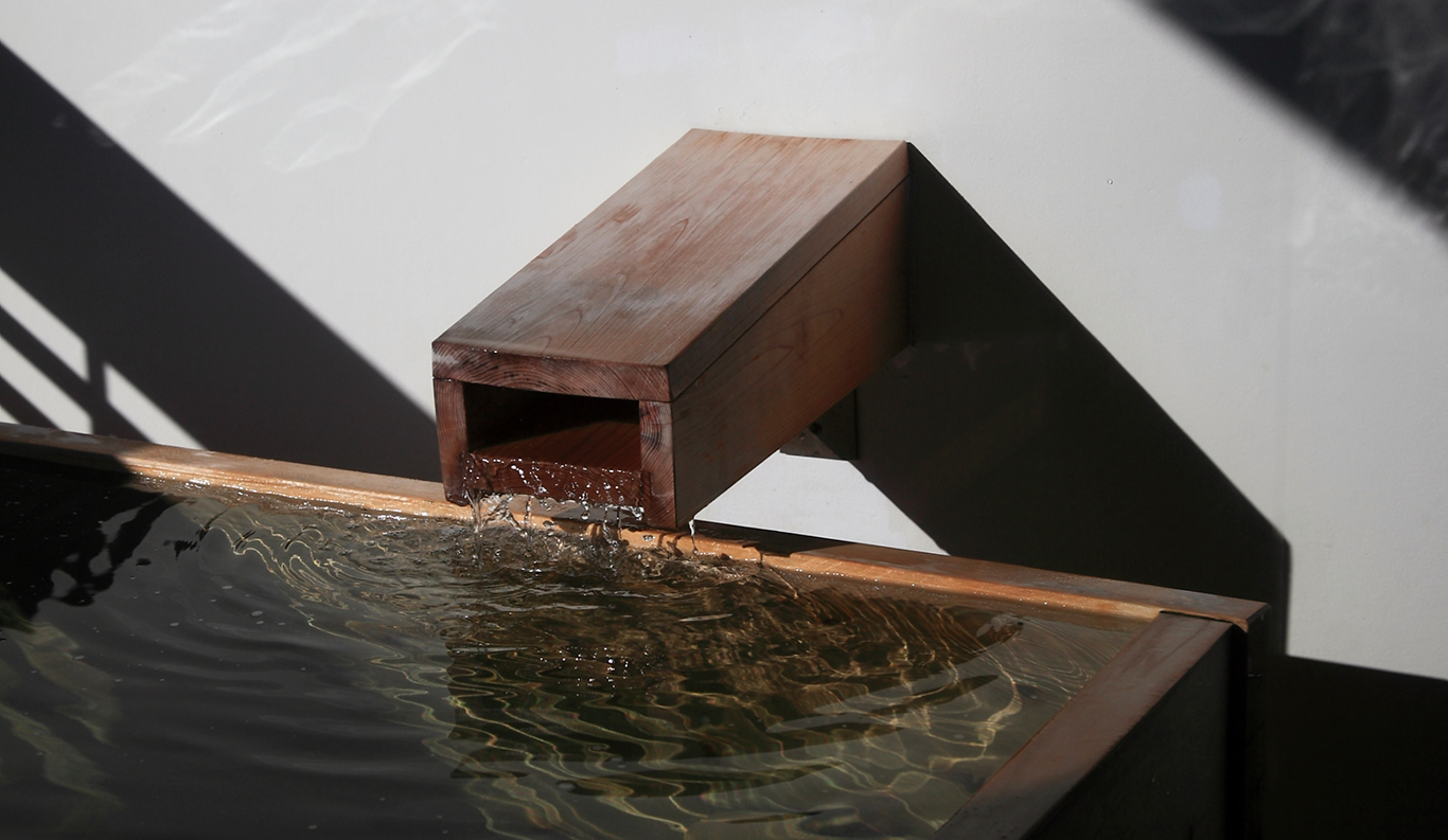Tsukubai "Ho-sun" At the entrance of the Spa Entei, guests can appreciate a large round pond with the sculpture “Tsukubai Ho-sun” designed by Kenya Hara. The water descends and is released into a big shallow cone, just as a river flows into the sea. The sculpture was originally designed for the project “T-Room” curated by the architect Kengo Kuma at the 21st Century Museum of Contemporary Art, Kanazawa in 2005 and then relocated at Beniya Mukayu in 2006.