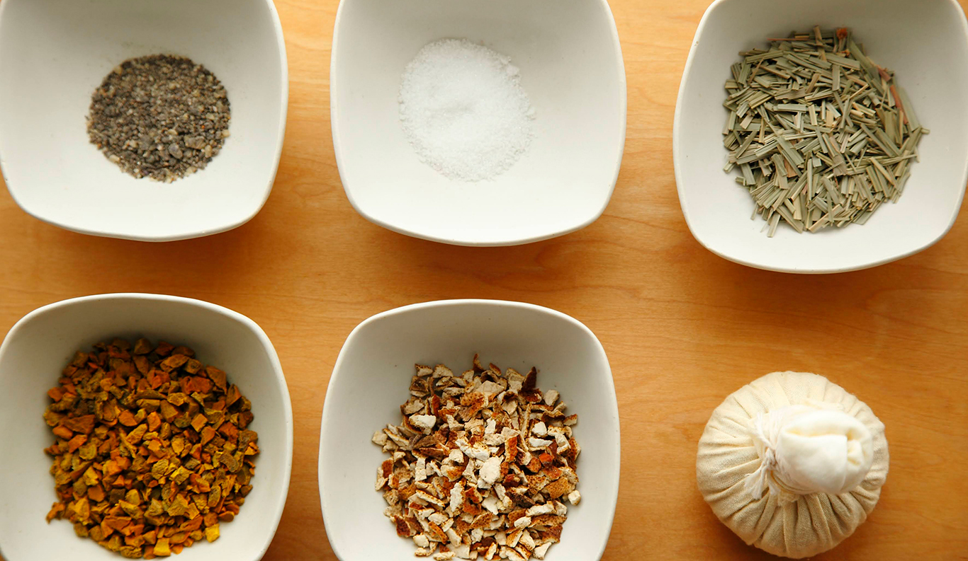 With the assistance of the therapists of our Spa Entei you will learn how to make and apply your own herbal balls using medicinal herbs native to the Mt. Hakusan. You will be able to choose your favorite ones from a selection of wild seasonal herbs, wrap them in cotton cloth and steam them in hot spring water from Yamashiro Onsen.