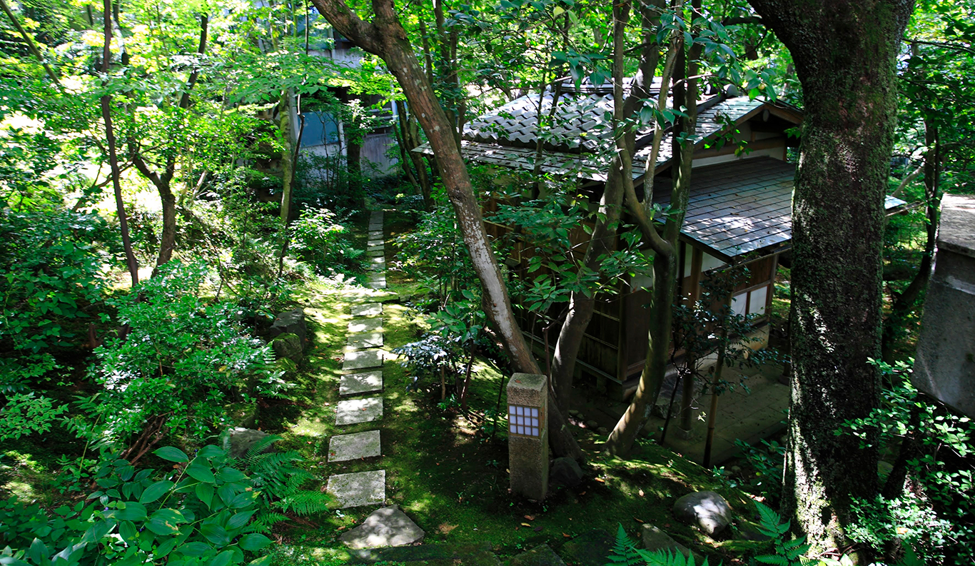 Garden Beniya Mukayu's beautiful garden is expansive and serene, with mossy paths winding through it. It is home to a host of venerable trees, including enormous red pines, maples, camellia, and a very old Yamazakura (mountain cherry tree) that sends petals drifting about like snow in spring. During the daytime, the garden generates a symphony of frog, bird, and insect calls, the sounds of crickets and whispering breezes rise to lull Mukayu's guests into a deep, restful sleep. It is a four-season garden - in spring, cherry blossoms drift about, heralding the awakening of a new season; in summer, it offers cool relief and long, lazy evenings; autumn sees a riot of color as the maple and larch leaves turn; and in winter guests can enjoy the muffled silence of the snow-covered garden as well as the magical experience of bathing outdoors in their private hot spring bath overlooking the garden as snowflakes drift down.