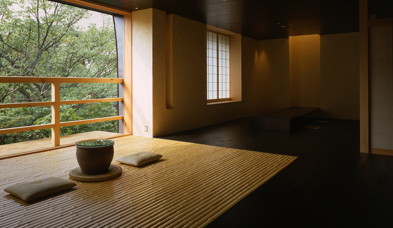 Art & Architecture The architect Sey Takeyama has been collaborating with Beniya Mukayu since 1996, designing minimalistic spaces that are like empty vessels, receptacles both for the garden spectacle and for the time spent there. To relax at Beniya Mukayu means to empty the soul and fully enjoy a time with nothing to do. Naturally, something starts to emanate from the bottom of the soul, awakening the senses to nature and the artworks quietly featured inside and outside the ryokan.