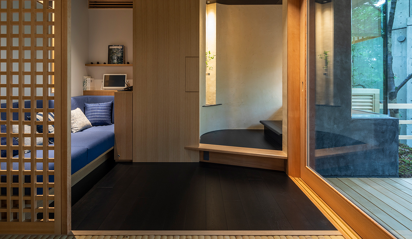 Mukayu means "richness in emptiness": through the architecture and minimal interior design, the ryokan makes the most of its natural blessings and brings the natural world and indoor spaces together.