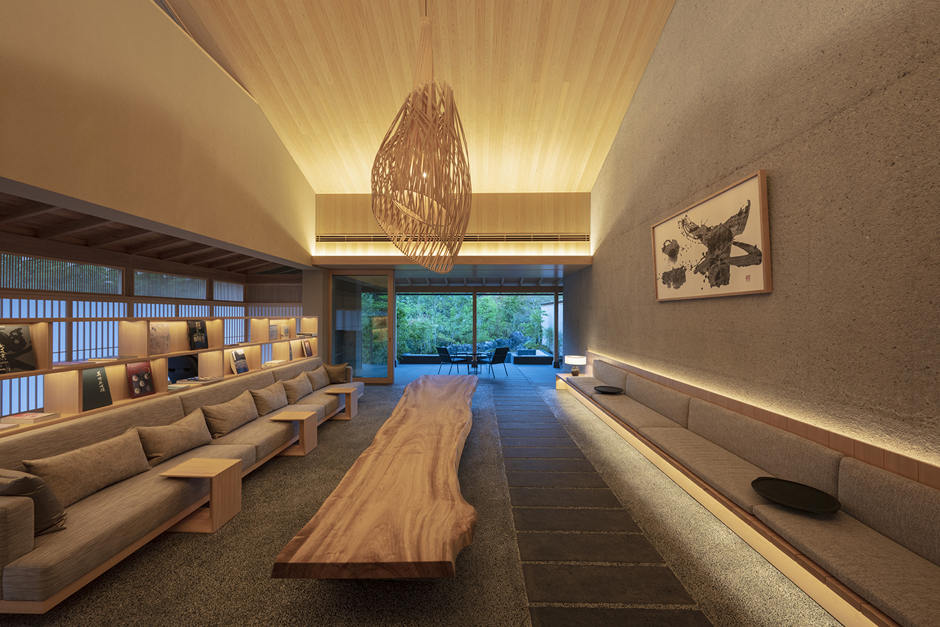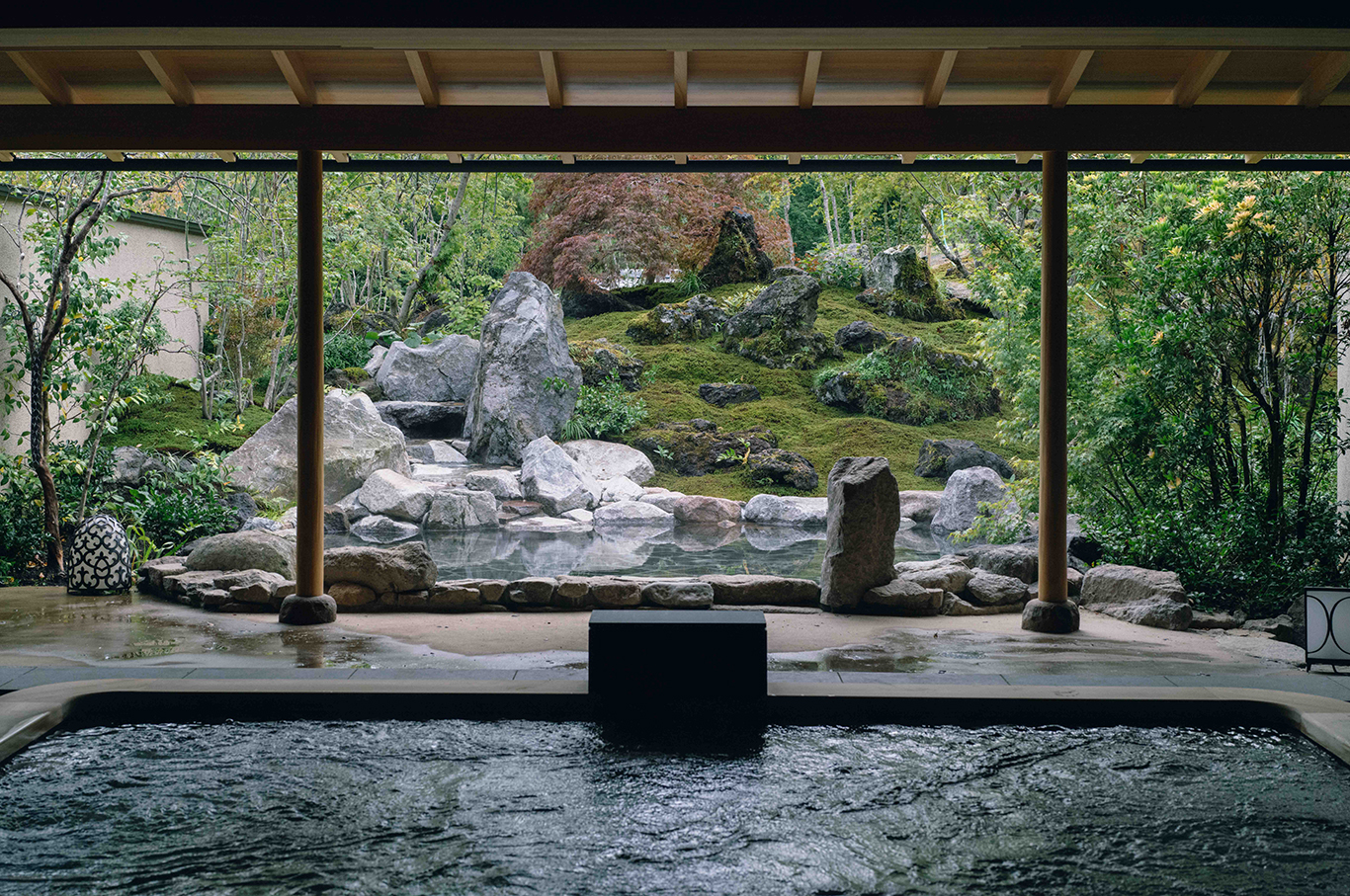 The ryokan’s design ethos will be clearly recognizable to fans of the Hakone property, with its chic contemporary take on traditional forms and full-throated celebration of Japanese craft, rich with the natural textures of washi, silk, stone, and wood. The architecture and design are steeped in the world of the tea ceremony, with tokonoma alcoves displaying hanging scrolls, antique dishes, and seasonal ikebana flower arrangements. Every room is supplied with a calligraphy set with traditional ink stone and an animal hair brush. Subtle scents of tatami, cedar, and incense subconsciously invite guests to slow down, breathe deep, and relax. It is an elegant immersion into Japanese culture.