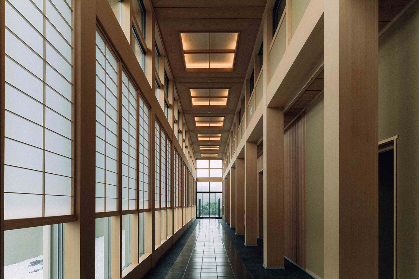 The two garden suites are on the ground floor of the secluded western wing and offer expansive verandas, private gardens, and open-air hot spring baths sheltered by the property’s encircling forest. The larger suite, Roku or “peak,” has an outdoor bath carved from natural stone, its sloped sides reminiscent of Fuji’s conical summit. The indoor bath is made from fragrant Aomori Hiba wood and is accompanied by a steam sauna. From the baths or lounging on the veranda’s daybed, guests are immersed in a soundscape of bird song, the rustling of leaves, and the gentle murmur of the garden stream. This secluded grove is so peaceful, wild deer have been known to wander by. The interior exudes a similar sense of eternal calm, the undulating naguri wood floors, natural washi paper, and earthen walls themselves drawn from the natural world.