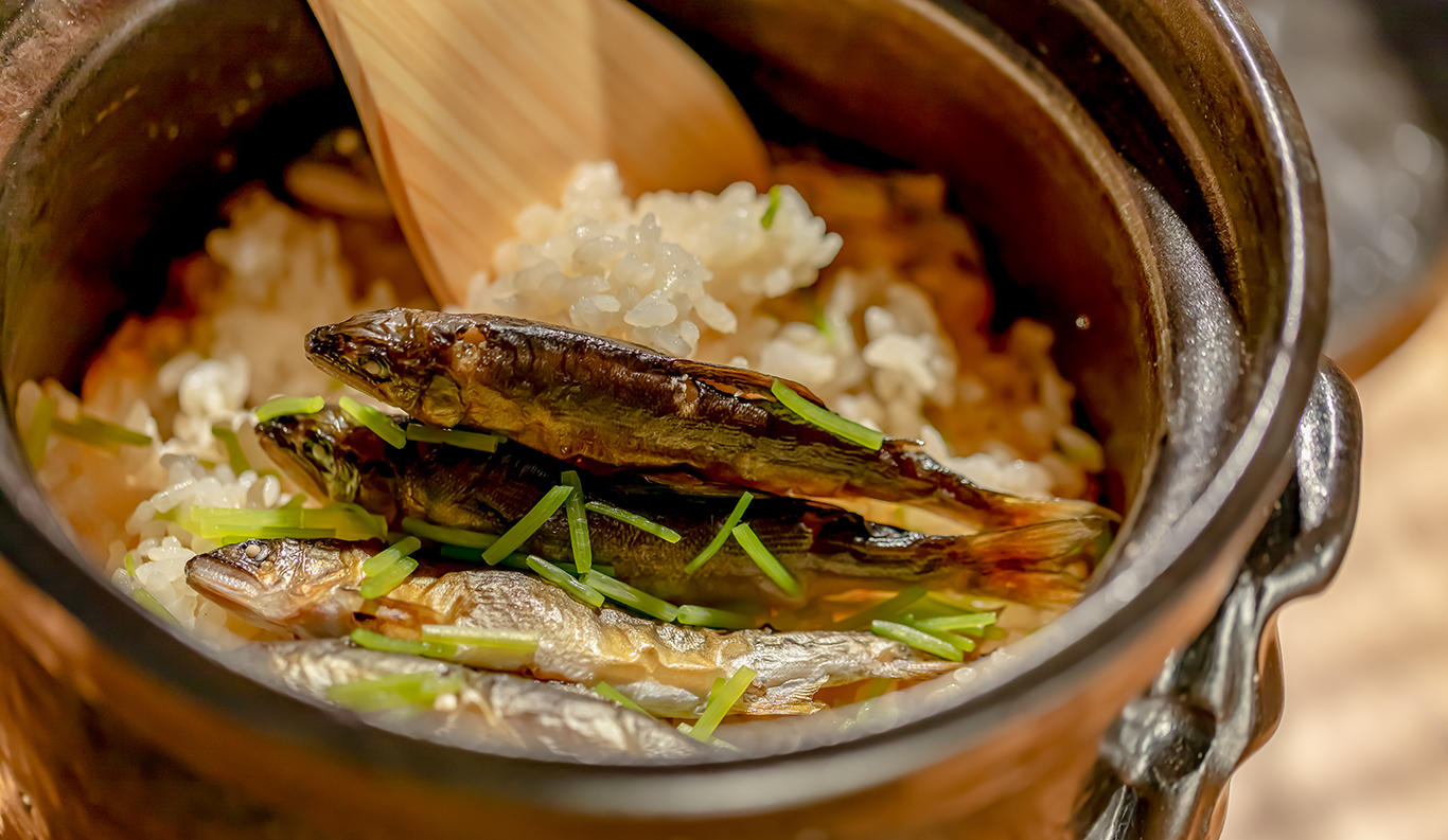 For a more exclusive and elevated kaiseki experience, Gora-Kadan Fuji offers 7 seats each night at Counter Kappo, bringing guests closer to the rich sensory experience of washoku. The crackle of eel on the charcoal grill, the aroma of simmering dashi, the whorls of steam rising from freshly made clay pot rice—before it even reaches your mouth, every bite is a symphony of sensuous pleasures. Local ingredients such as wasabi from Amagi, rice from Gotemba, and the tiny, plump sakura shrimp of Suruga Bay demonstrate the rich blessings of the seasons in Shizuoka. A subtle dance between chef and guest determines the pace of the meal, attuning each dish to the mood, the moment, the conversation, for an experience that embodies the best of Japanese omotenashi.