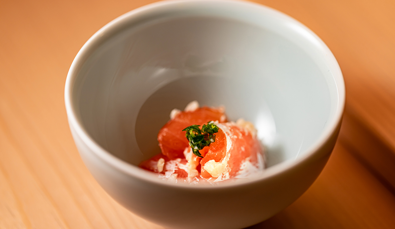 Created by the 3-star chef of Sushi Sho, 8-seater Fuji Takumi recreates the reverent atmosphere of a chic urban sushi counter but has a far more relaxed service style that invites guest to linger over every morsel. While Takumi shares Sushi Sho’s dedication to craft and devotion to fermentation techniques, it has its own unique menu, down to a different vinegar blend in the shari. Drawing on the rich seafood bounty of Suruga Bay and the fertile lands around Mt. Fuji, the chefs shape a leisurely experience with a deep sense of place. Akafuji trout, raised in the pure waters of Gotemba, are matured for three days and transformed through kombu curing. Young sea bream are adorned with a golden egg yolk vinegar. A handroll of minced tuna, scallion, and pickled daikon is playfully christened “ohagi” after its resemblance to a traditional Japanese sweet. Paired with an extensive sake and wine list, it is a meal of unparalleled luxury.