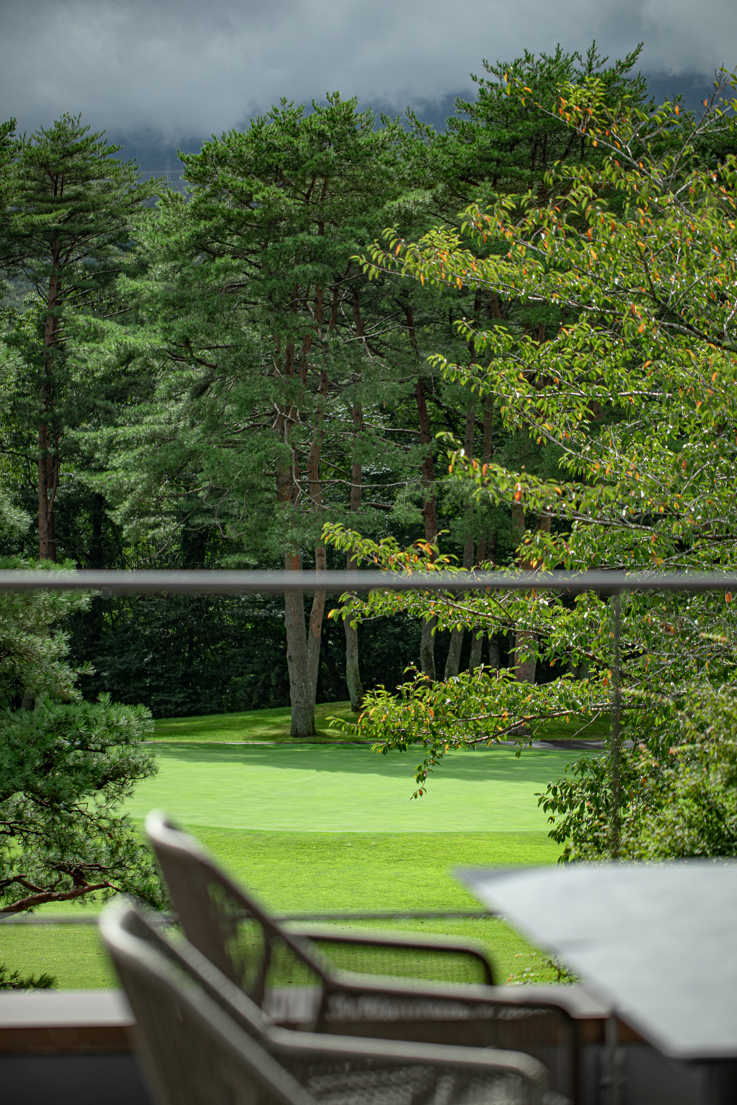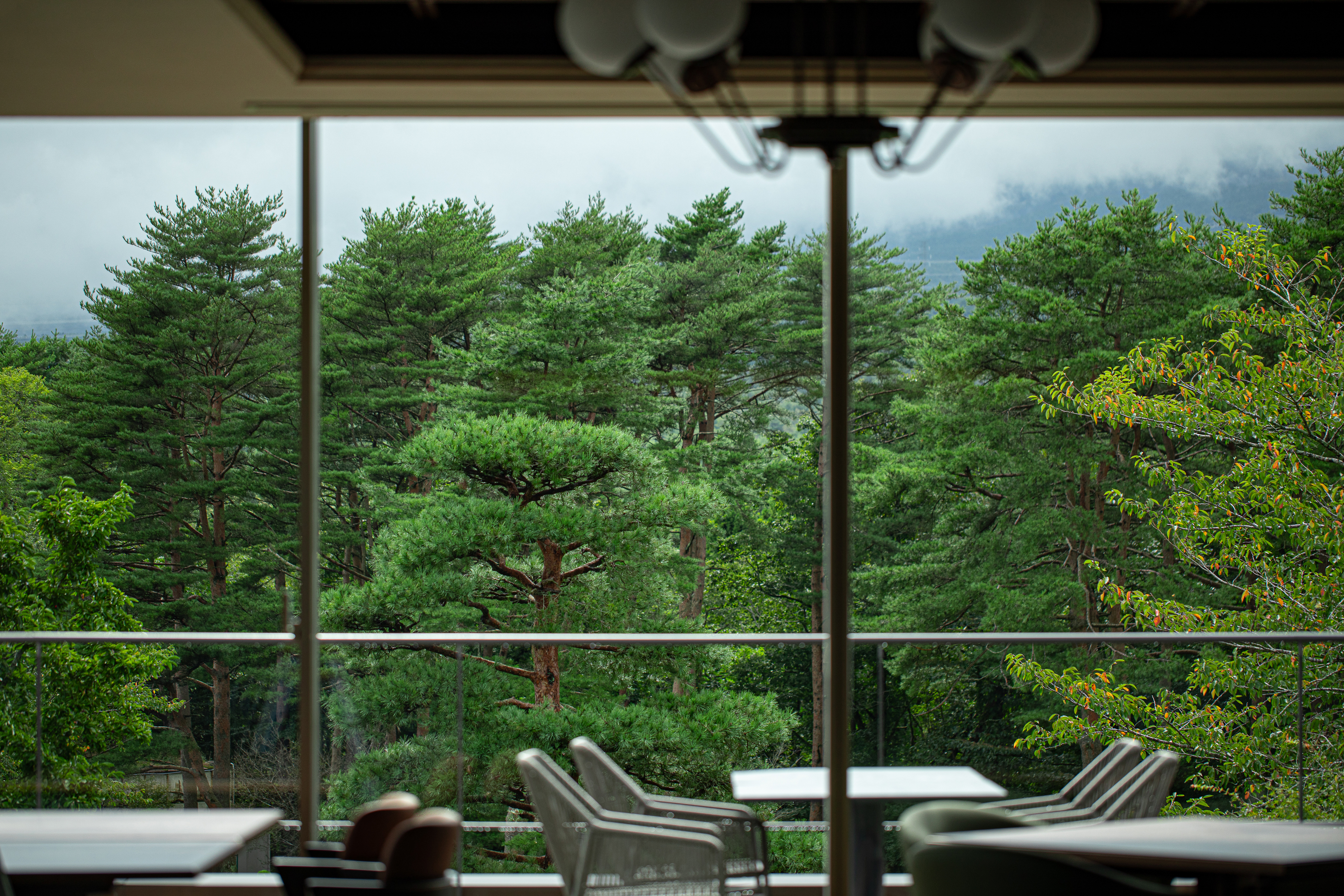 The restaurant at the neighboring golf club offers a casual all-day dining menu of Western classics like pasta vongole, pork roast, and hamburgers in a glass-walled dining room with panoramic Fuji views over the immaculately sculpted pine and sakura ringing the 18th hole. Newly renovated but nostalgic in design, the atmosphere blends luxury lodge with Art Deco club for a warm and welcoming elegance. With a sun-drenched deck for outdoor dining, the venue offers a particularly attractive lunch option even for those not hitting the links.