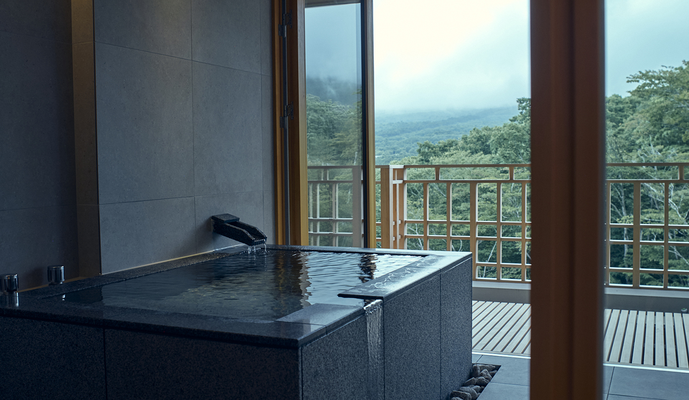 Guests at Gora-Kadan Fuji are spoiled for choice with five restaurants offering a multifaceted journey through Japan’s rich food culture and terroir, including two outposts from Michelin-starred restaurants Nihonryori Kanda and Sushi Sho. Drawing on an abundance of fresh seafood from nearby Suruga Bay and the produce of the mineral-laden volcanic soil in Fuji’s foothills, the various chefs craft meals that embody season and place and demonstrate the endless possibilities of modern Japanese cuisine. Guests in search of seclusion can opt for in-room dining or private rooms, while those that prefer a more convivial atmosphere have four unique dining rooms ringing a standing bar for pre-dinner Champagne and oysters.