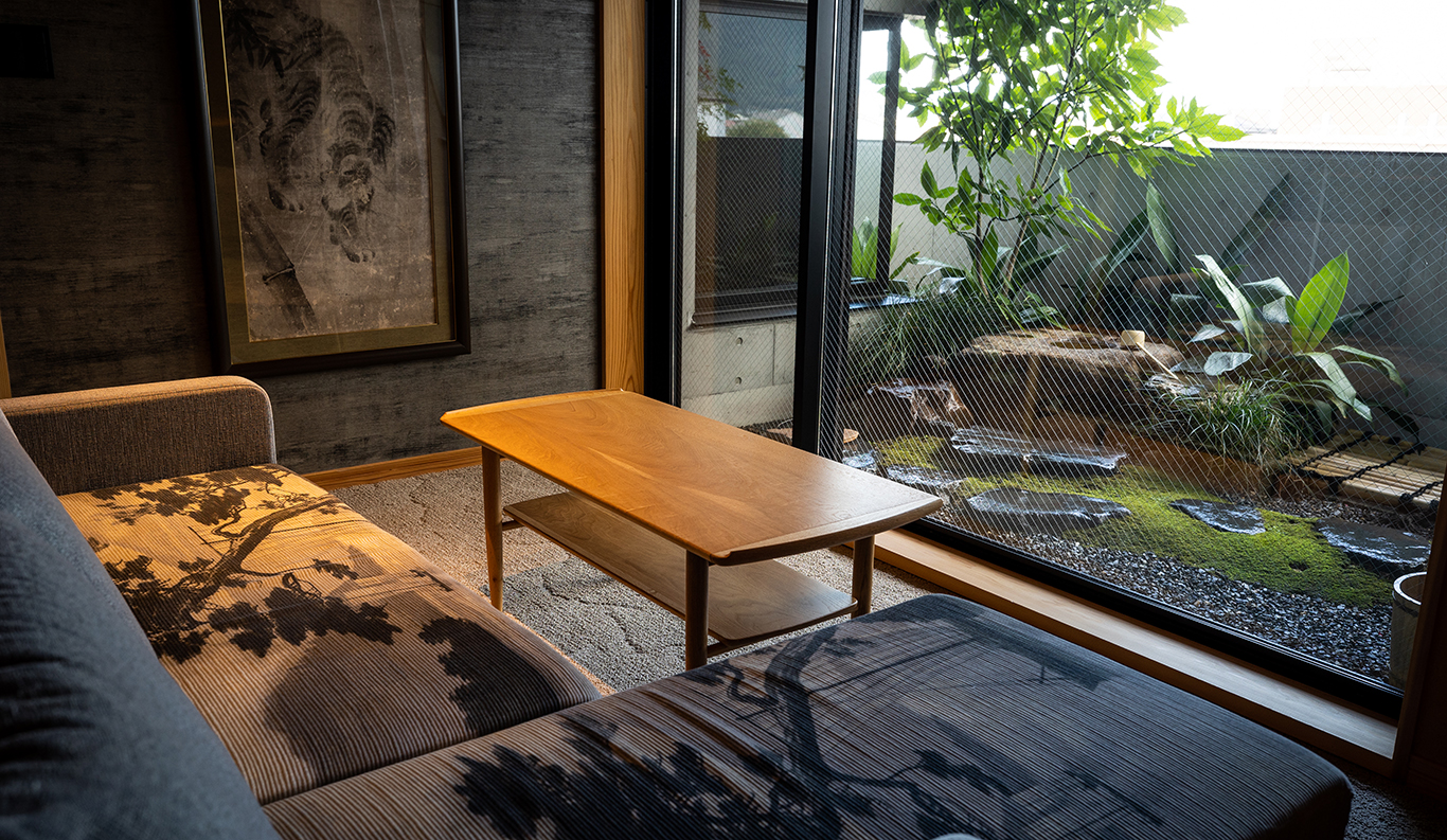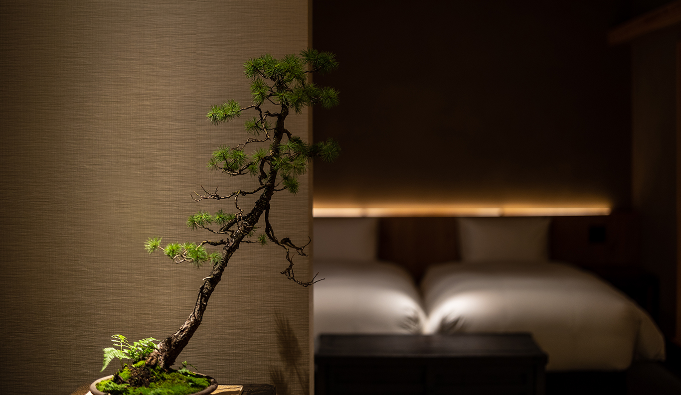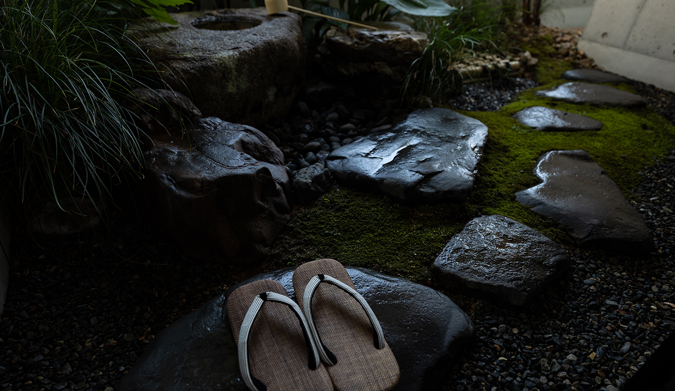 1-4 51 sqm Indoor Bath Bed The suite names at Higashiyama Shikikaboku reference both their main design element and a facet of tea ceremony culture, with Teigyoku (Garden Gem) nodding to a tearoom at Kyoto’s Daitokuji Temple said to be a favorite of 17th-century master Kanamori Sowa. Despite being located on the 5th floor, this room boasts a private Japanese tea garden, where moss-covered stones and the gentle tinkling of the stone font encourage reflective relaxation. A garden-view red granite bath, tearoom with undulating naguri wood floors, antique writing desk, and a spacious living area round out the luxurious features of this top-class suite, in addition to the standard all-natural Noble Isle amenities, bespoke linen sheets, and Japanese-style pajamas designed by the owner herself. Ask *Room rates at the Ryokan vary depending on the season and booking status. Therefore, we provide an estimated amount as a reference. REQUEST THIS ROOM -