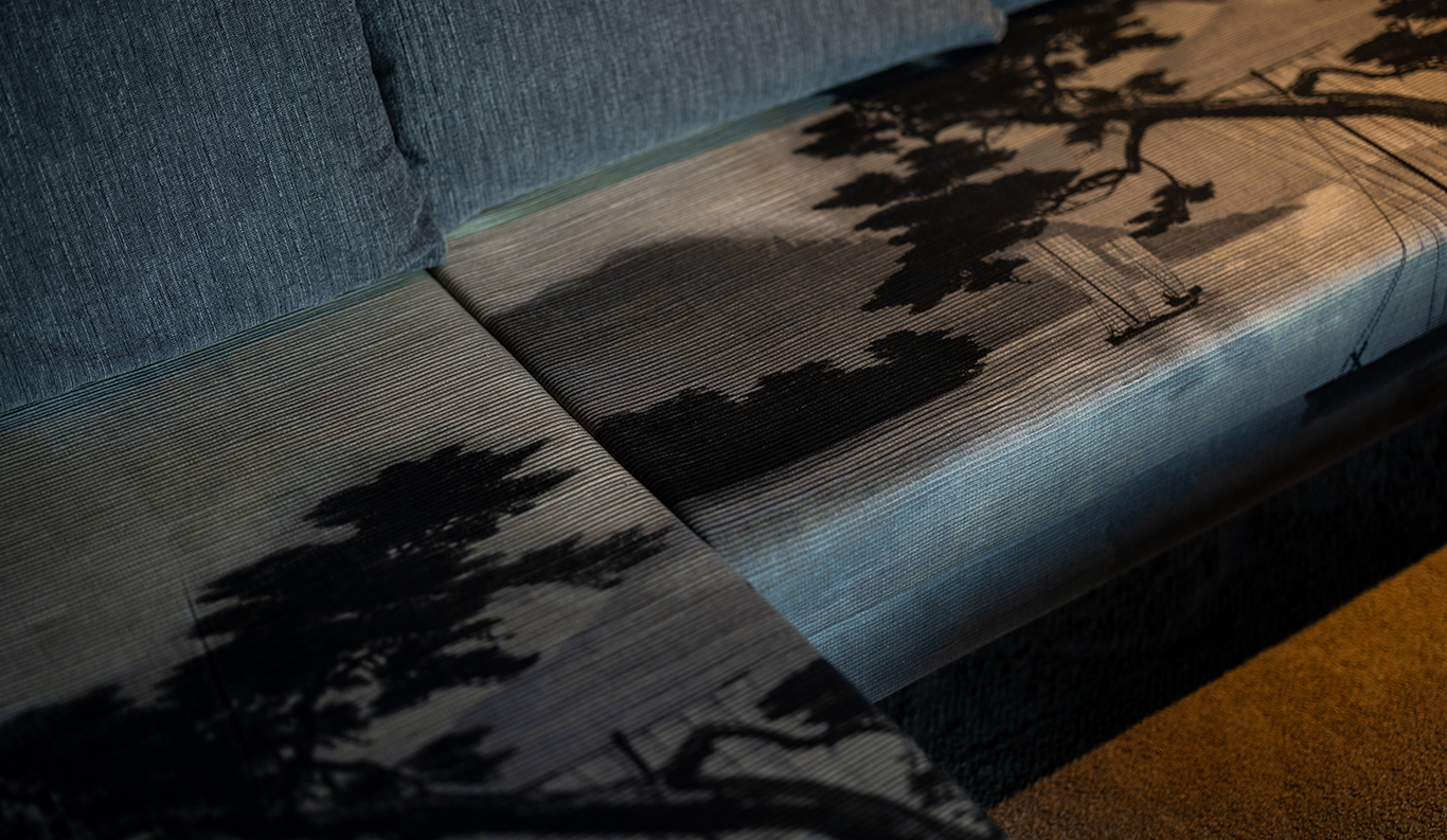 Armani Sofa The sofa in the Teigyoku suite is a Higashiyama Shikikaboku original, made with a Japan-inspired fabric from Armani.