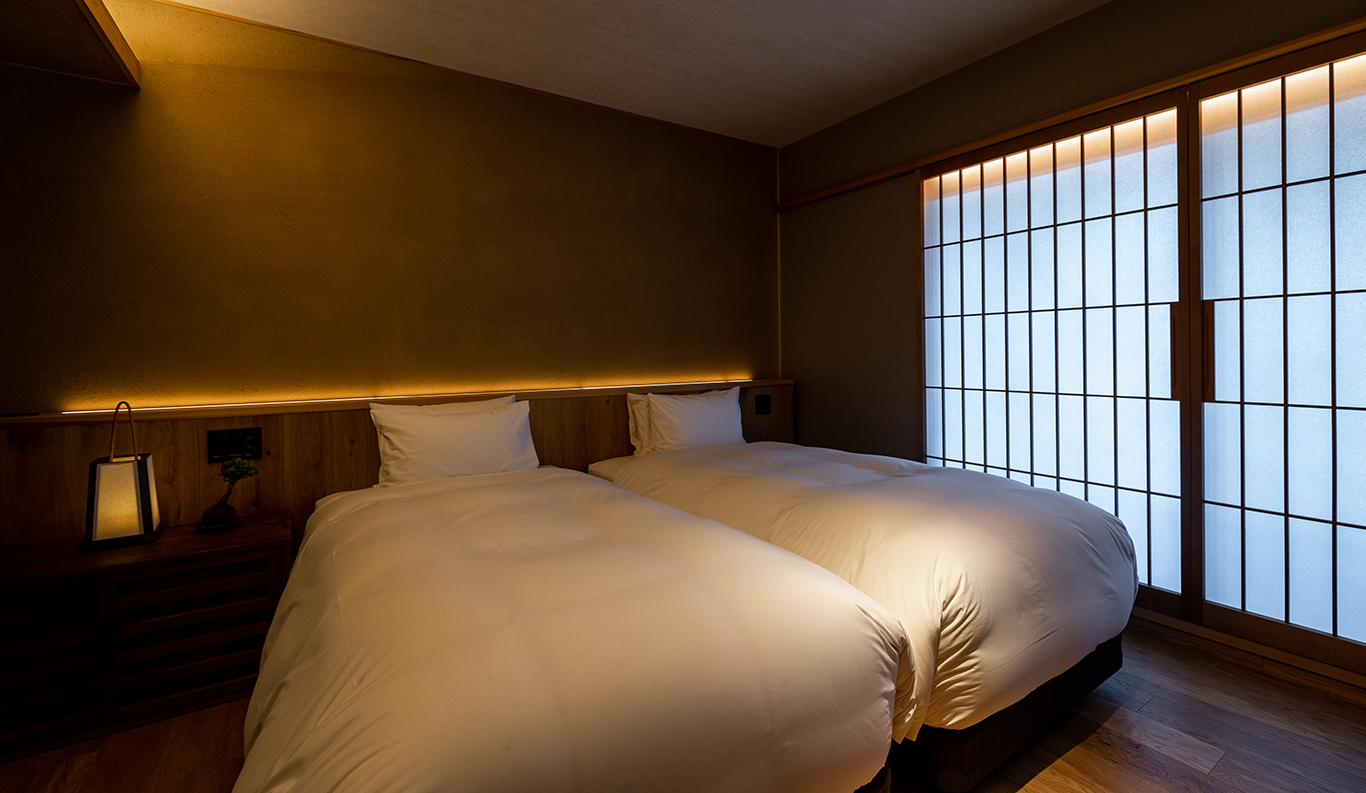 1-4 54 sqm Indoor Bath Bed The name of this premium suite comes from Kobori Ensyu, a 17th-century artist and aristocrat who founded the Ensyu-ryu school of tea ceremony. He favored a simple elegance over the rustic wabi-sabi fashion of the time, which is reflected in the clean lines of this suite’s wood furniture, a mix of modern pieces and Asian antiques. In a similar blend of old and new, the tatami-floored tearoom has cabinets decorated with Karacho karakami in an undulating pattern equally evocative of an ukiyoe seascape and an audio waveform. When the woody aromas of traditional hinoki cypress bathtub fills the air at bedtime, the room is a feast for all five senses. All-natural Noble Isle amenities, bespoke linen sheets, and Japanese-style pajamas designed by the owner herself are also included. Ask *Room rates at the Ryokan vary depending on the season and booking status. Therefore, we provide an estimated amount as a reference. REQUEST THIS ROOM -