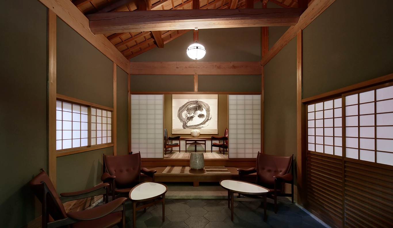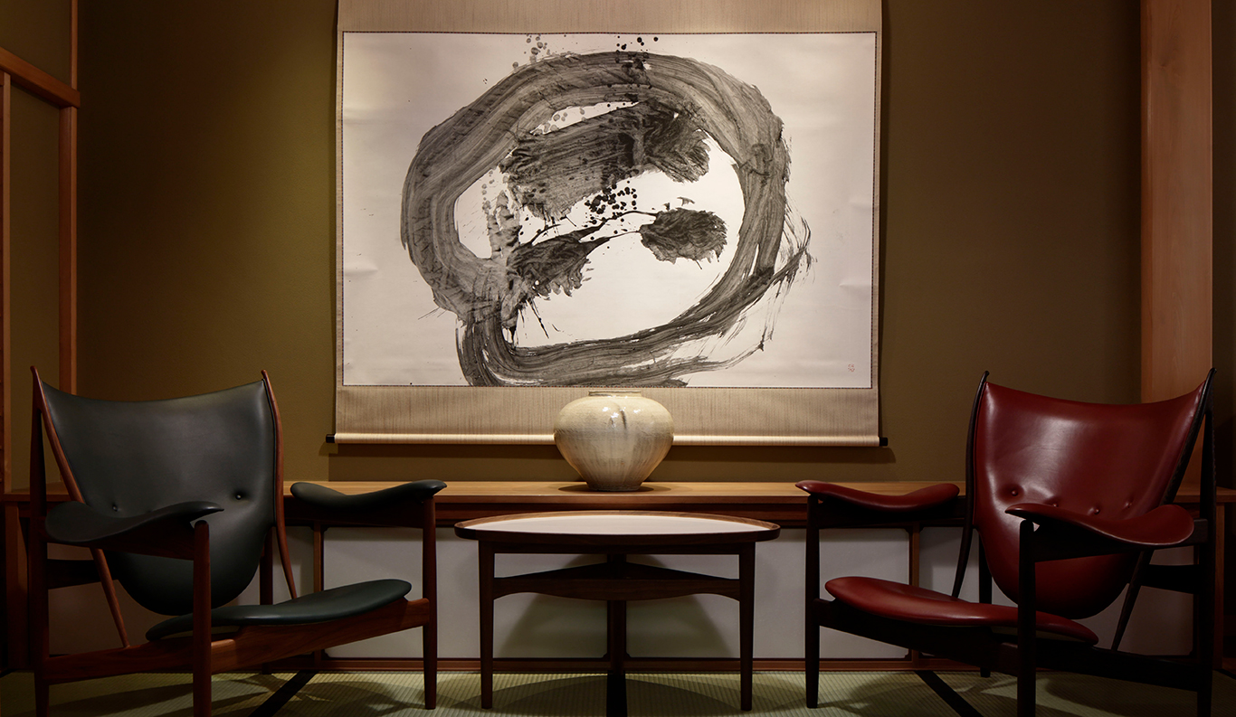In the Entrance Lobby, arriving guests are greeted by a big, bold work of shodo calligraphy by …