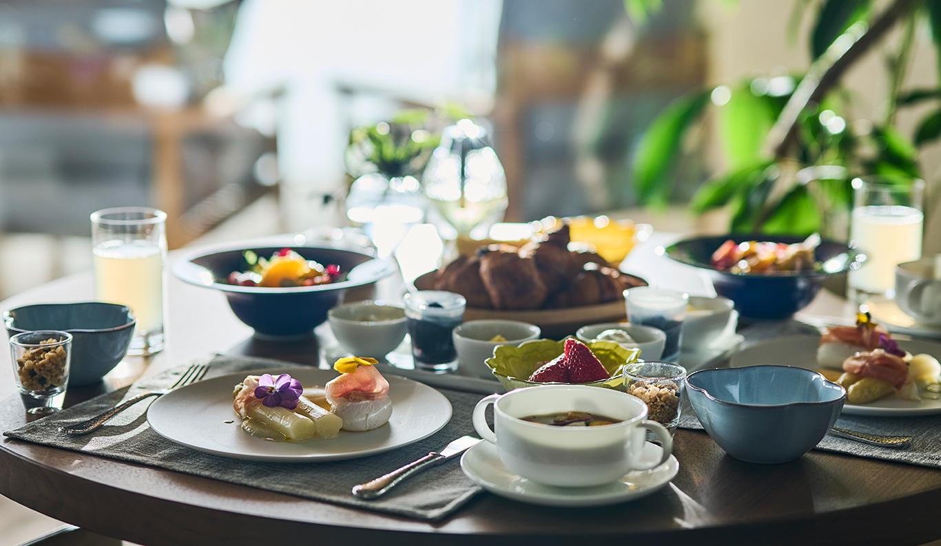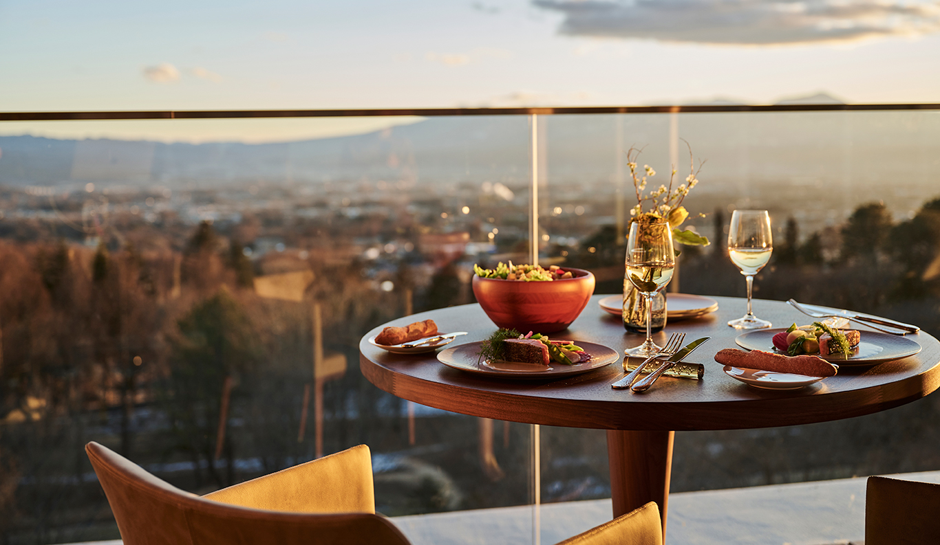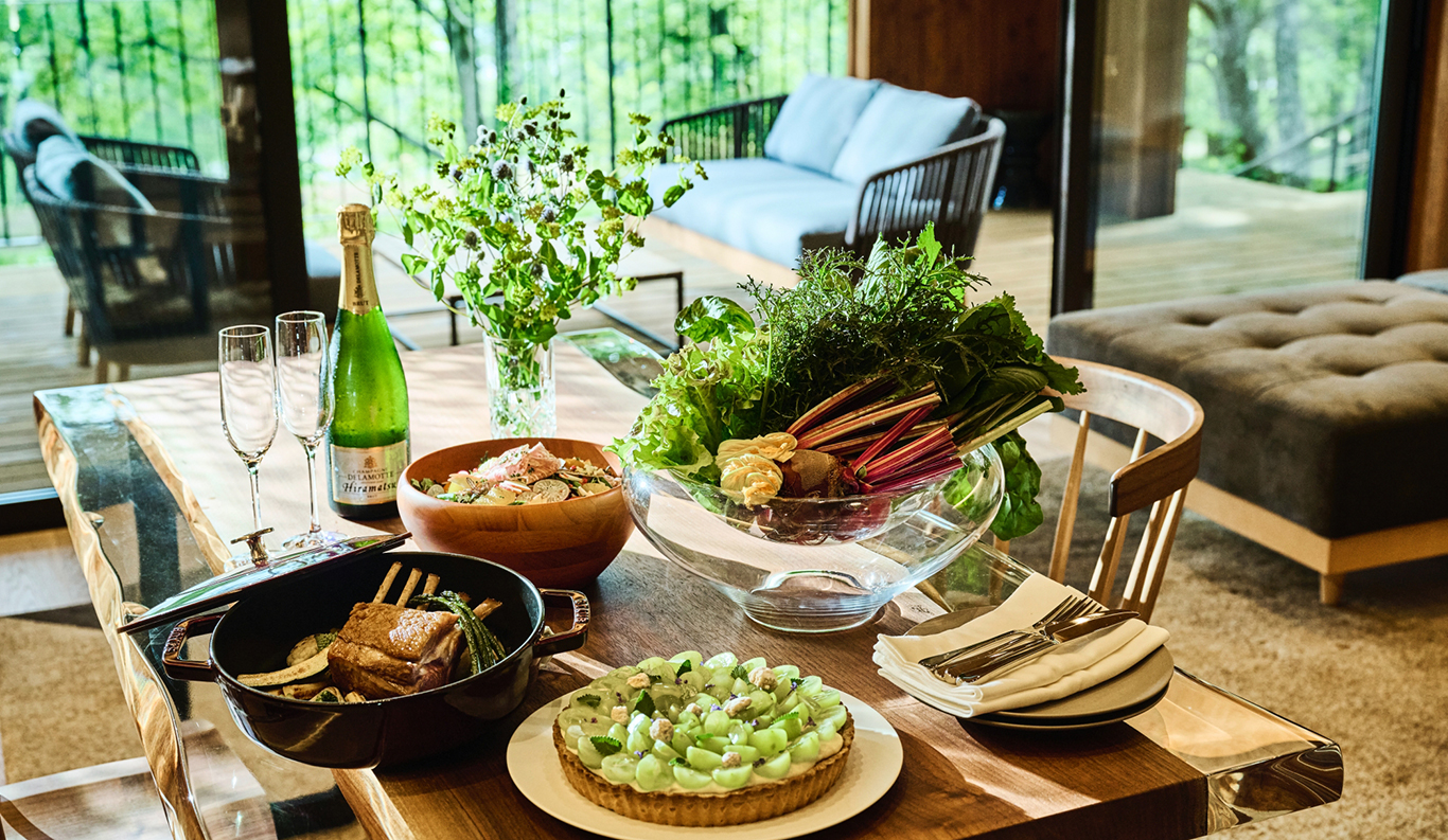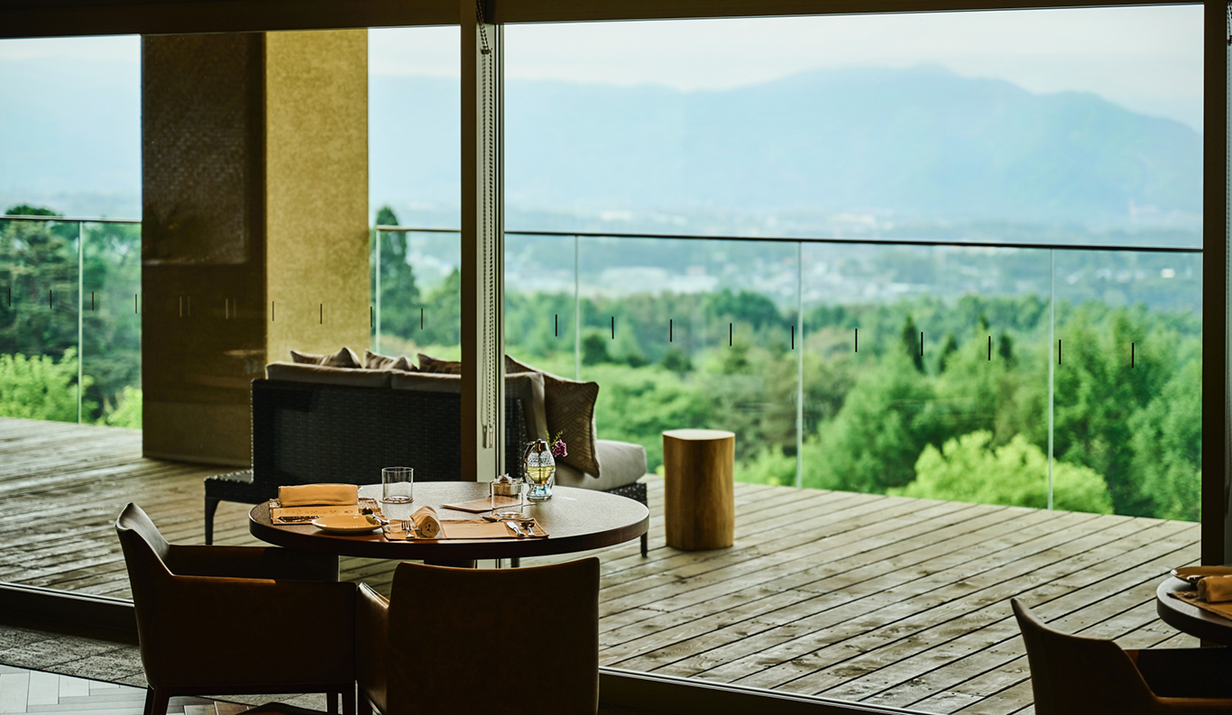 Dining Options In addition to the superlative meals offered at the two restaurants and a generous in-room dining menu, Chef Yanagihara has prepared a variety of dining options to make the most of the hotel’s natural environment. In fine weather, guests can opt to stroll the grounds and take a light breakfast picnic-style. Meanwhile, villa guests have the option of an exclusive menu served in their room, private garden or veranda or to barbecue for themselves with a chef’s selection of fresh vegetables, premium Shinshu beef, and seafood. In winter, they can opt for an umami-rich hot pot created in collaboration with the washoku chef at Hiramatsu’s Kyoto property.