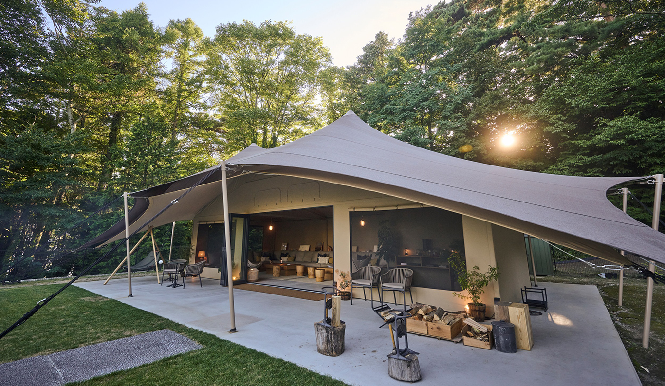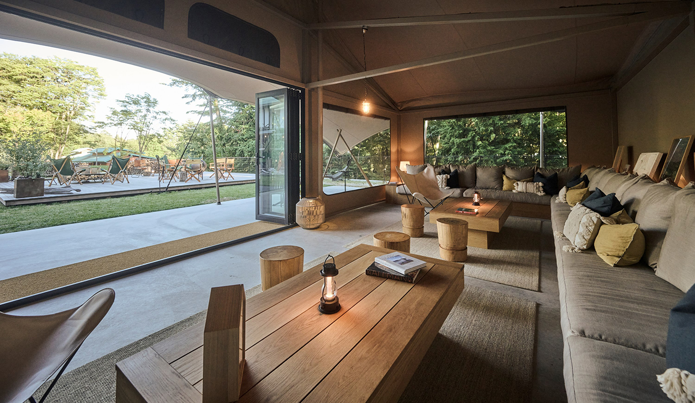 TAKIBI Lounge Under the sheltering boughs of the surrounding forest, the evening TAKIBI Lounge invites visitors to imbibe the beauty of their surroundings from the atavistic comfort of the fireside. Individual wrought iron firepits for each group and elegant lounge furniture are used to create a spacious open-air lounge equally suited for family bonding, solo relaxation, or a romantic tete-a-tete at dusk. Nostalgic campsite pleasures like roasted marshmallows and hot cocoa join the more adult delectations of homemade mulled wine, craft coffee, and seasonal light snacks prepared by Chef Yanagihara, all conspiring to lull guests into a peaceful languor ahead of dinner.