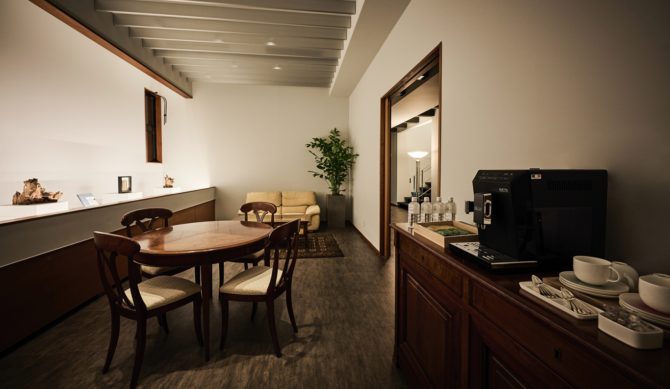 1-3 102 sqm Private Half Open-air Bath Bed The standard Deluxe Twin rooms all have slightly different layouts, but include a living space, work desk, balcony with sofa, and walk-in closets spacious enough for several large suitcases. All-natural materials like leather, wood, and thick weave fabrics create a tactile experience while the neutral shades leave the view in pride of place. In addition to coffee beans from a local roaster, fresh Shinshu fruit juices, and original organic amenities from plant biomethodology pioneer Waphyto, all rooms in the main building feature a semi-open air hot spring bath big enough for two, supplied with Hiramatsu’s signature hinoki cedar ribbon for an extra aromatic touch. The sky-view rooms are located on the third and fourth floors, while forest-view rooms are found on the first and second. ¥ 56,000~ per person (based on double occupancy) *Room rates at the Ryokan vary depending on the season and booking status. Therefore, we provide an estimated amount as a reference. REQUEST THIS ROOM