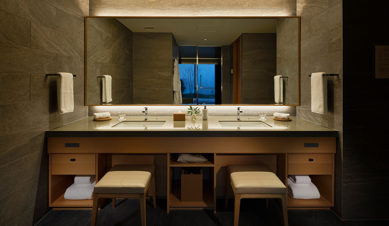 1-4 195 sqm Private Half Open-air Bath Bed The two-bedroom The Hiramatsu Suite rises over the property, a luxurious sense of privacy enabled by its fifth-floor perch. With windows on three sides, the suite offers expansive views of the Yatsugatake Mountains across the hamlet of Miyota and the sunset to the west. The suite offers the largest balcony in the hotel, complete with daybed perfect for midafternoon snoozing, a marble hot spring bath large enough for two, and a shower for each bedroom. The living and dining area provides ample space for in-room dining and leisure, but can be separated from the main bedroom by partition for additional privacy when needed. Both bedrooms feature organic natural-material Iwata beds from Kyoto. ¥ 184,000~ per person (based on double occupancy) *Room rates at the Ryokan vary depending on the season and booking status. Therefore, we provide an estimated amount as a reference. REQUEST THIS ROOM -