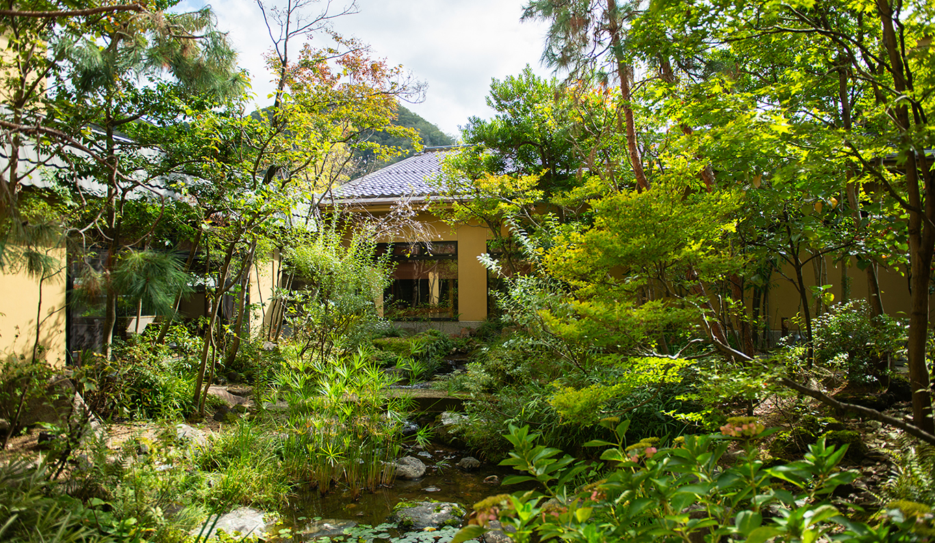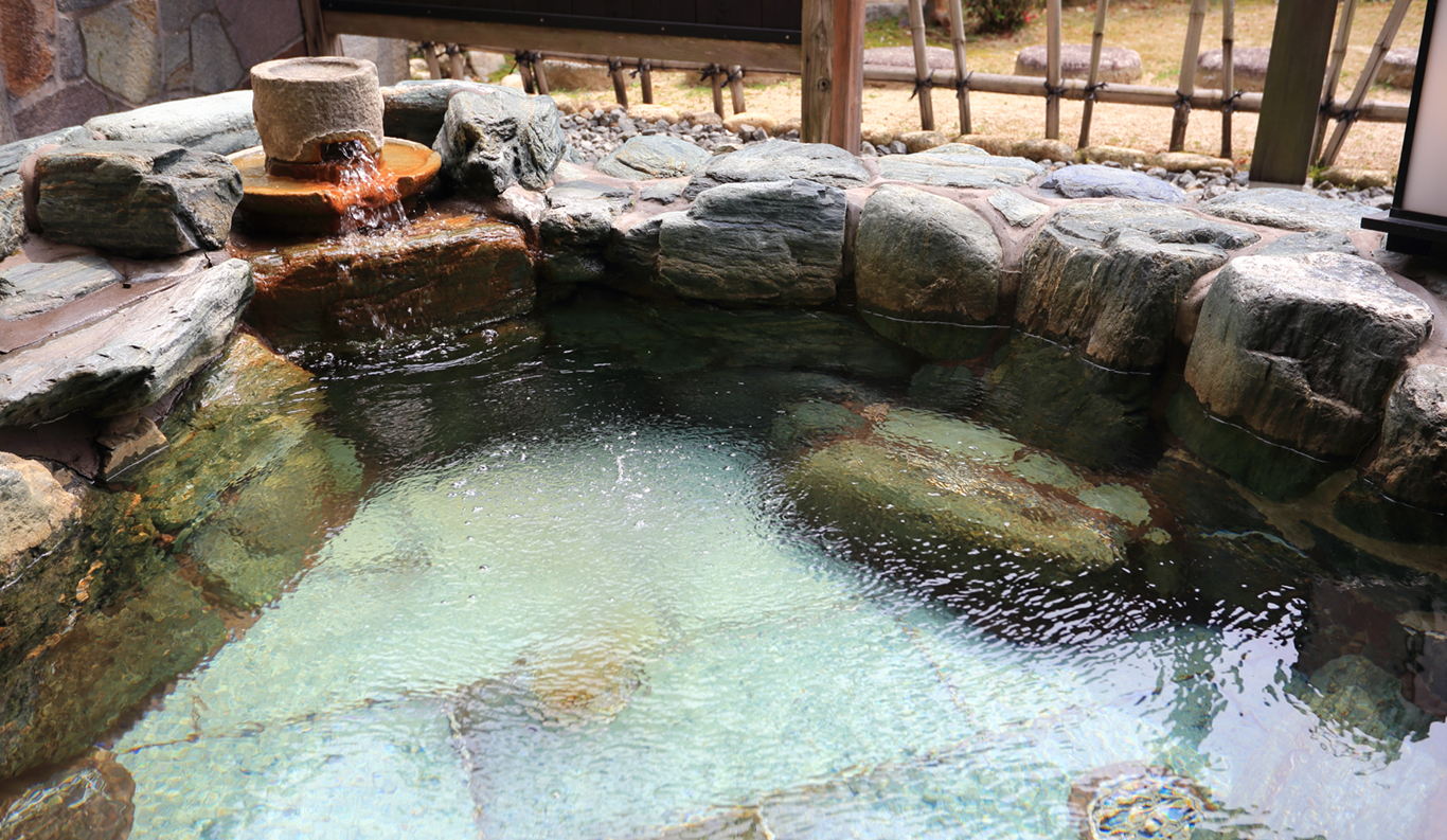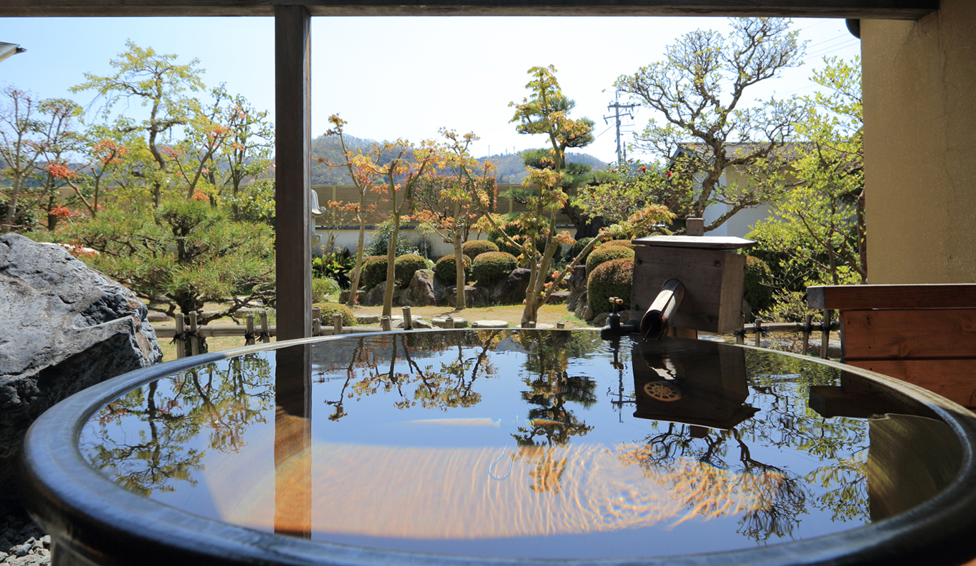 Enjoy a deep soak to your heart’s content in the hot bath filled with water from the natural spring whose quality is said to be the best in Western Japan, and the seasonal changes unique to Yunogo Onsen.
