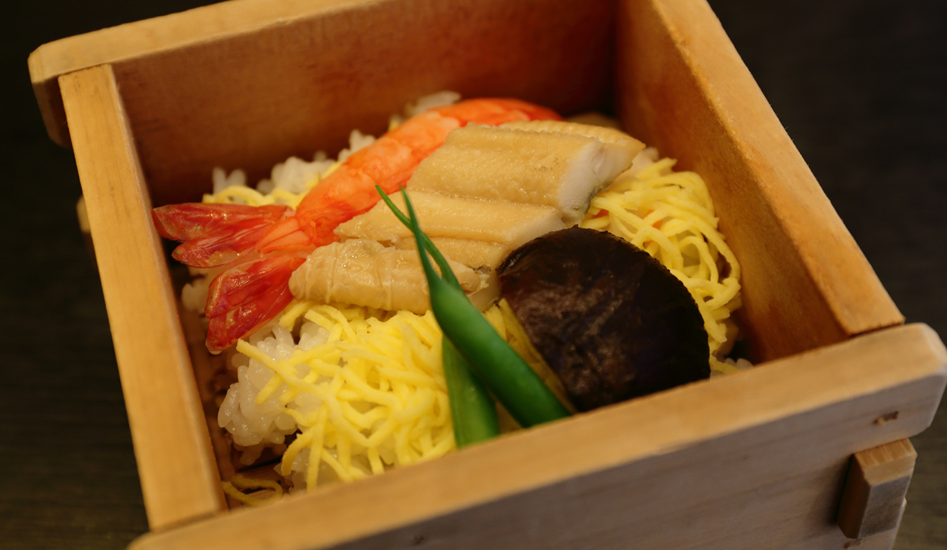 There are several restaurants serving the ryokan's guests: "Zakuro" serving Japanese Kaiseki cuisine. Four private rooms, just the right size for groups of five or six, overlook a beautiful traditional garden. Three smaller rooms are also available for more intimate dining. In addition, three other dining spaces are available: "Ajisai," a larger room, perfect for slightly larger parties of up to 12; "Momiji," a tatami room designed for small parties; and "Tsubaki," a larger room for private parties and meetings. There is also a karaoke room, with comfortable couches dressed up in very authentic-looking, shiny blue velour, for a pleasant trip down memory lane as you sing your heart out in a relaxing, soundproof venue.