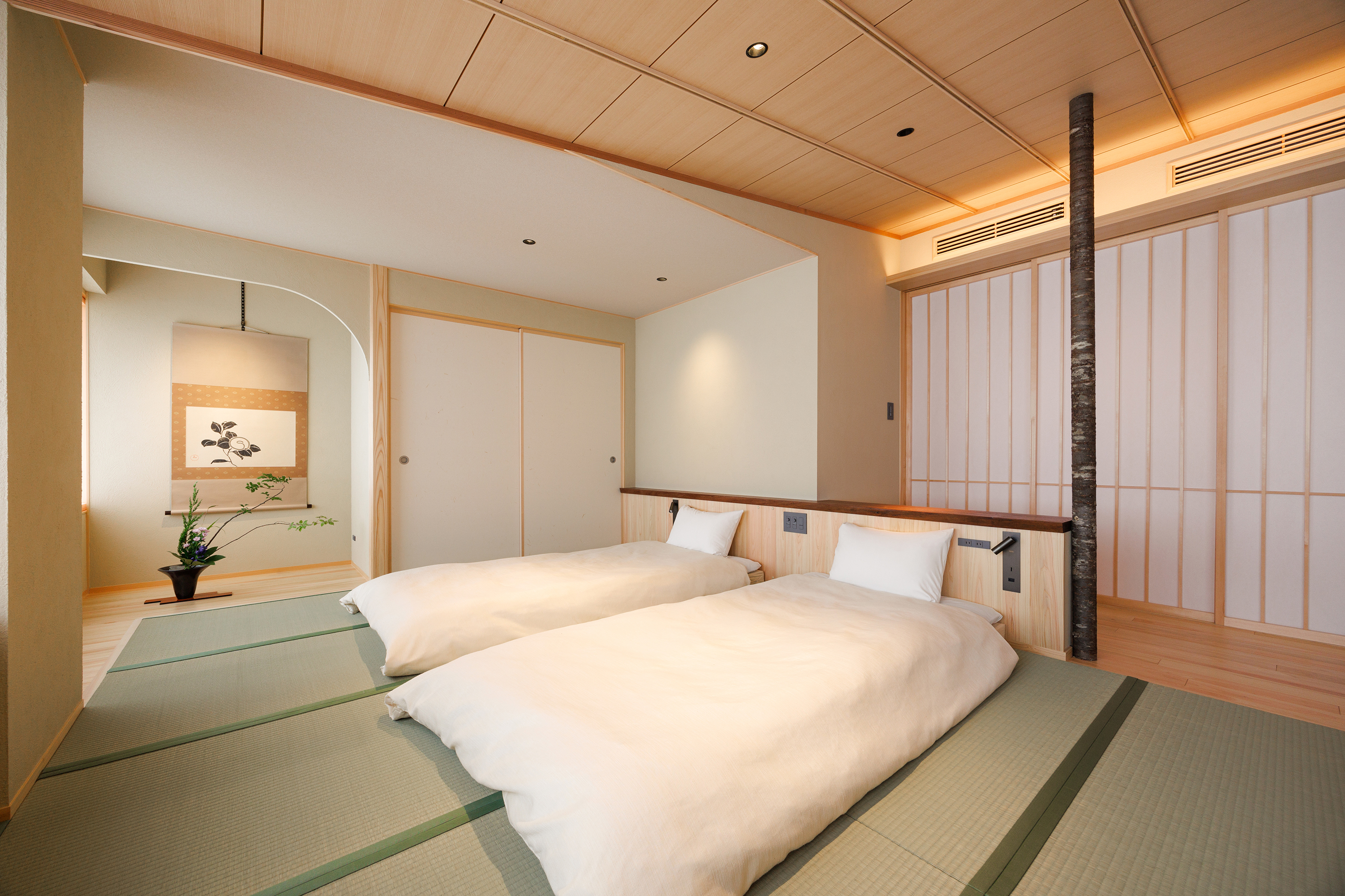 Semi-suites - These have twin Western-style beds with an attached tatami room for relaxing Japa…