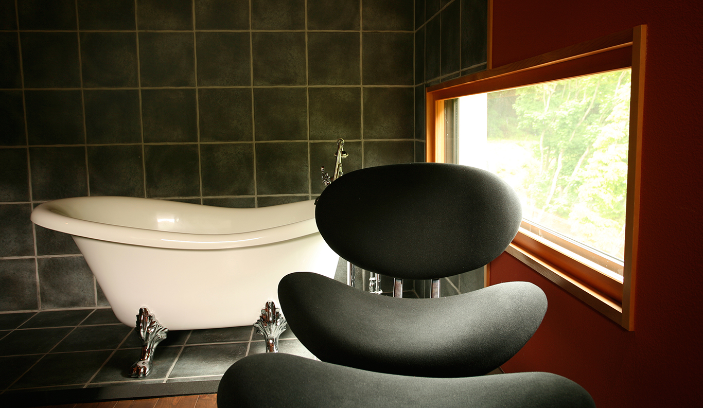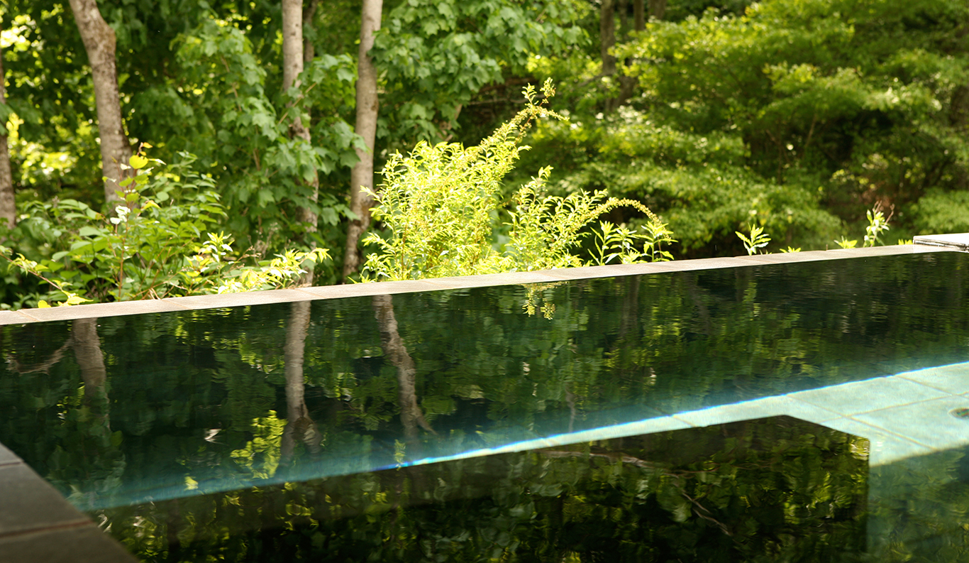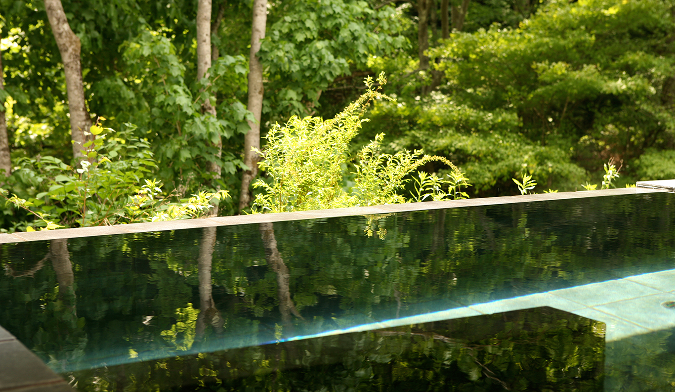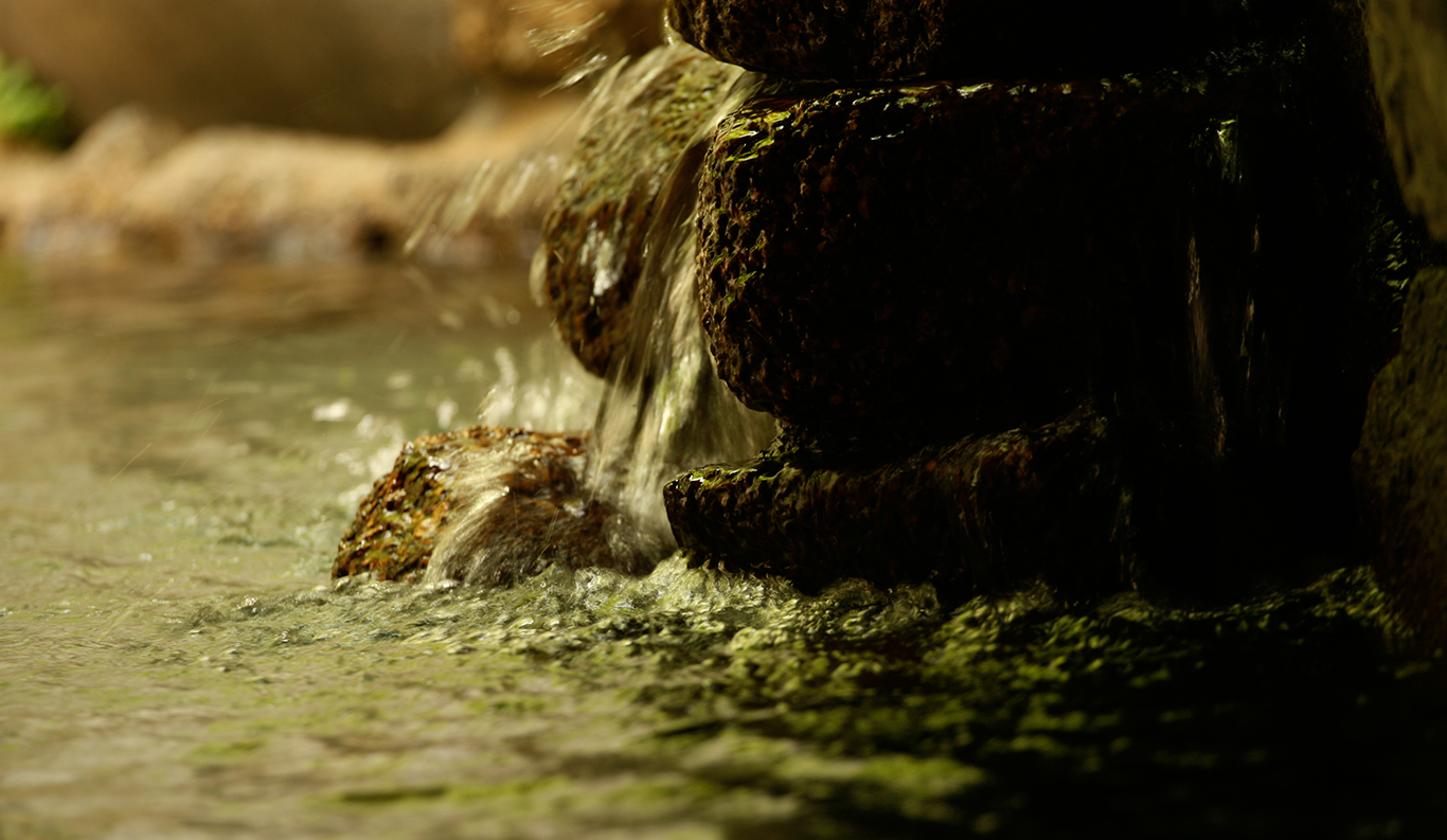 Public Bath Myojinkan's main bath includes a large indoor bath with walls of glass framing the deep green forest beyond, and an outdoor rotenburo with only the sound of the forest and water flowing over a rock fall. The crystal clear hot springs here are a warm 42 degrees Celsius, and are known for their soothing effects on the skin and rejuvenating effects on the body. A separate bath with lightly carbonated hot springs water softly cleanses the skin and enhances the body's natural detoxification process.