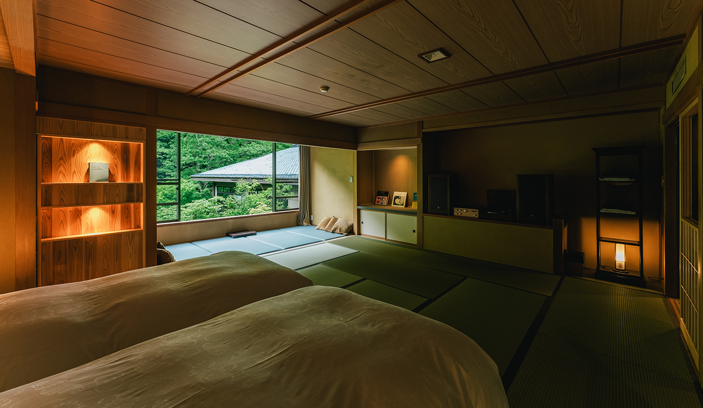 1-5 92 sqm Private Open-air Bath Futon Coming soon ¥ 74,466~ per person (based on double occupancy) *Room rates at the Ryokan vary depending on the season and booking status. Therefore, we provide an estimated amount as a reference. REQUEST THIS ROOM -