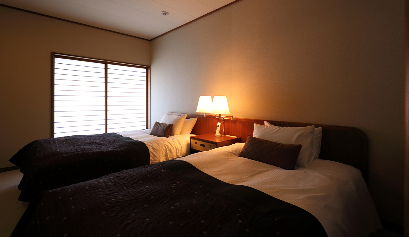 2-6 68 sqm Indoor Bath Bed This room is smaller but spacious and overlooks a traditional stone garden, with the town of Arima and the hillside beyond. The single Japanese tatami room serves as both a living room and as an optional sleeping room, so if you like you can ease into sleep on a traditional Japanese futon amid the restful fragrance of tatami. The room also has twin Western-style beds. The indoor bath is a comfortable hinoki wood tub. ¥ 49,830~ per person (based on double occupancy) *Room rates at the Ryokan vary depending on the season and booking status. Therefore, we provide an estimated amount as a reference. REQUEST THIS ROOM -