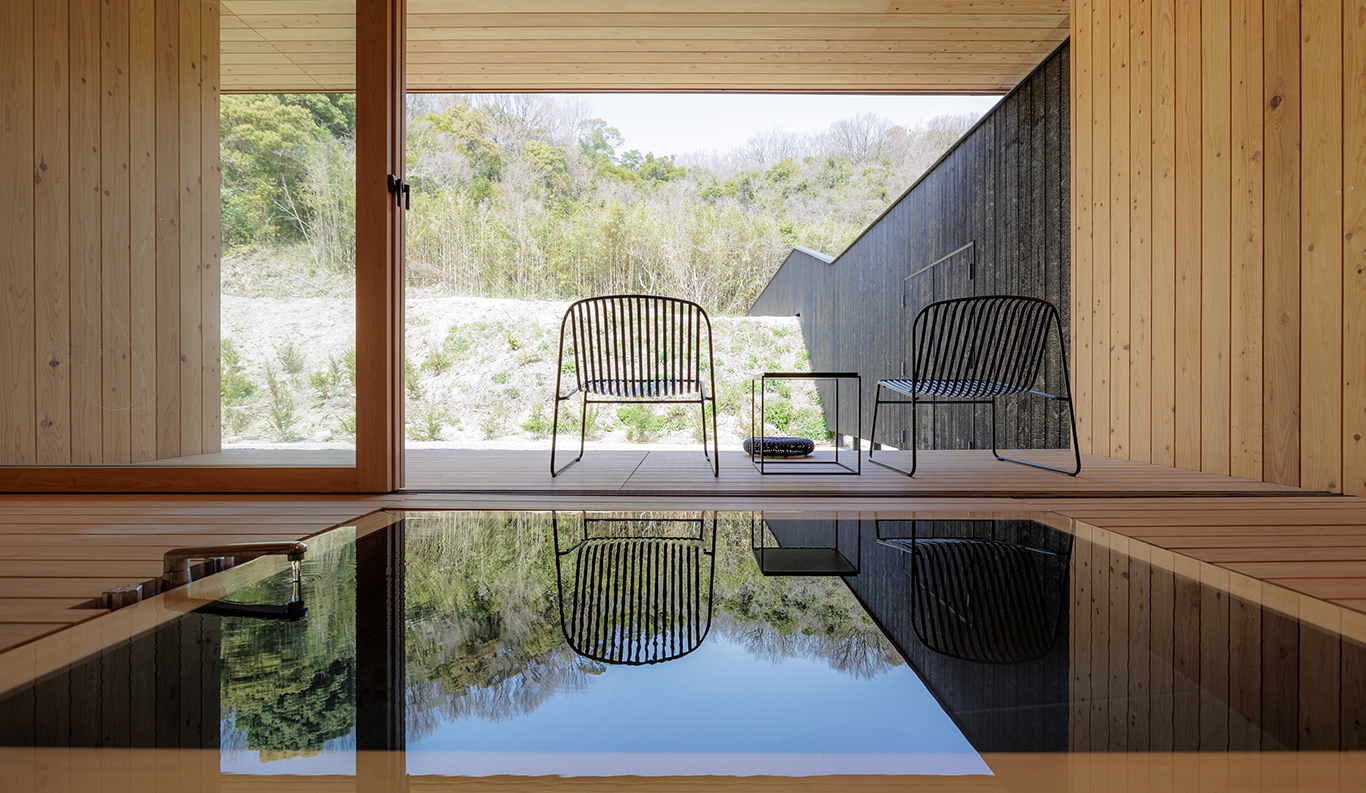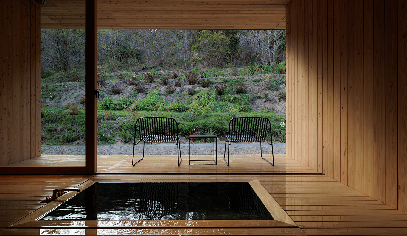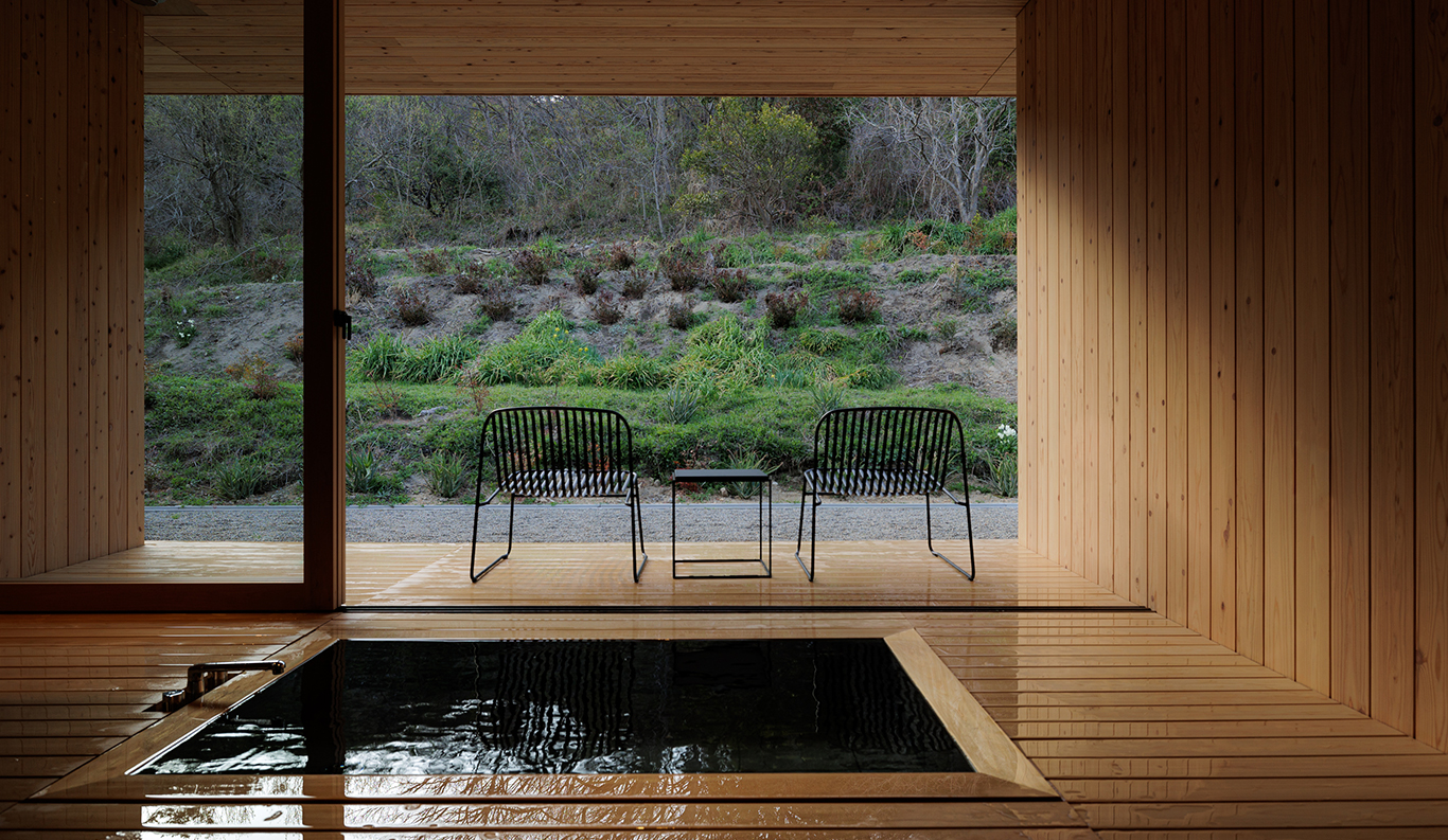 Sasaki’s vision of a small hamlet that rises in harmony with its gently sloped surroundings continues to take shape under the sure hands of architect Hironori Fujioka of the Okayama-based nottuo Inc. With its restaurant and café-bar, 11 guest suites, central firepit for outdoor gatherings, and planned artist studios, it is an exciting new addition to the delights of Naoshima, very much in step with the island’s mission to strengthen community ties through contemporary art.