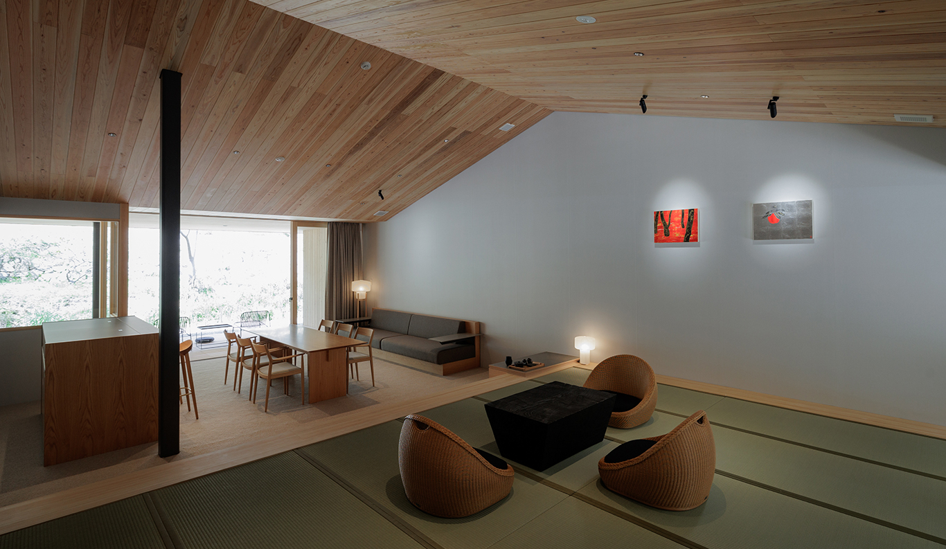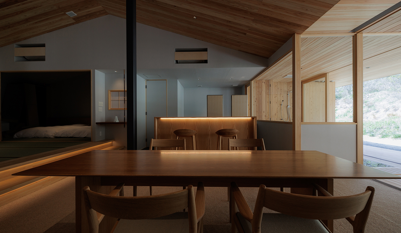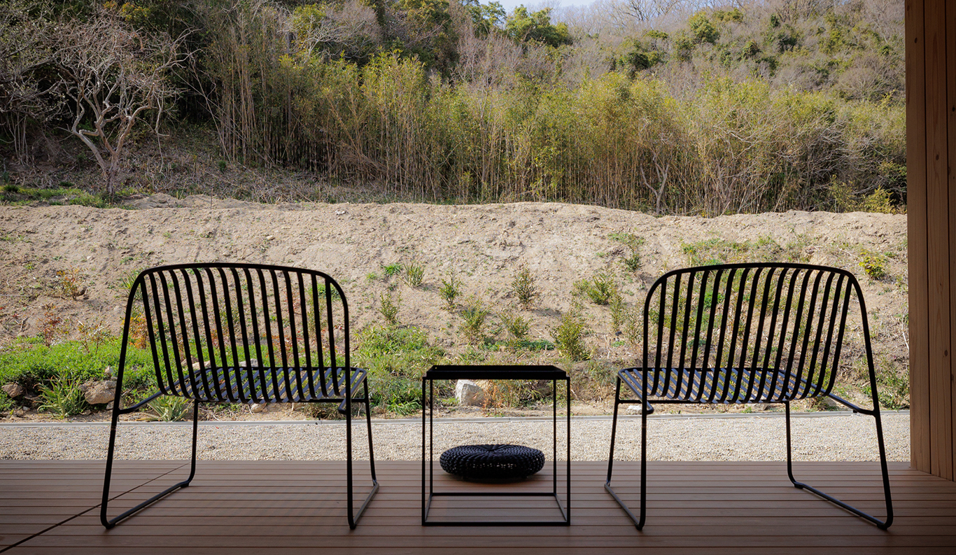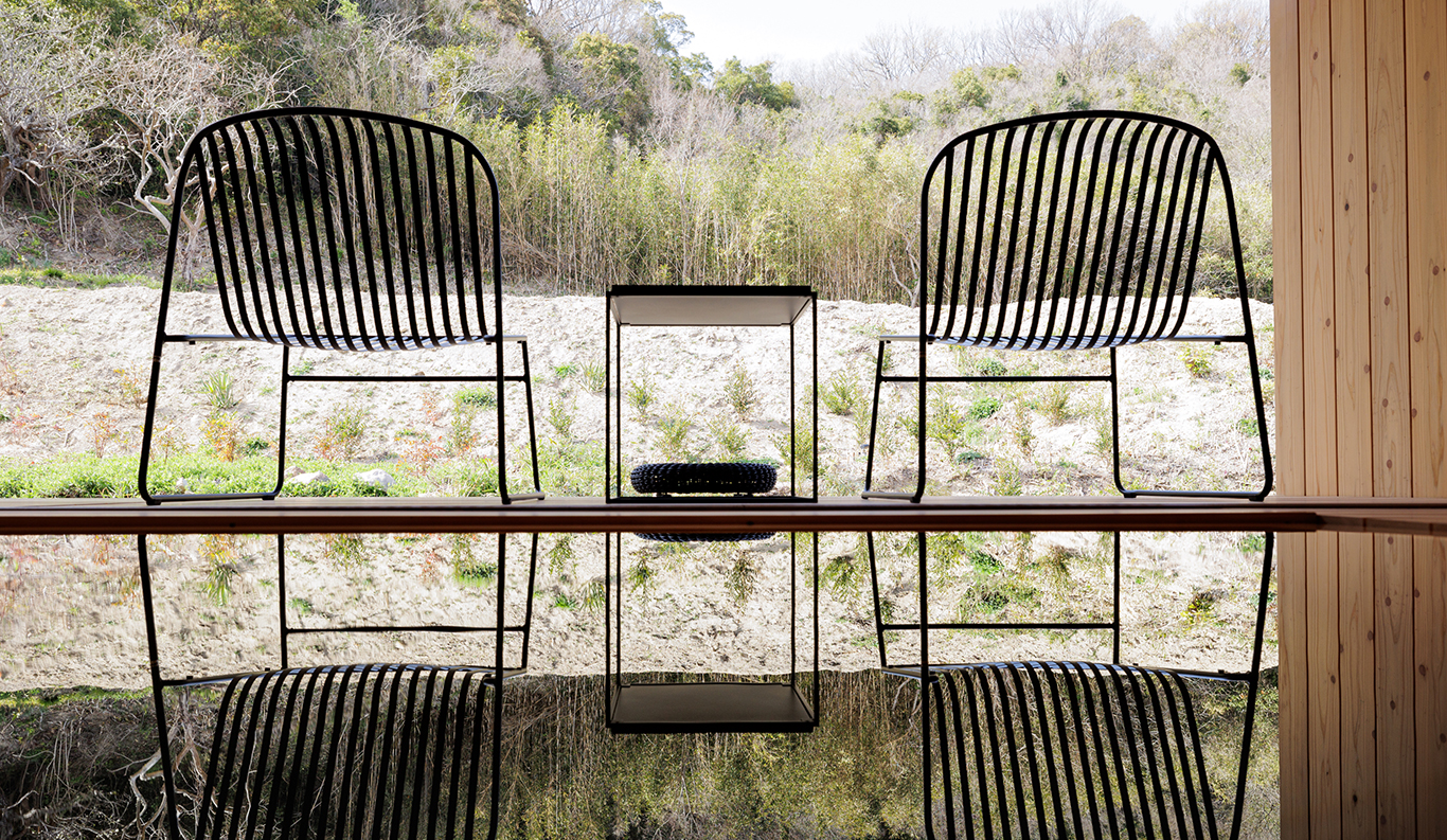 Sasaki’s vision of a small hamlet that rises in harmony with its gently sloped surroundings continues to take shape under the sure hands of architect Hironori Fujioka of the Okayama-based nottuo Inc. With its restaurant and café-bar, 11 guest suites, central firepit for outdoor gatherings, and planned artist studios, it is an exciting new addition to the delights of Naoshima, very much in step with the island’s mission to strengthen community ties through contemporary art.