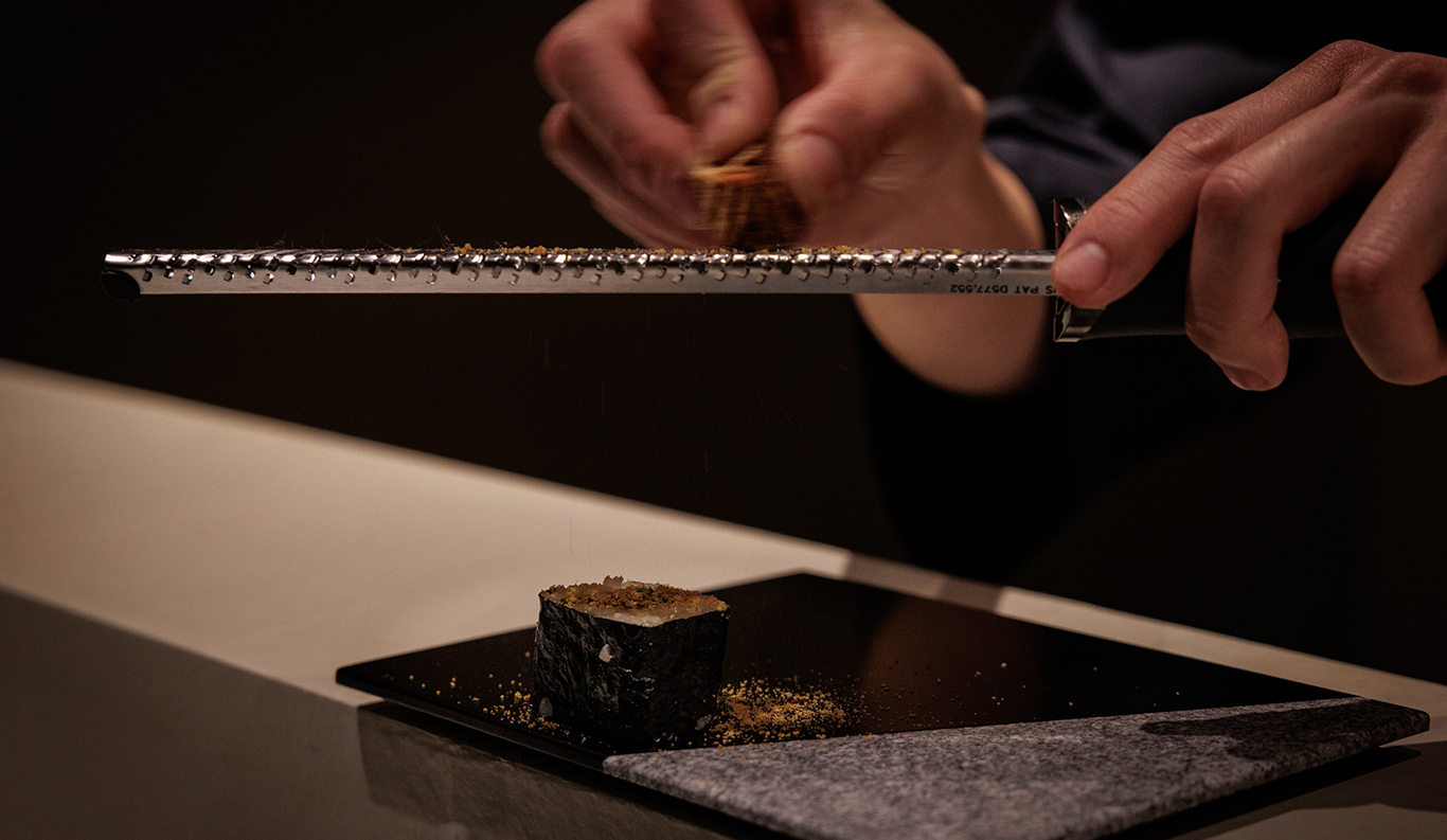 Ninety percent of the ingredients are sourced locally, right down to the miso, salt, and soy sauce, all from Kagawa Prefecture. The delicately flavored salt is Sanuki Moshio, derived in the same way as ancient times by boiling down mineral-rich seaweeds like sargassum. The soy sauce is brewed on nearby Shodoshima Island and infused in-house with Roka’s own blend of umami-rich bonito shavings and kombu. While emphasis is placed on seafood, other regional specialties include premium Nagi Wagyu beef from northern Okayama and olive-fed Wagyu from Shodoshima, the birthplace of olive cultivation in Japan. Wagyu cattle on the island are grown on feed blended with the leftover pressings for a lusciously rich and clean flavor packed with high levels of oleic acid.