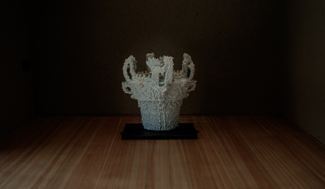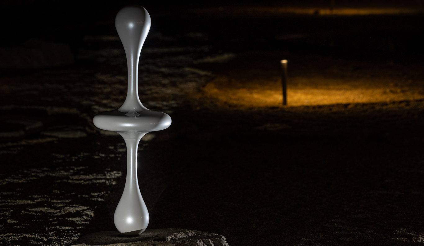 Permanent Collection A perfectly poised organic form rising from a boulder in the front courtyard is the first hint of the playful art on display at Roka. From the Ether series by Kohei Nawa (b. 1975), the sculpture is modelled after the changing forms of a liquid droplet as it falls, mirrored vertically to suggest infinity and a virtual state of weightlessness.