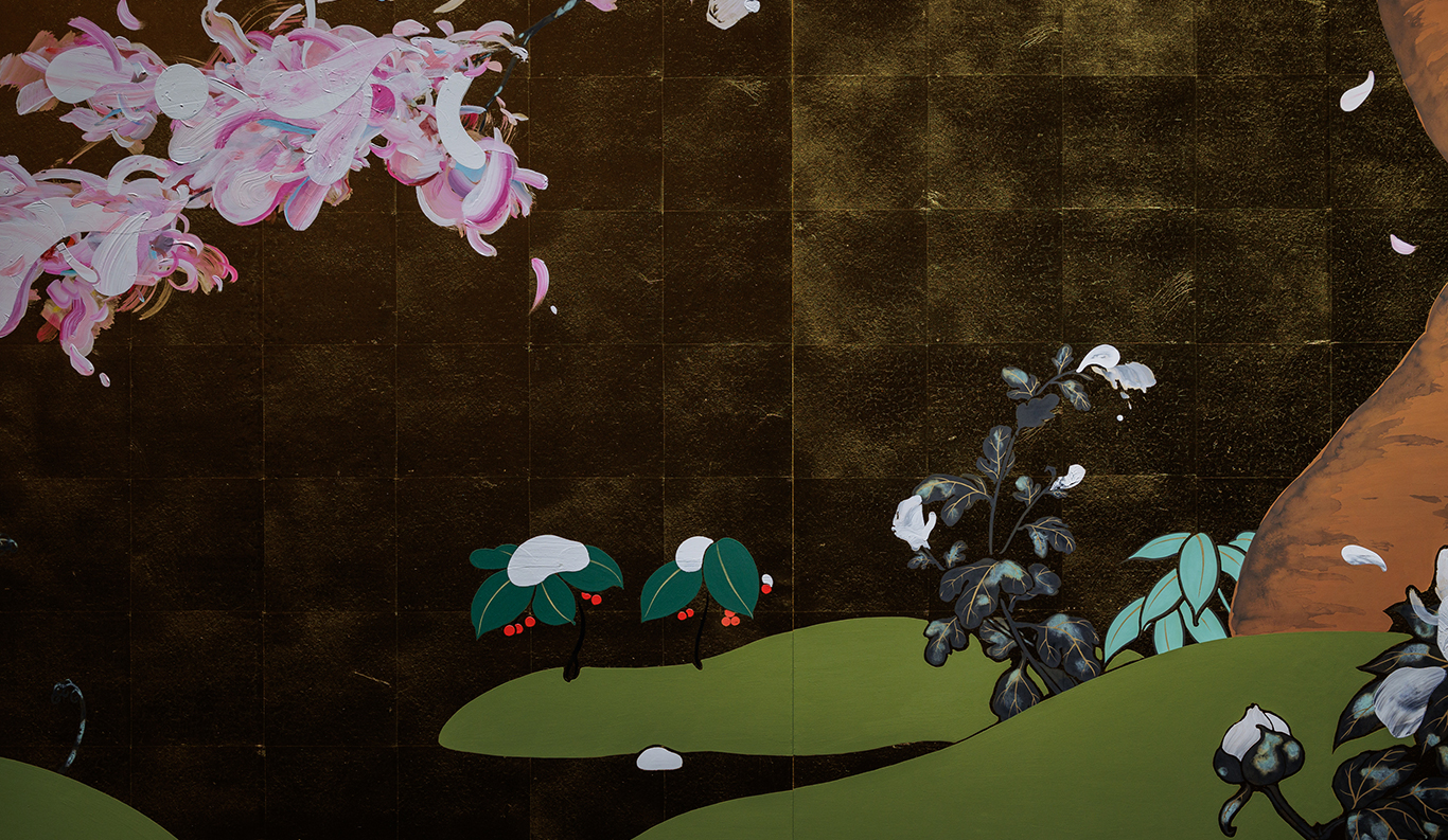 The inaugural Spring/Summer 2022 show (April 14 – September 30), features a dozen works by the Kyoto-based painter Ryo Shinagawa (b. 1987). Entitled Shin Kokin Wakashu (New Collection of Poems Ancient and Modern) after the celebrated imperial anthology commissioned in 1201, this new series is Shinagawa’s personal interpretation of 12 select poems. Shin Kokin is one of the best-known works of Japanese literature, considered a crystallization of Japanese aesthetics in what was a highly poetic age. To this source material Shinagawa brings his honed technique, perceptive eye, and sense of humor.