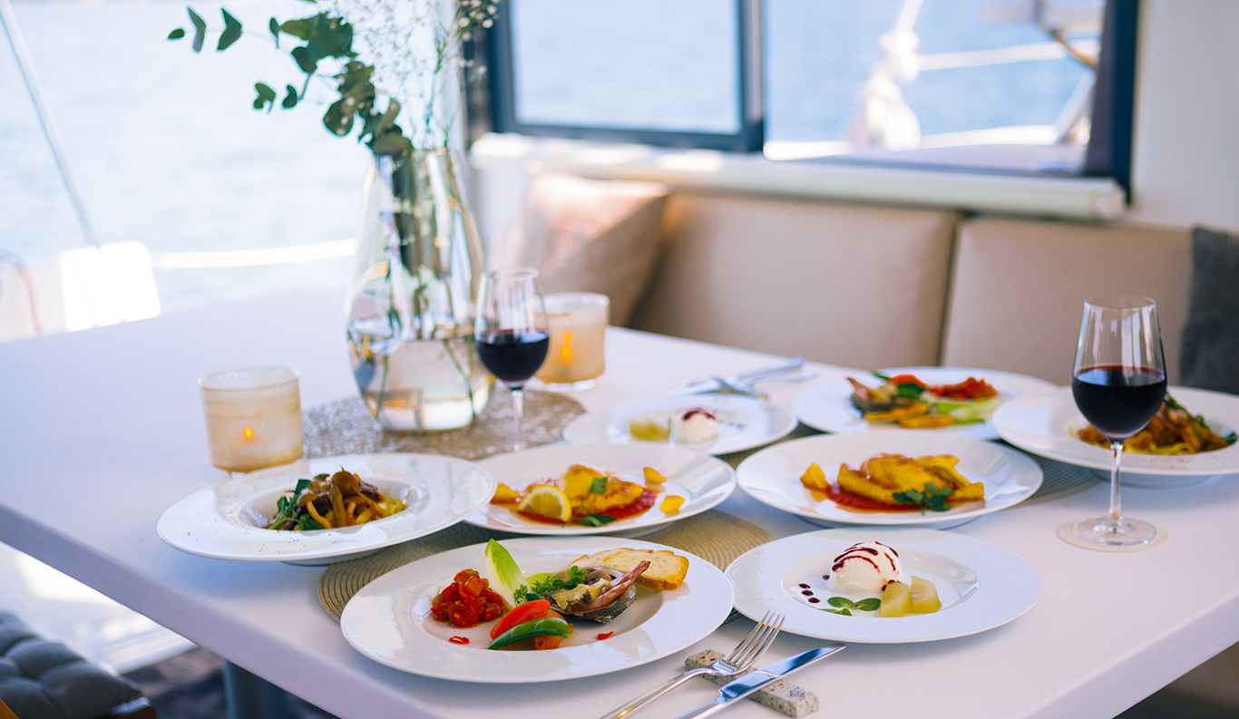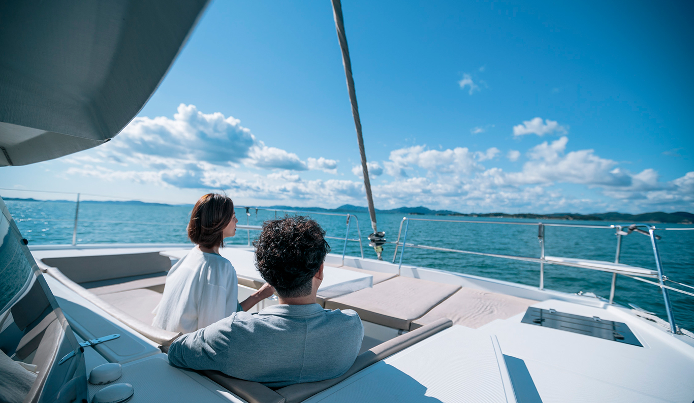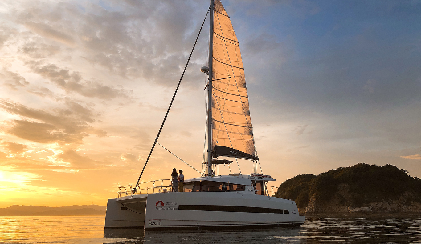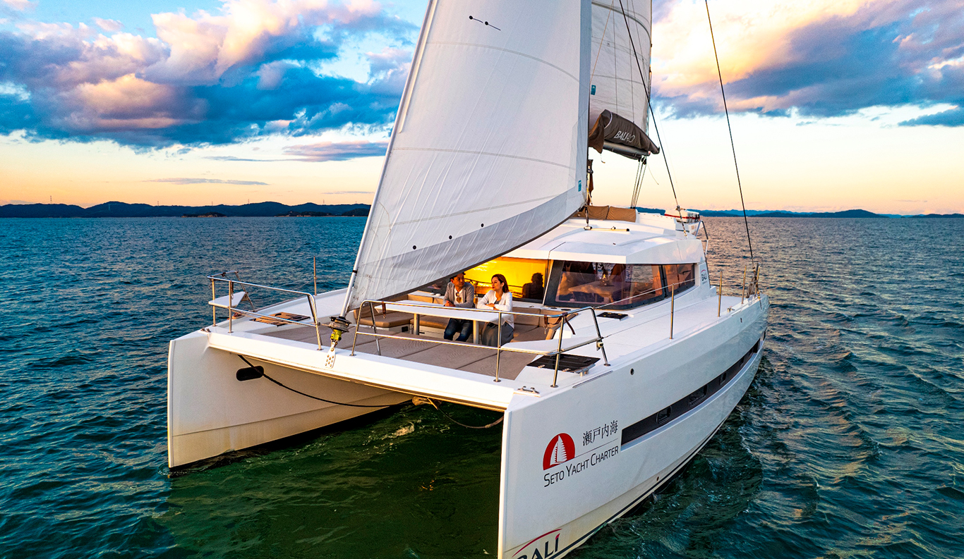 Sunset Cocktail Cruise You can rent a luxury catamaran yacht where you can stay and enjoy a cruise on the Seto Inland Sea. The 360-degree view of “Tajima-bi” from the luxurious yacht is breathtaking. Enjoy a meal on board like a small resort hotel or enjoy your drink while feeling the sea breeze on the deck of the bow. The sunset cruise, where you can enjoy the dynamic Seto Ohashi Bridge, and the red ocean sunset, will surely be a gorgeous experience for you.