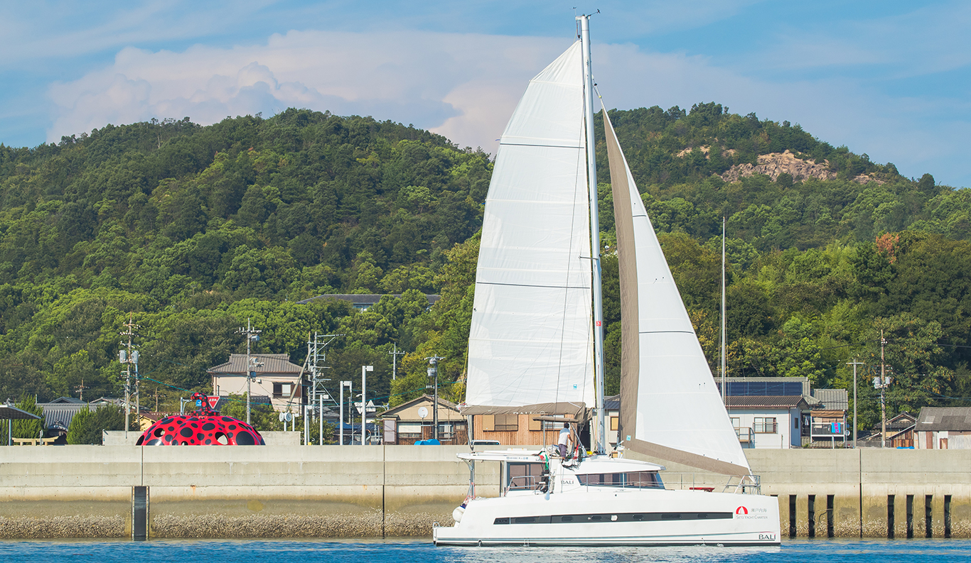 Setouchi Island Hopping by Charted Catamaran Charted catamaran cruise trip to Inujima and Teshima is available during your stay at Naoshima Ryokan ROKA. The scenery of over 1,000 islands in the Seto Inland Sea is called "Tajima-bi," and it is a spectacular view either from the ocean or the mountains. Uno Port is the gateway to Naoshima, which is well-known for contemporary art worldwide. From here, we will take you on a journey around the islands of Setouchi, including Naoshima, Teshima, and Inujima.