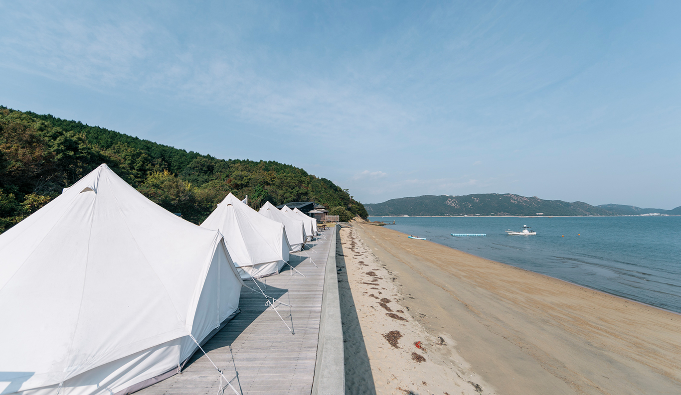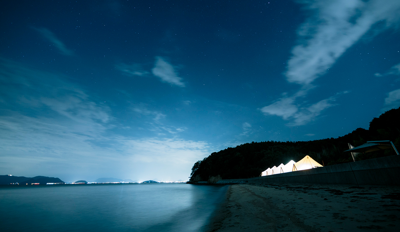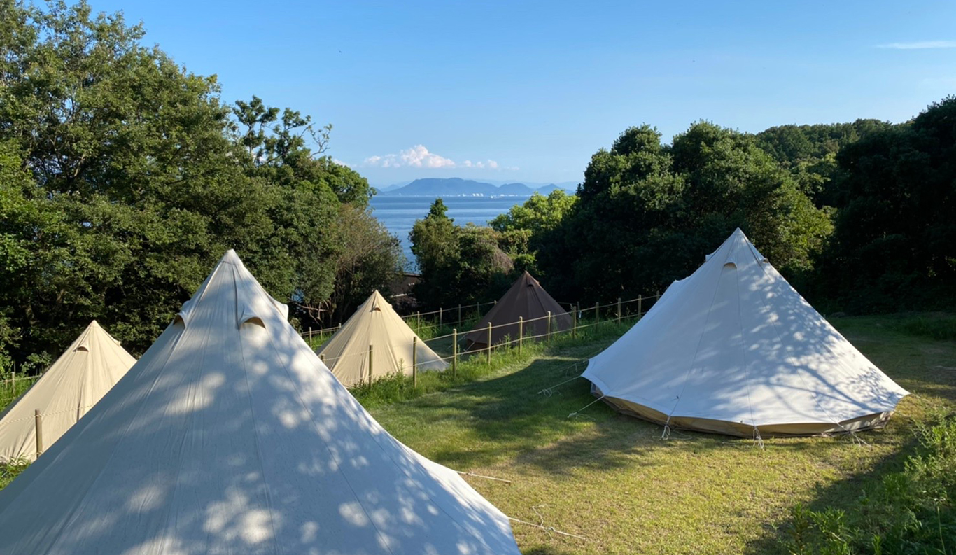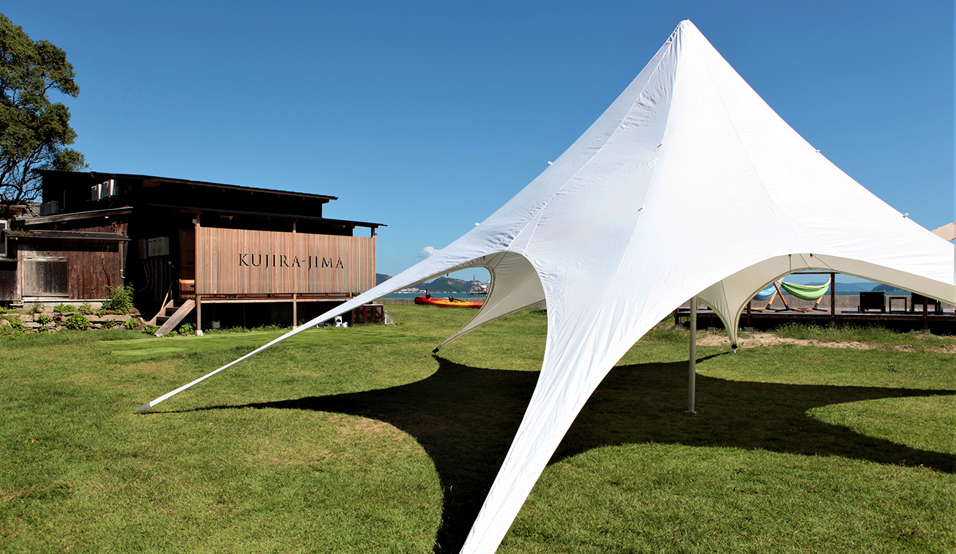 Private Glamping Experience on KUJIRA-JIMA A small desert island, KUJIRA-JIMA, floats off the calm blue Seto Inland Sea coast. This experience is a private paradise that offers you the new charm of the Seto Inland Sea as a private campground exclusively for one group a day. Surrounded by the clear ocean water and lush greenery, you will experience extraordinary island time at the glamping. The mysterious sunset and the stars shining in the night sky will also refresh your soul. Sophisticated cottages and bell tents promise you a comfortable stay. You can enjoy various activities such as kayaking and stand-up paddle boarding during your stay.