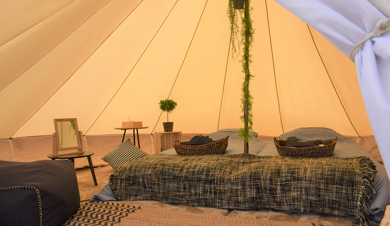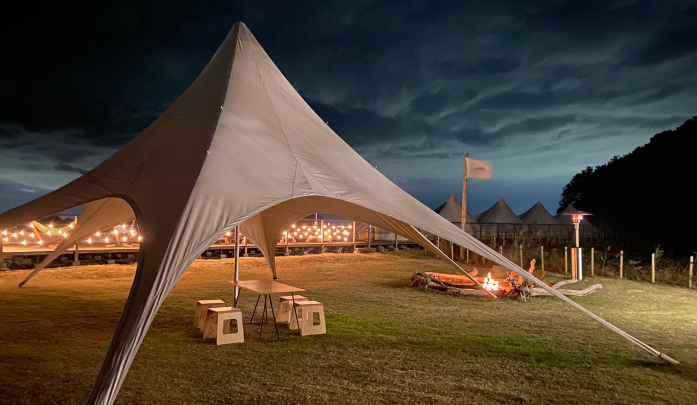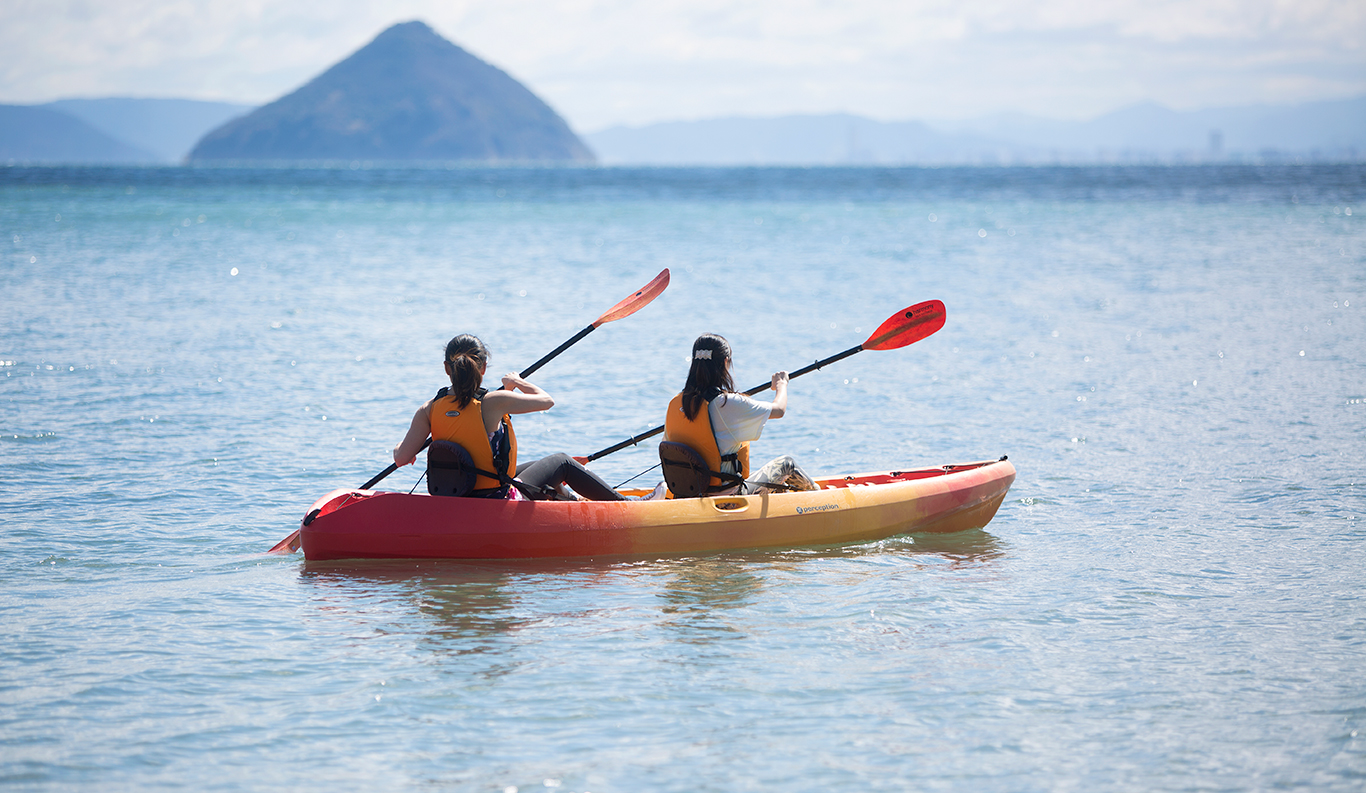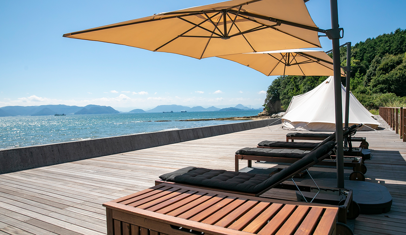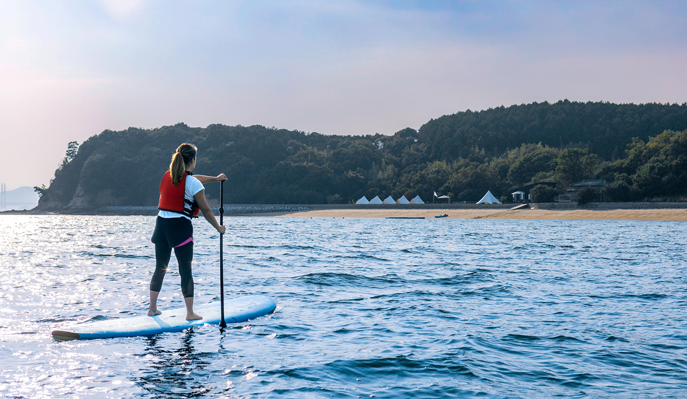 Private Glamping Experience on KUJIRA-JIMA A small desert island, KUJIRA-JIMA, floats off the calm blue Seto Inland Sea coast. This experience is a private paradise that offers you the new charm of the Seto Inland Sea as a private campground exclusively for one group a day. Surrounded by the clear ocean water and lush greenery, you will experience extraordinary island time at the glamping. The mysterious sunset and the stars shining in the night sky will also refresh your soul. Sophisticated cottages and bell tents promise you a comfortable stay. You can enjoy various activities such as kayaking and stand-up paddle boarding during your stay.