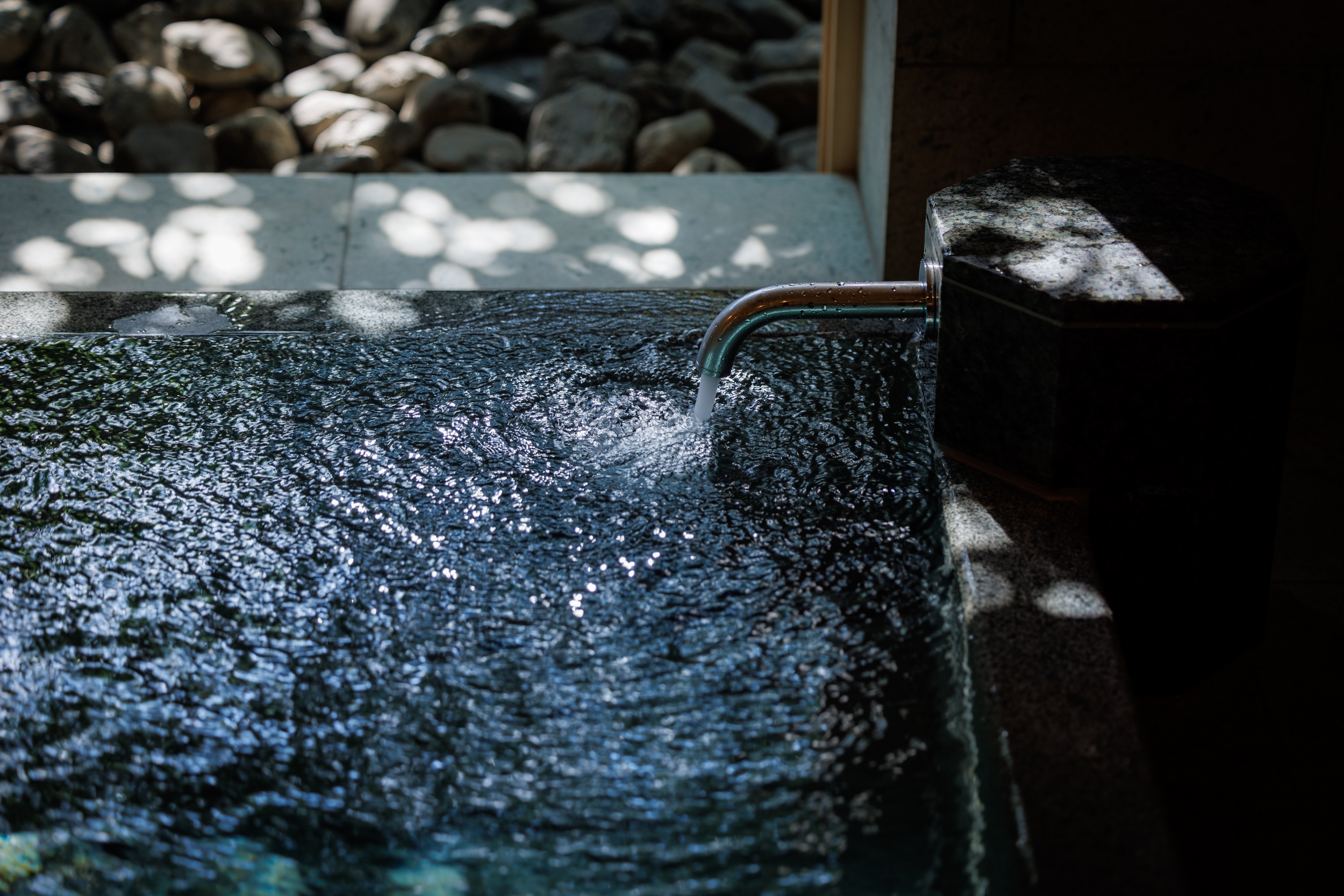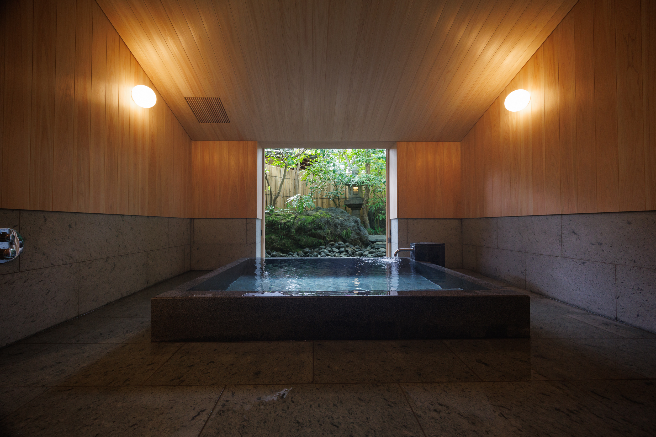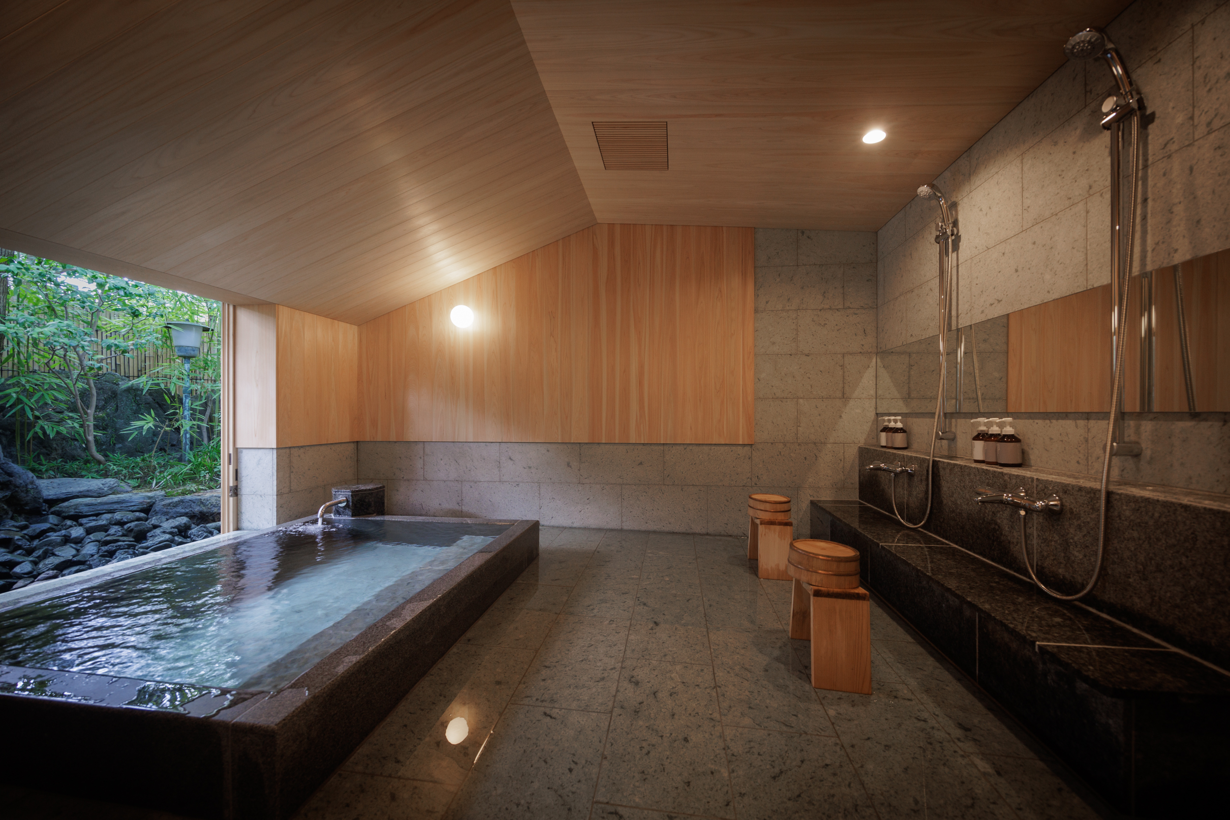 Bath Of course, this being a premium Japanese ryokan, the bathing is excellent at Ryokan Kurashiki. In addition to the spacious bathtub in each room, there is a private bath for guests to soak in, a big, beautiful, granite number with a view of the garden. A private bath with an Aji stone bathtub inherited from the previous generation. You can slowly wash away the fatigue of your trip.