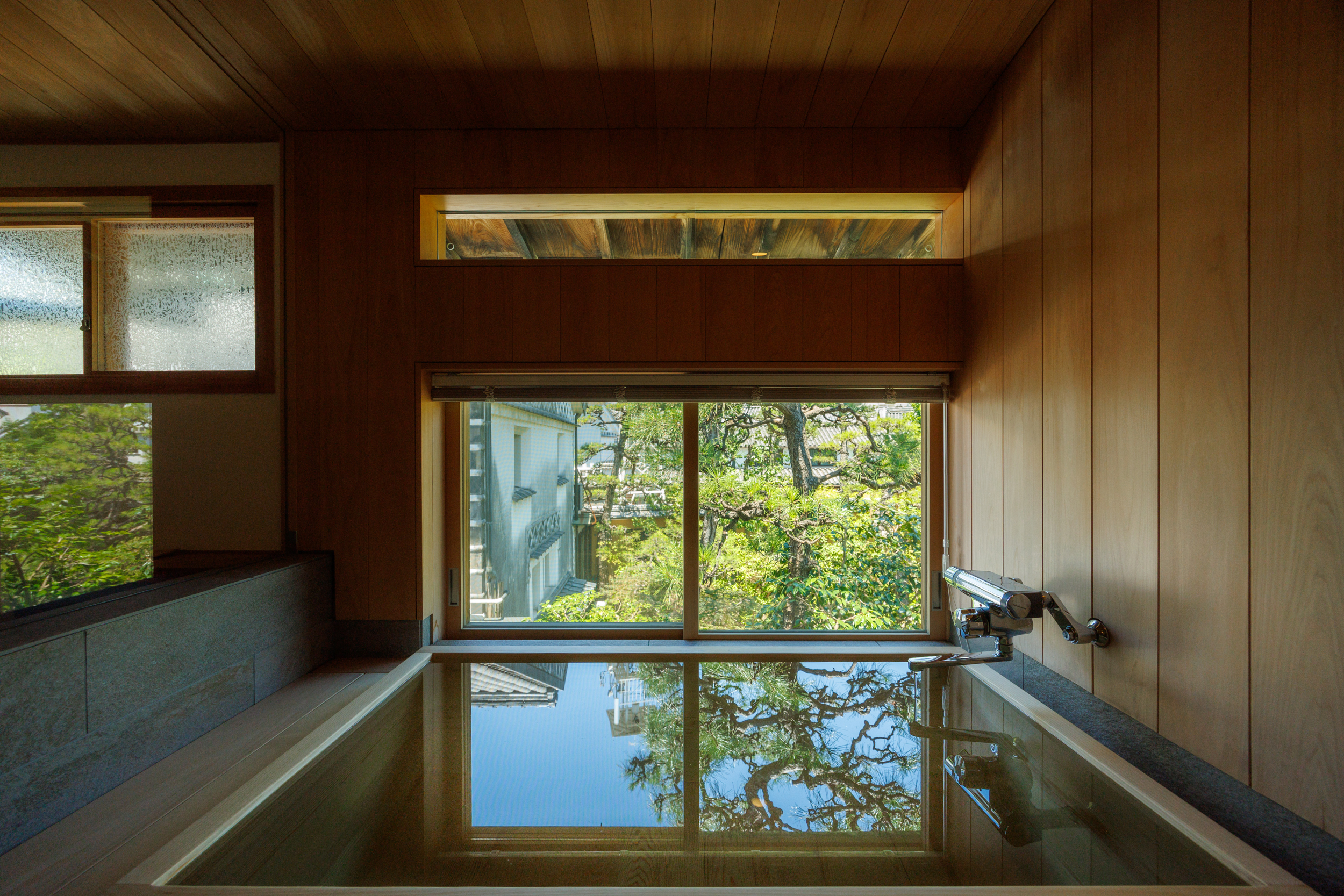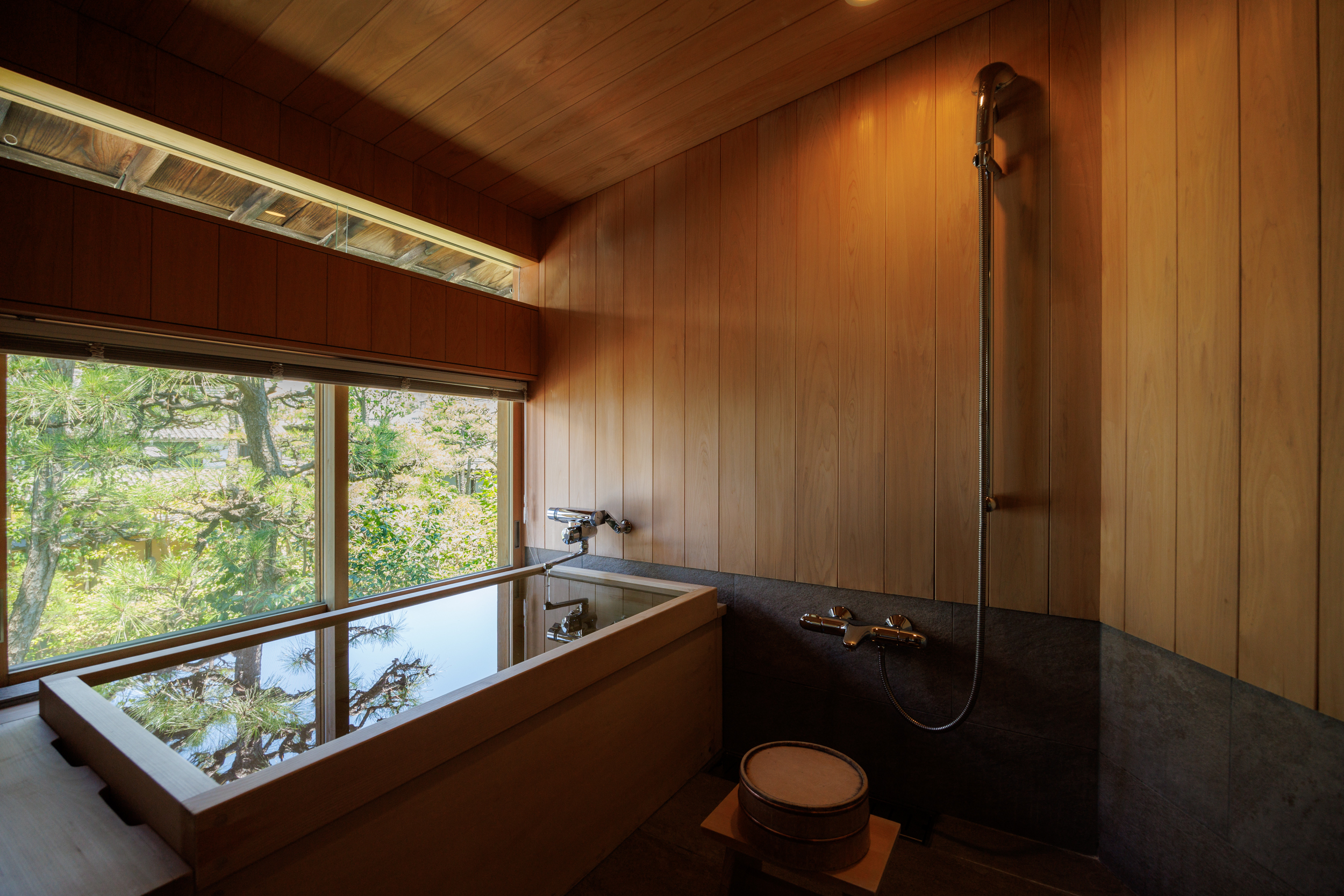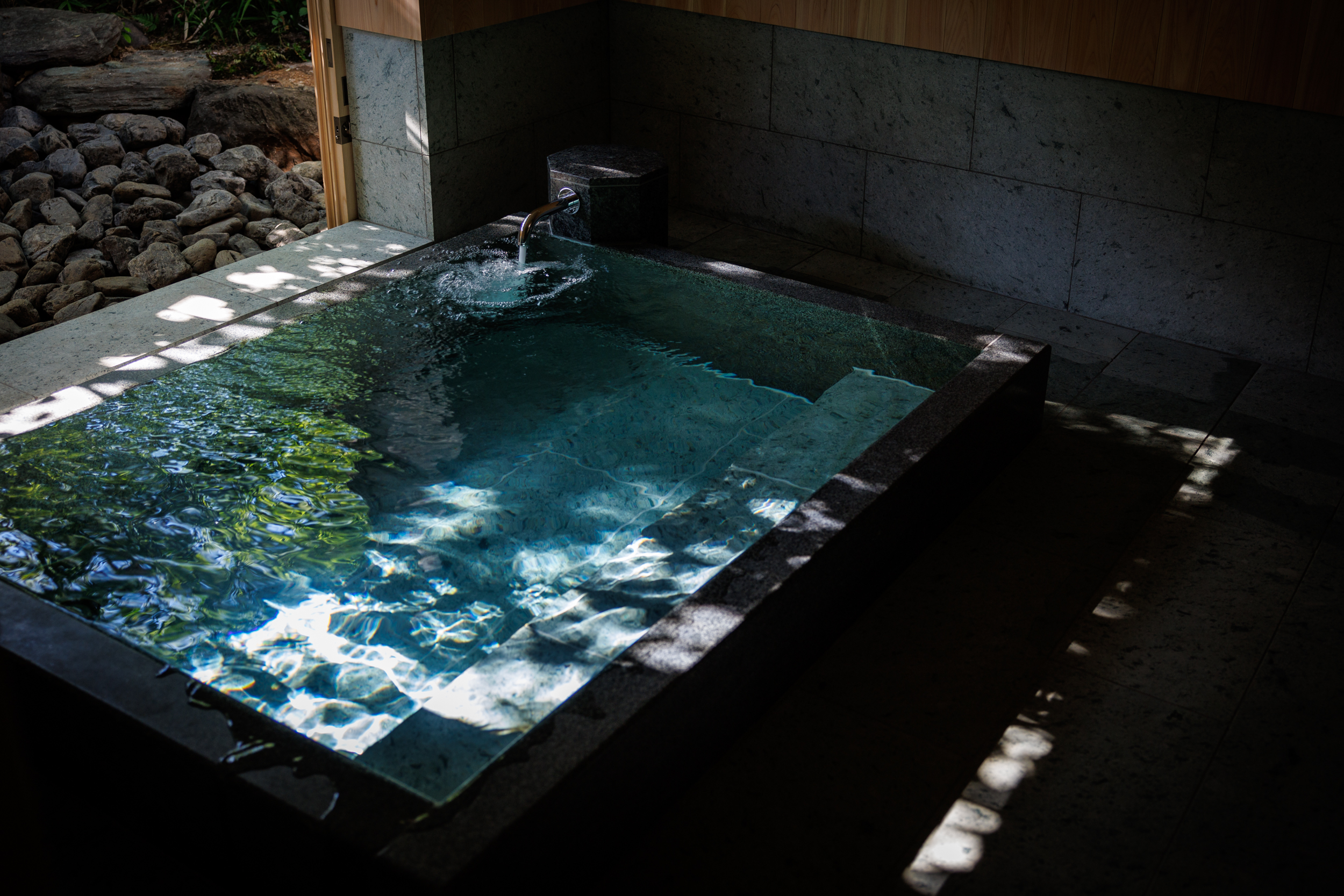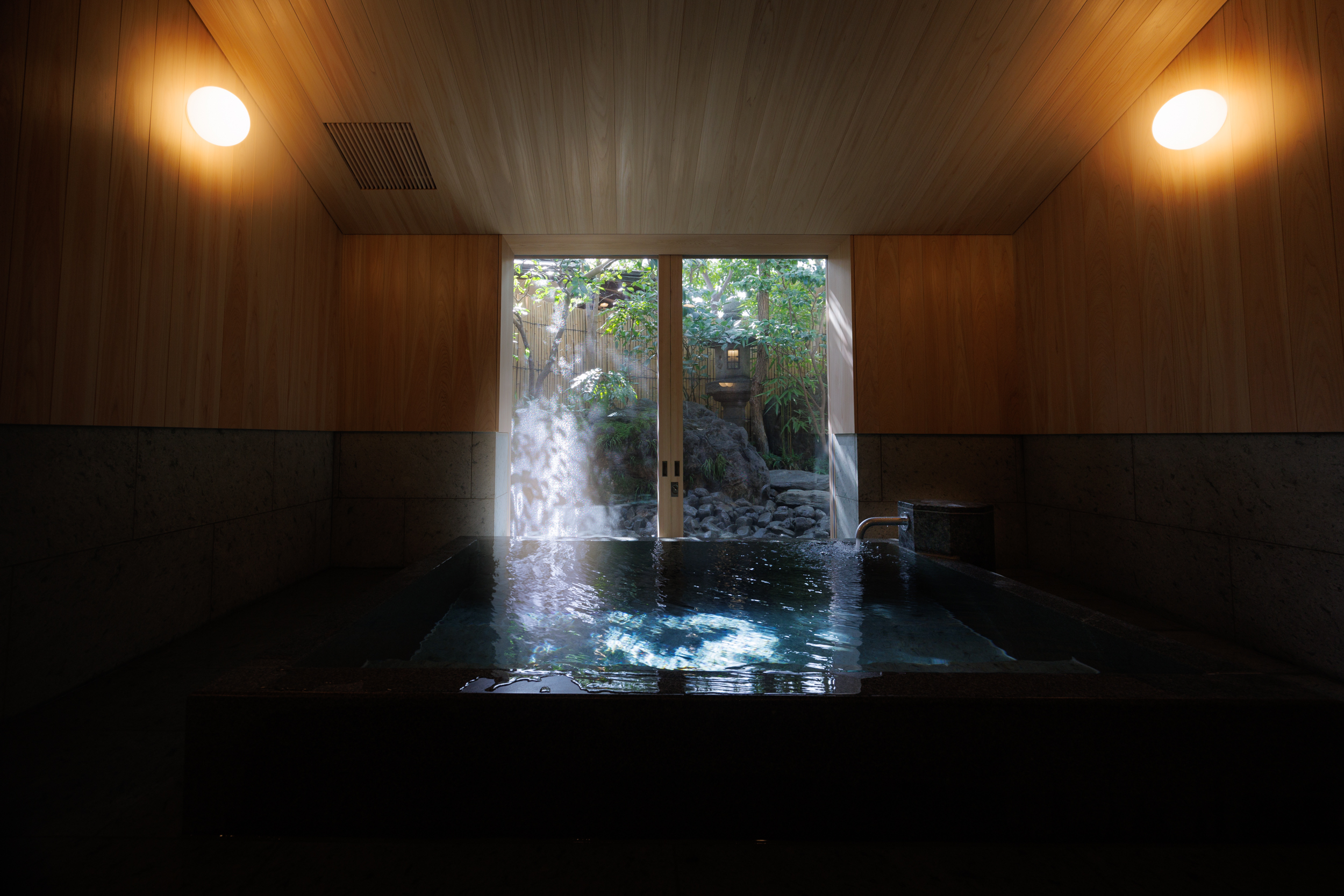 Bath Of course, this being a premium Japanese ryokan, the bathing is excellent at Ryokan Kurashiki. In addition to the spacious bathtub in each room, there is a private bath for guests to soak in, a big, beautiful, granite number with a view of the garden. A private bath with an Aji stone bathtub inherited from the previous generation. You can slowly wash away the fatigue of your trip.