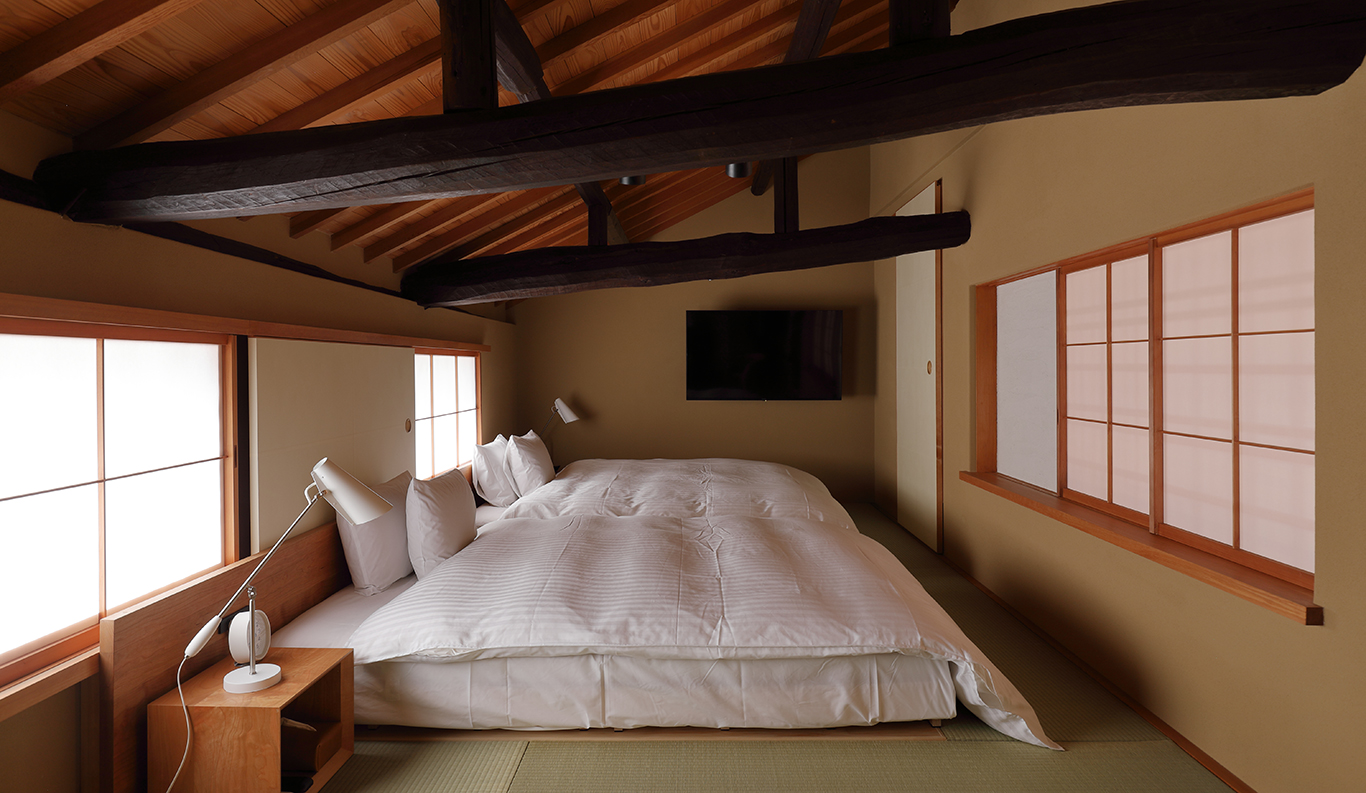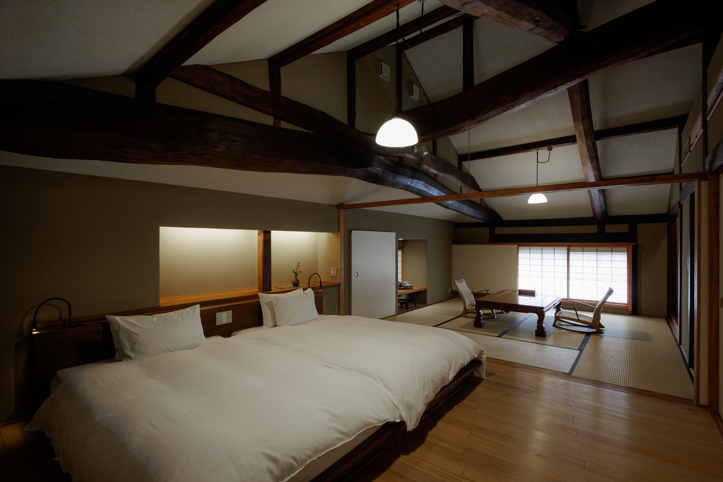 1-2 64.9 sqm Indoor Bath Bed This is the only maisonette-type room that was renovated from the oldest tool storehouse in our hotel. The Japanese-style room is equipped with a sunken kotatsu, making it a relaxing room where you can feel the grandeur of a historic building while also being able to see the greenery of the courtyard through the wooden planks. ¥ 49,500~ per person (based on double occupancy) *Room rates at the Ryokan vary depending on the season and booking status. Therefore, we provide an estimated amount as a reference. REQUEST THIS ROOM -