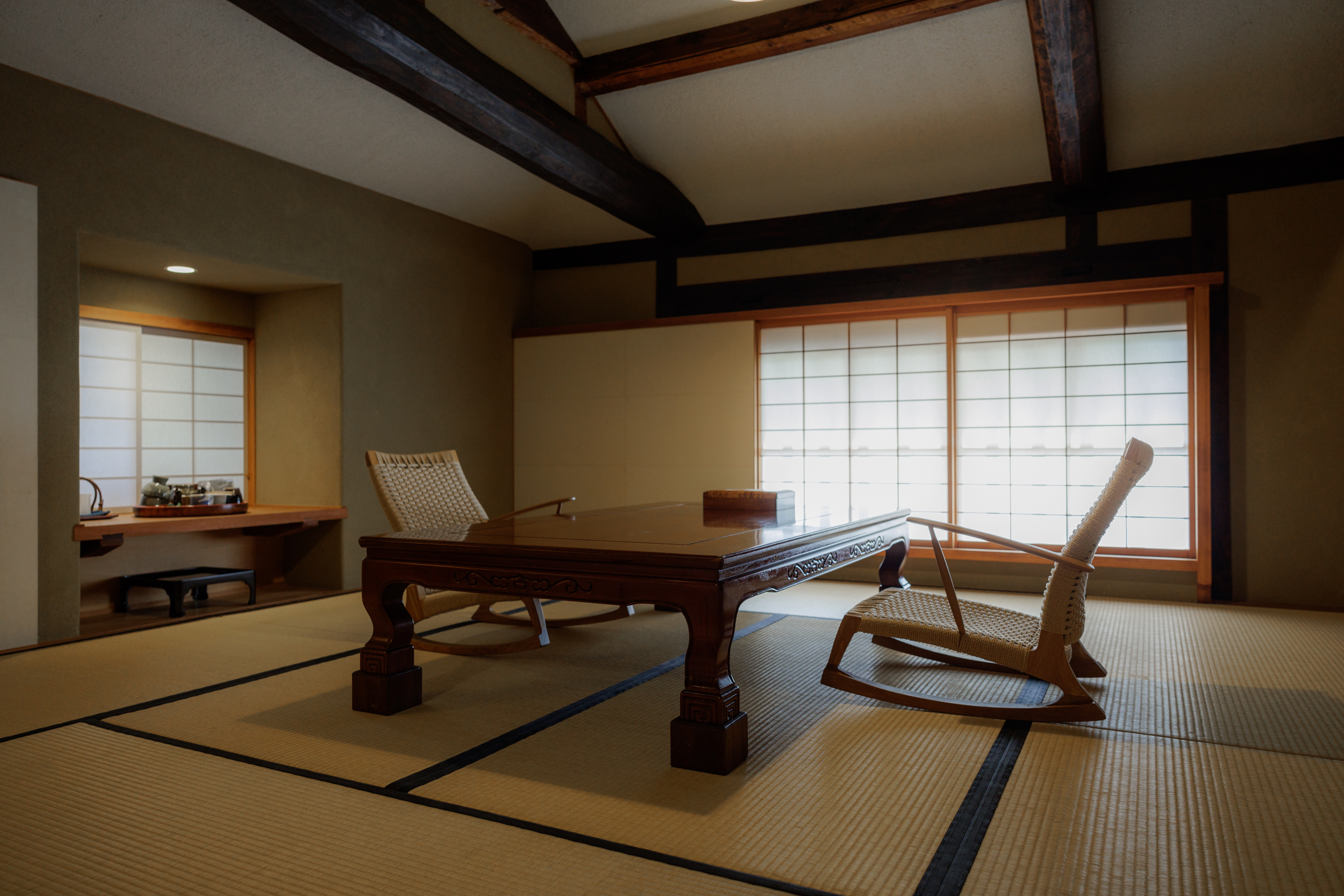 This room is a renovated rice storehouse built about 280 years ago, and you can enjoy an attic-like atmosphere with a view of the thick ridgepole and beams. From the sofa corner in the back of the Western-style bedroom, you can see Achi Shrine, which stands on the top of Mt. Tsurugata, through the hotel's roof tiles. ¥ 60,000~ per person (based on double occupancy) *Room rates at the Ryokan vary depending on the season and booking status. Therefore, we provide an estimated amount as a reference. REQUEST THIS ROOM -