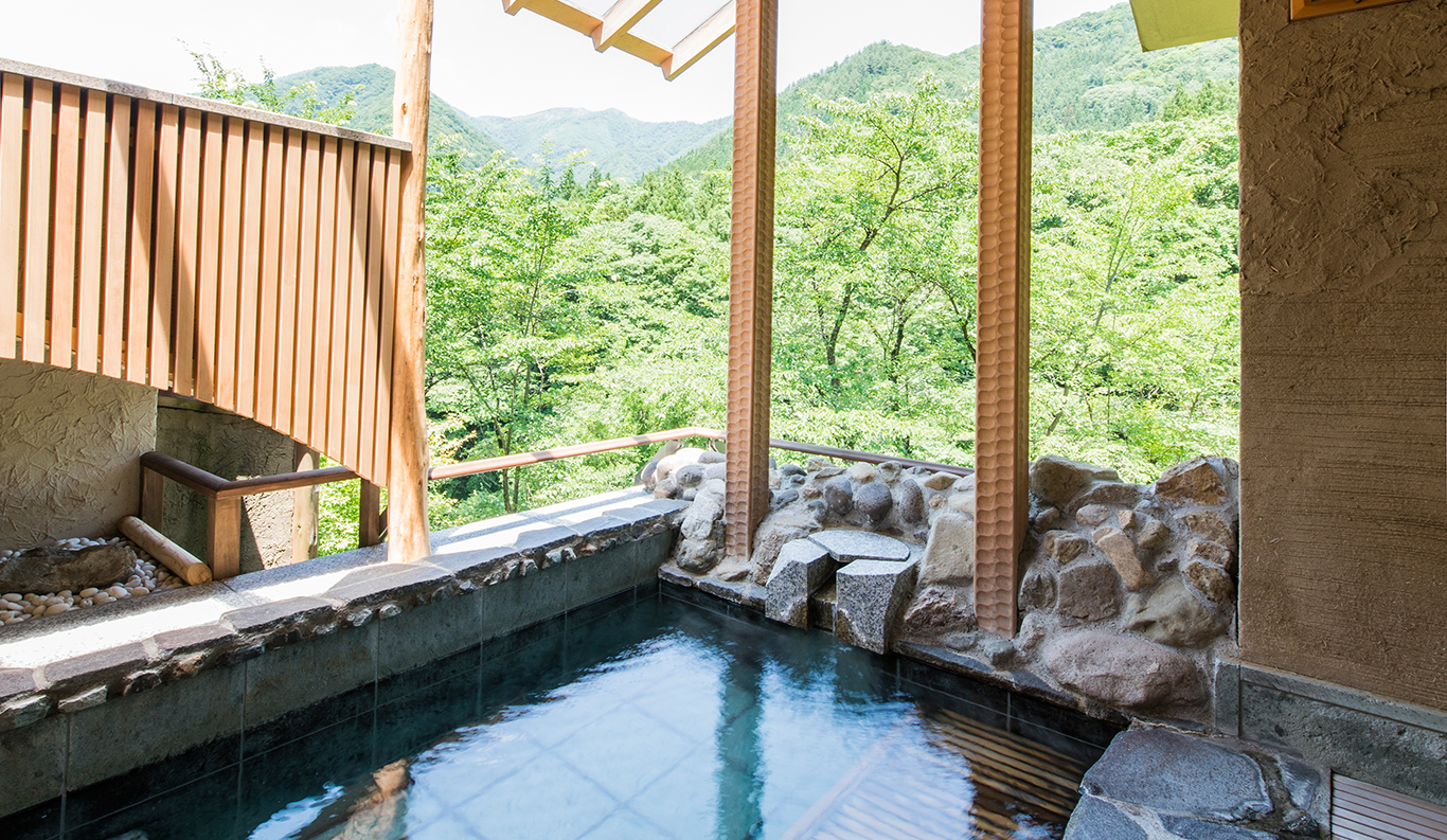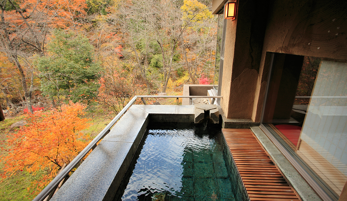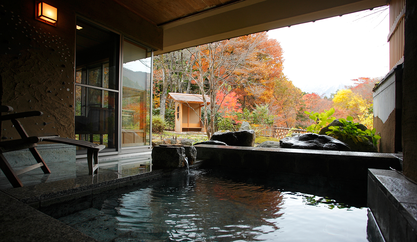 - sqm Private Open-air Bath Bed This twin room has both Western and Japanese elements, with a tatami room as well as twin beds in a separate room. The rotemburo is a deep stone number with a rustic log settee and a spectacular view of the mountains and the river gorge below. Ask *Room rates at the Ryokan vary depending on the season and booking status. Therefore, we provide an estimated amount as a reference.
