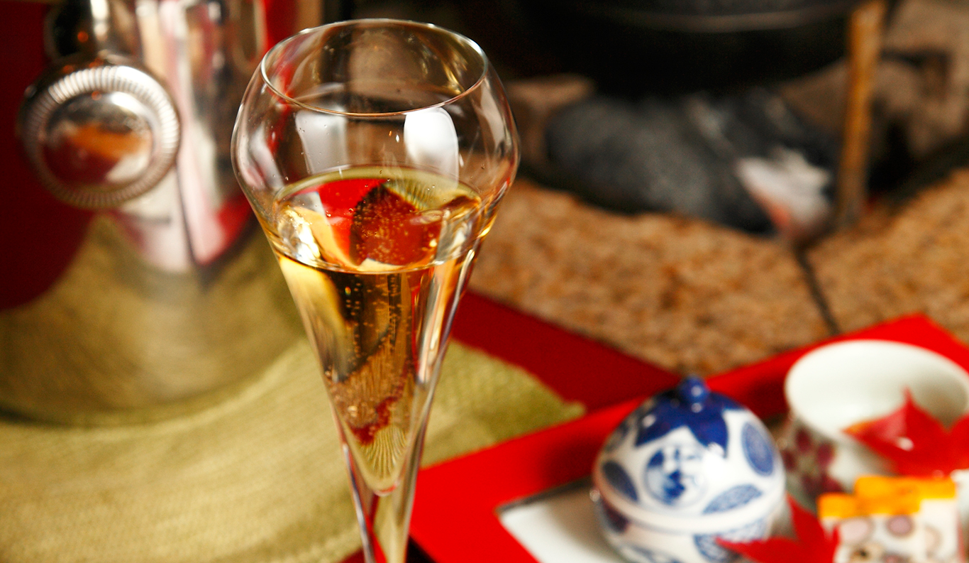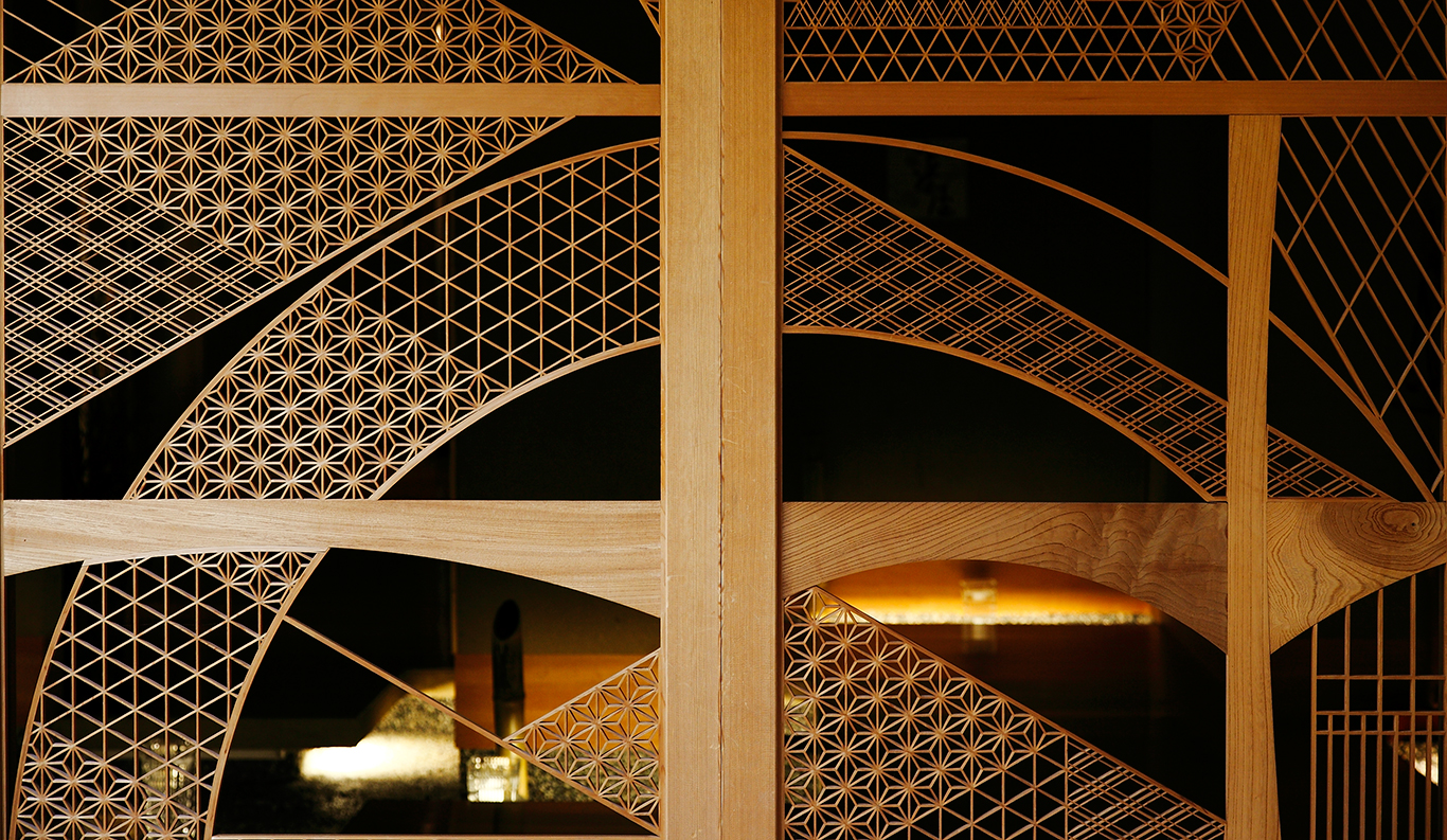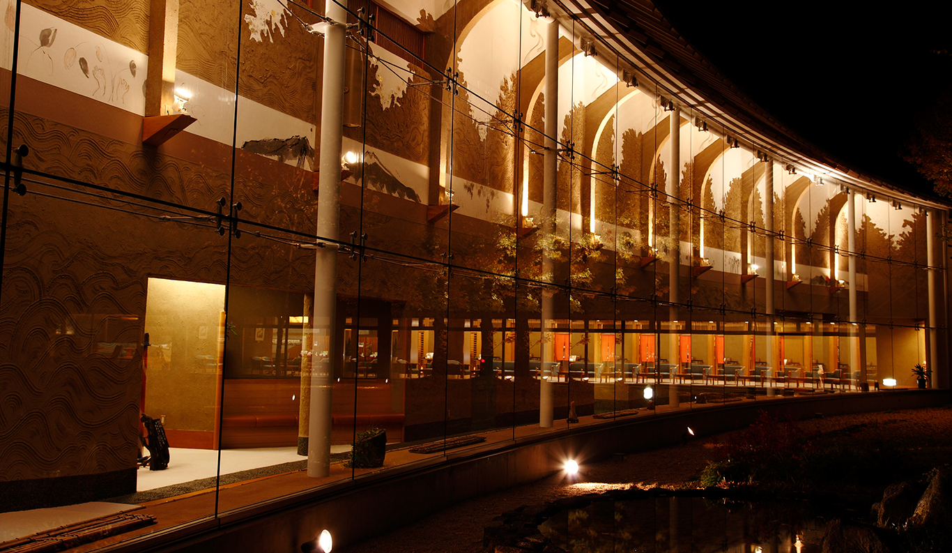 Dining Room Although there is no bar on the premises, the restaurant boasts an extensive selection of beverages, including wine, beer, sake, shochu and others, and complementary beverages are available all night in the main lounge.