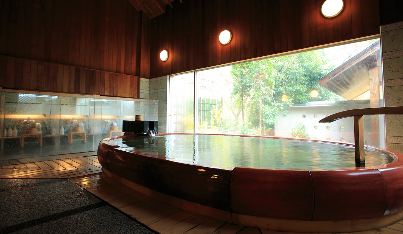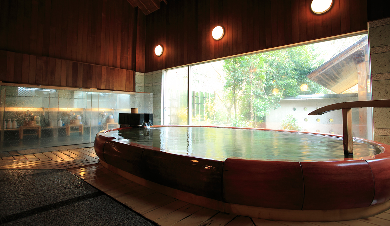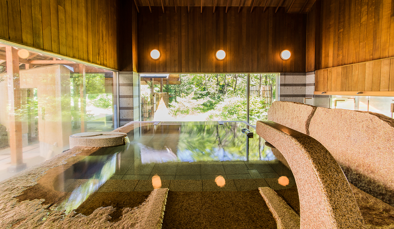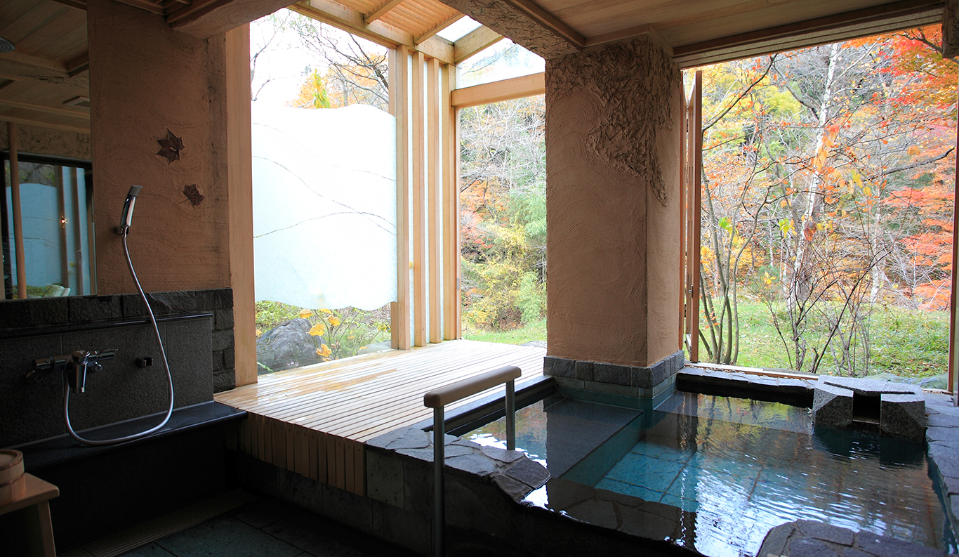 Bath The public bath has two sections, separated by gender, which switch every night at 10:00. The two rotemburo outdoor baths, Ichinokura and Sennokura, which are fed by the famous Tanigawa Onsen hot spring source, are big granite pools with bottoms lined with stones from the river below, and overlooking the beautiful gorge with its pretty mixed forest. A path leads to a secluded sitting area by the river. The indoor bathing facilities are equally sumptuous, with several big granite ofuro baths, a huge hinoki wood bath, a mist sauna and a dry sauna.