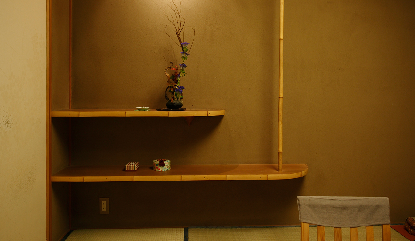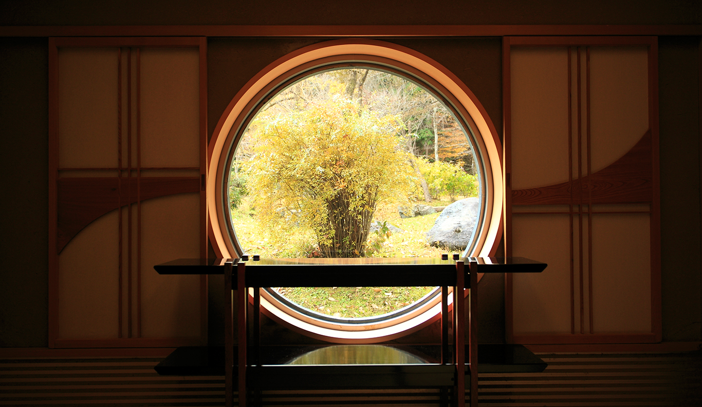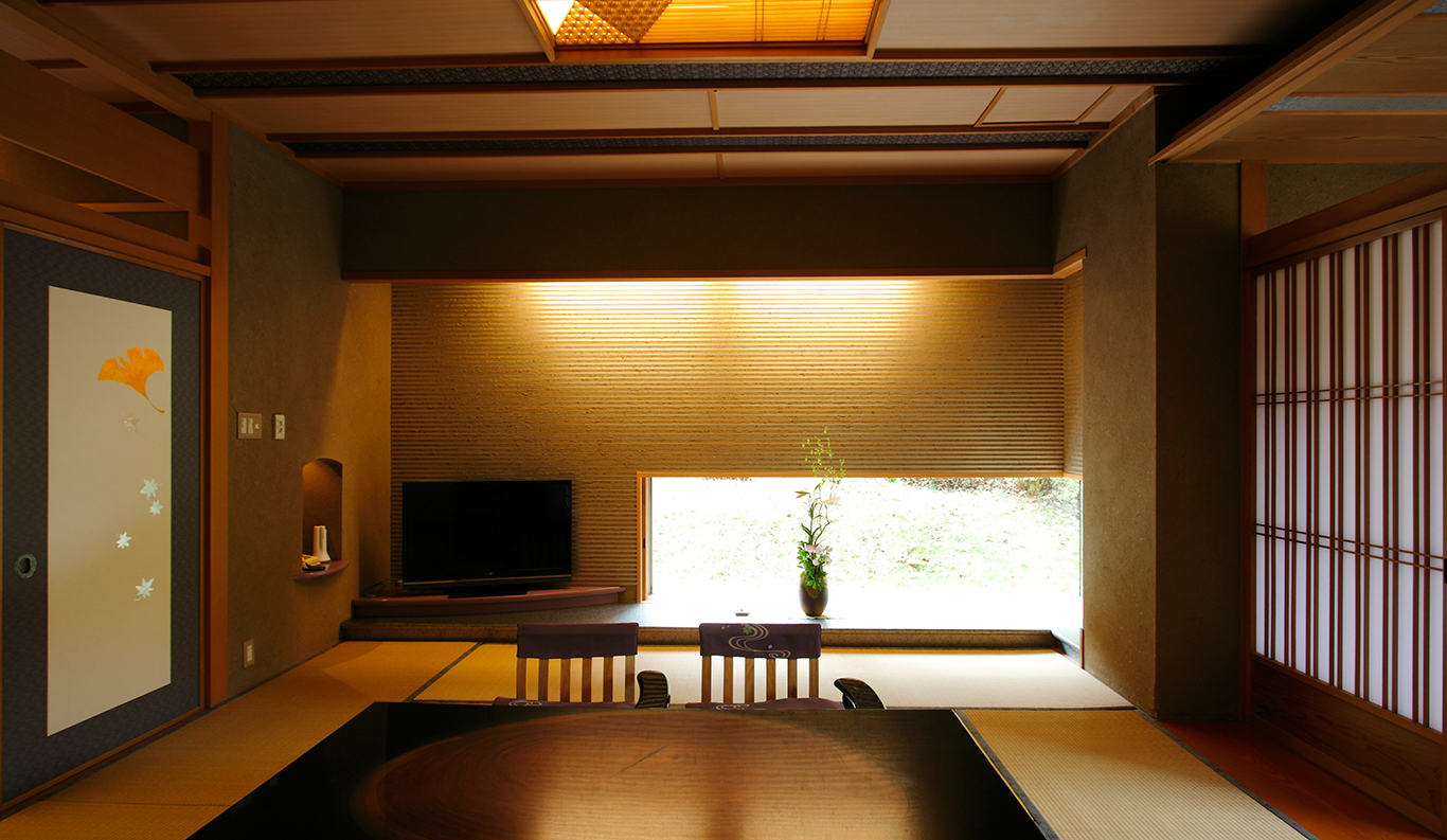A relatively new establishment at 13 years old, Senjuan offers a rich mix of old and new, in a tasteful and elegant package. Local touches give a strong sense of place, and the history and culture of the area. The walls are finished with tsuchikabe mud-and-straw stucco, and kumiko traditional joinery fashioned from sugi (cryptomeria) and kyoku (zelkova) wood can be seen throughout the ryokan, as can beautiful washi paper and mica prints, used for soft interior lighting, and sumi charcoal, a local industry since time immemorial.