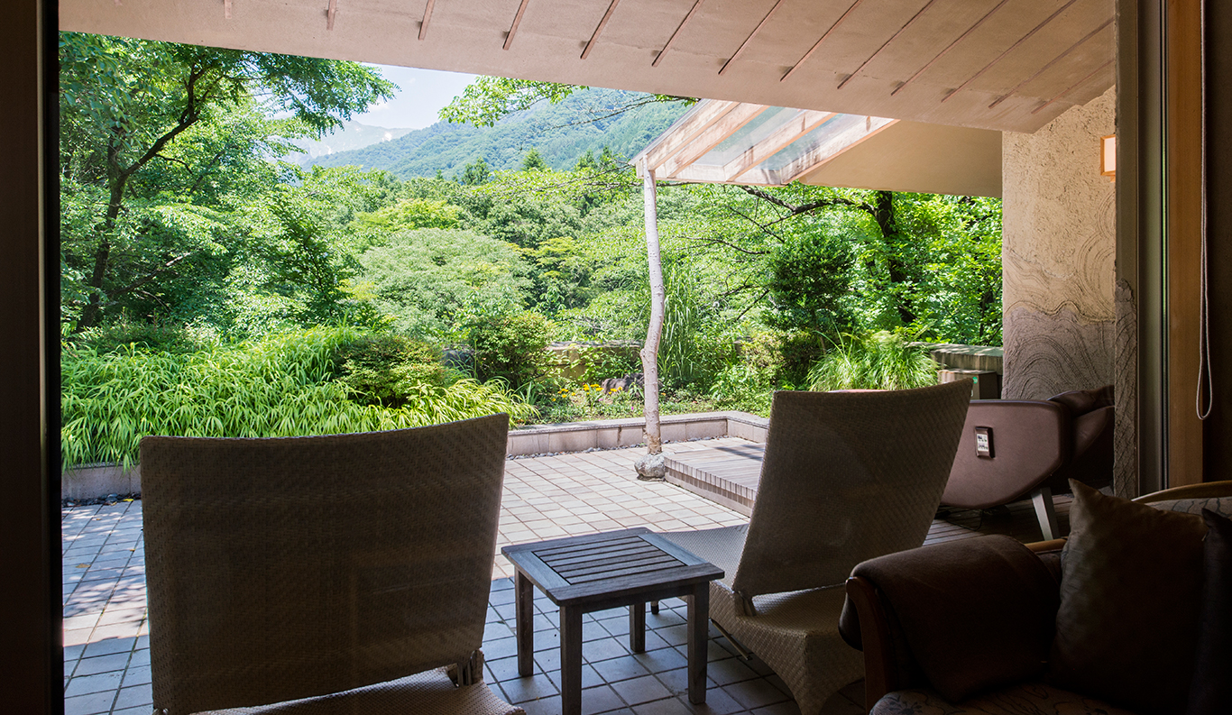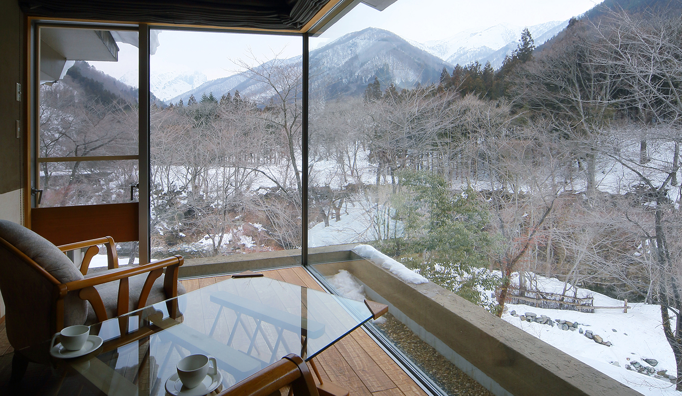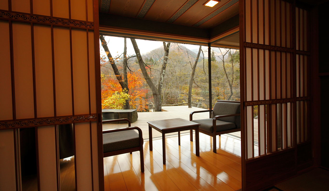 - sqm Private Open-air Bath Futon A Japanese-style room including a spacious tatami room, as well as a Japanese-style sitting room, veranda and wooden deck with views of the river and mountains. The granite, wooden-floored rotemburo boasts spectacular views of Mt. Tanegawa. Ask *Room rates at the Ryokan vary depending on the season and booking status. Therefore, we provide an estimated amount as a reference.