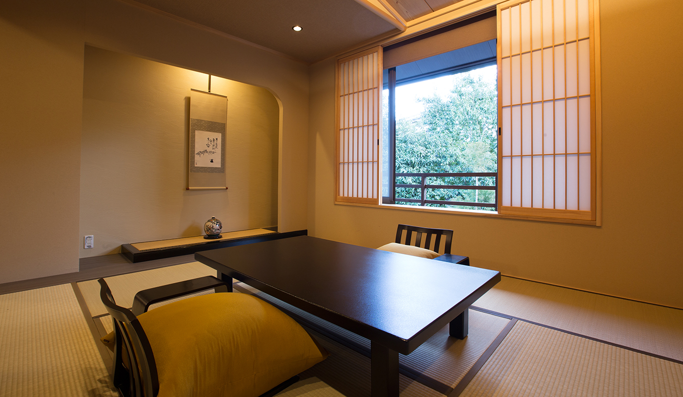 1-4 60 sqm Indoor Bath Bed The room is the newest in annex area, called "Kanba"It .has a beautiful cypress bath and a tatami room suitable for small group relaxing in comfort. Warm your heat in the room where you can view lovely Japanese garden in Kanba. ¥ 55,000~ per person (based on double occupancy) *Room rates at the Ryokan vary depending on the season and booking status. Therefore, we provide an estimated amount as a reference. REQUEST THIS ROOM -