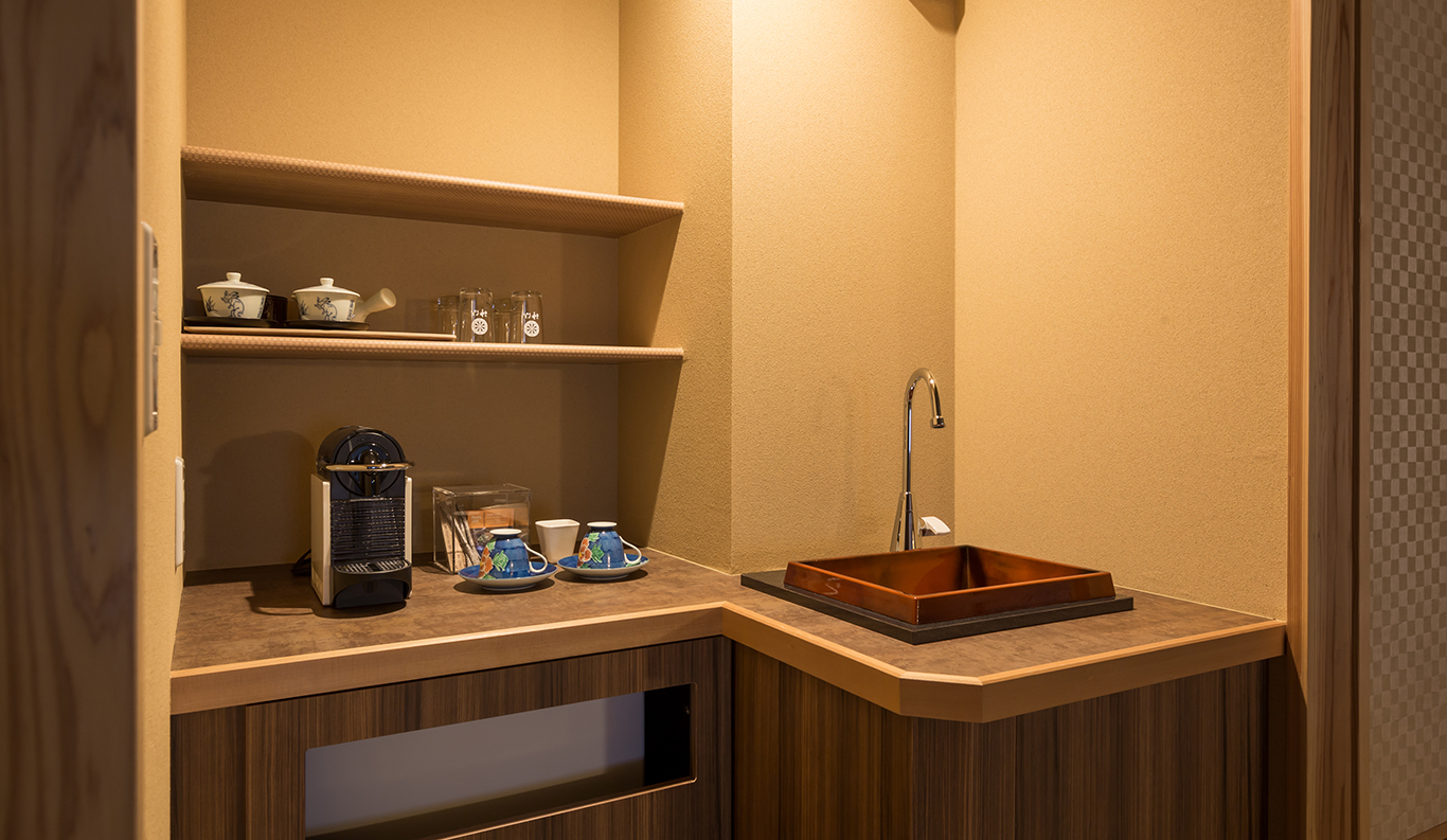 Kumano, is a double that is convertible to a single. Its interior emphasizes earthy brown and fresh green to evoke the surrounding mountainous nature, and in the garden is an ume Japanese plum tree, whose flowers, blossoming in March, herald the coming of spring. The bathtub, an unusual quarter-circle shape, is made of amakusa-ishi stone from the Kyoto district of Amakusa. ¥ 55,000~ per person (based on double occupancy) *Room rates at the Ryokan vary depending on the season and booking status. Therefore, we provide an estimated amount as a reference. REQUEST THIS ROOM -