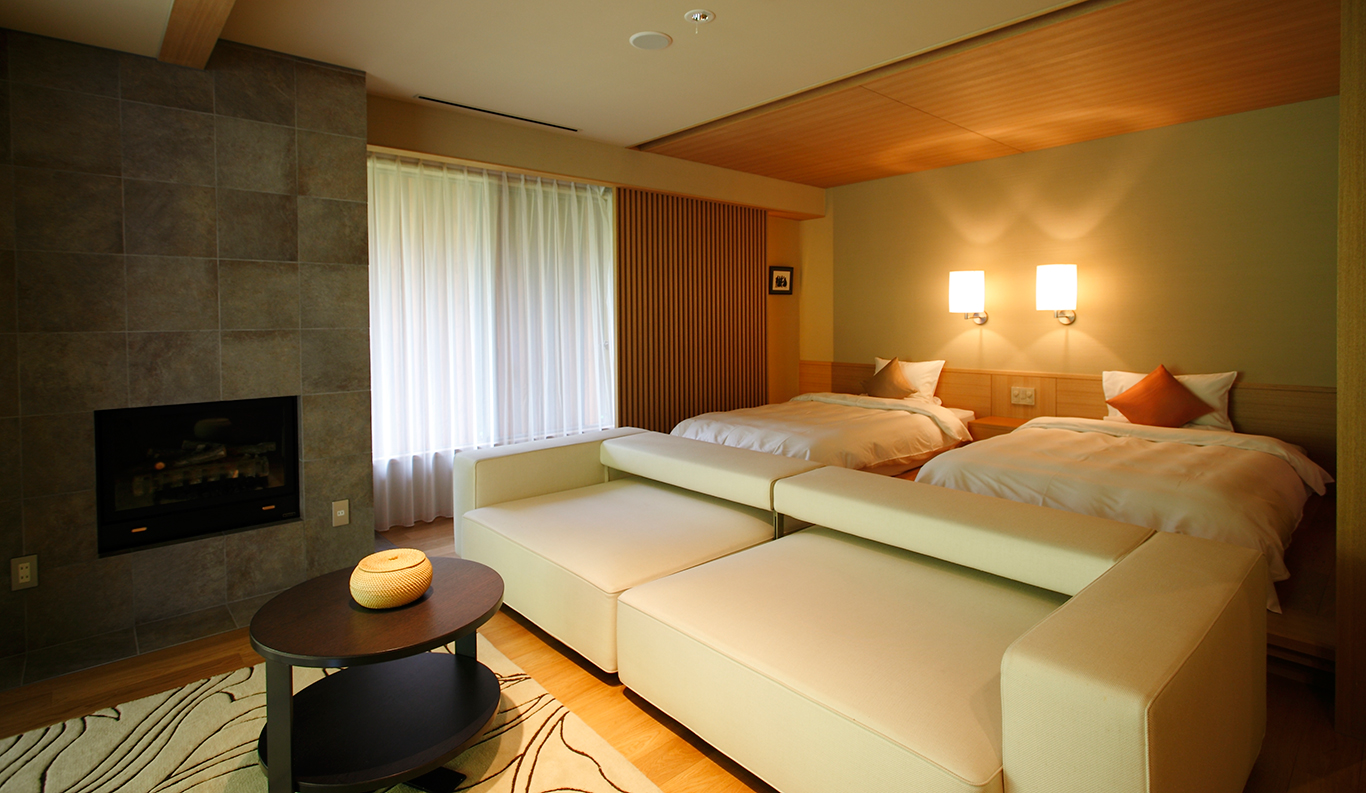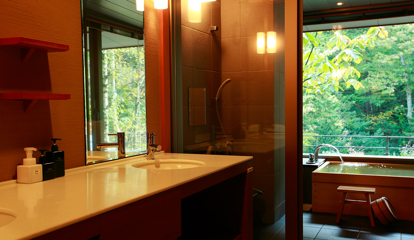 1-4 81 sqm Indoor Bath Bed This combined Japanese/Western room, meant for two to four persons. The sense of luxurious comfort is enhanced by a cheerful fireplace, big couches and corner windows overlooking the woods and the garden, as well as the large hinoki wooden bathtub inside next to a huge window that looks out onto the woods. Twin beds provide a restful environment for sleep. ¥ 45,400~ per person (based on double occupancy) *Room rates at the Ryokan vary depending on the season and booking status. Therefore, we provide an estimated amount as a reference. REQUEST THIS ROOM -