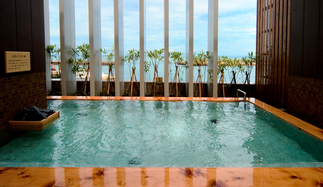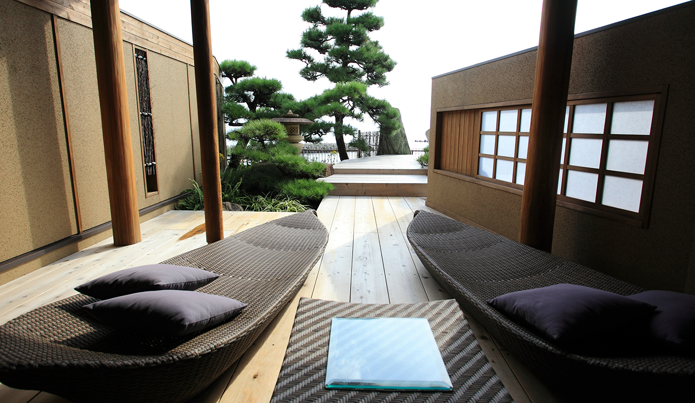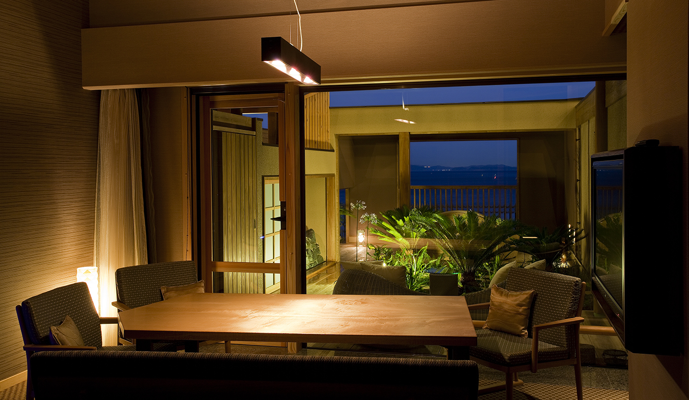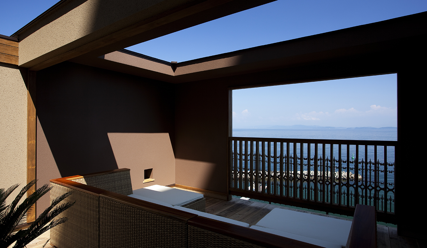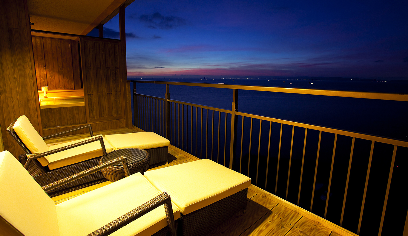 With its spectacular panoramic view of the Komoe Kaigan yacht basin and the Seto Inland Sea beyond, Villa Rakuen is a high-end, premium ryokan-style hotel that bespeaks luxury. Its spacious, airy rooms and opulent bathing facilities attract onsen hot spring lovers from all over Japan, especially from the Kansai district around Osaka, Kyoto and Kobe.