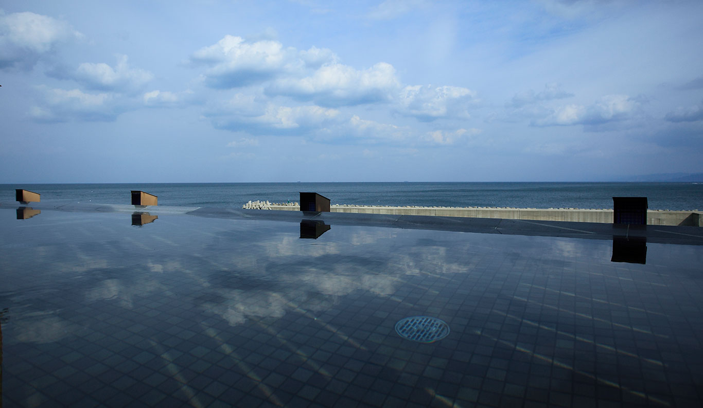And as you gaze at the ships passing to and from the Port of Kobe, feel the cool ocean breezes as they caress your cheek, and listen to the sounds of surf and the calls of birds circling over the harbor - a scene created for contemplation and relaxation.